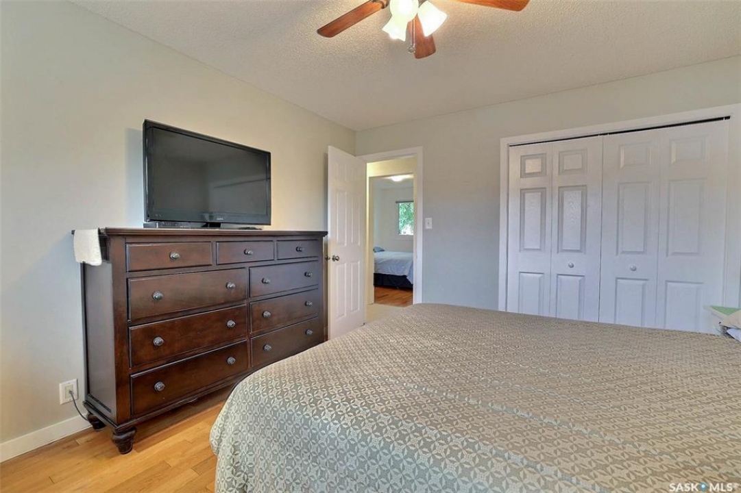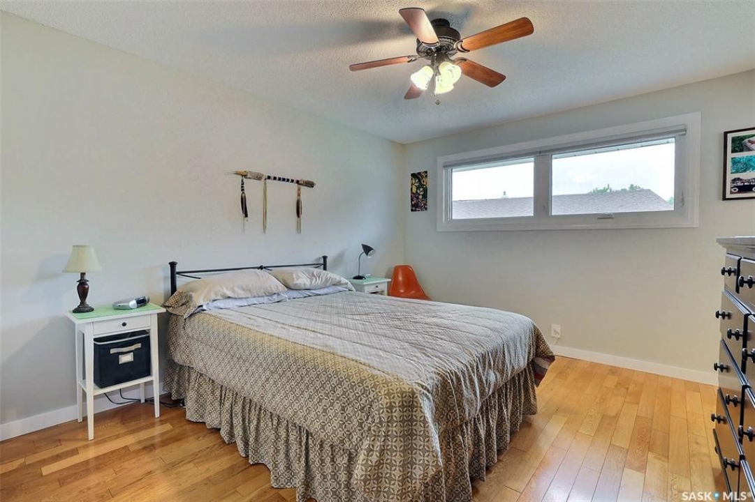 Beautifully kept and maintained Fiorante built bungalow with great street appeal on very desirable quiet crescent in Normanview West. Open layout greets you with spacious living room featuring gleaming hardwood floors and east facing picture window allowing in an abundance of natural morning light. Bright renovated kitchen (2015) with plenty of timeless white cabinetry, loads of counter space, beautiful tiled backsplash and generous sized dining room will accommodate large family gatherings. Loads of back windows overlooking rear yard. Large primary suite with hardwood floors and handy 2pc ensuite, 2 additional good sized bedrooms also featuring hardwood, and renovated main bath complete main floor. Oversized back entry doubles as small mudroom. Developed basement offers massive rec room, 4th bedroom and 3pc bath with easy maintenance flooring. Loads of storage in the laundry/utility room. Huge private lot offers garden space, large patio, and maintenance free fencing. Gates offer access to RV parking in the rear and angled 24x24 detached garage has very easy access off alley and allows for additional paved parking pad. Ideally located close to 2 schools, shopping centre, theatre, restaurants, parks and easy ring road access. Many upgrades including blinds '23, 30yr (architectural) shingles '14, AC '23, Fence '16, triple glazed windows '13, front siding with added insulation '13. Call today!