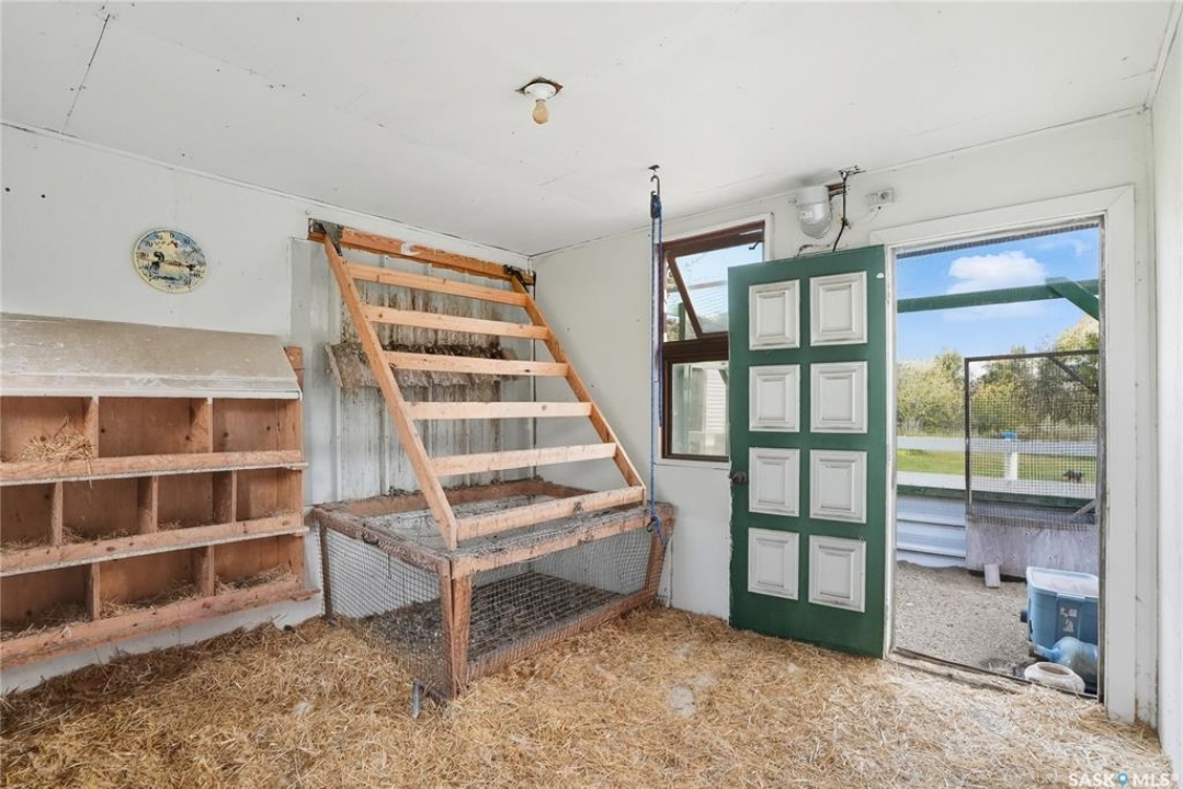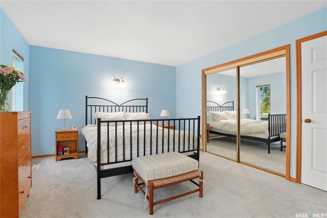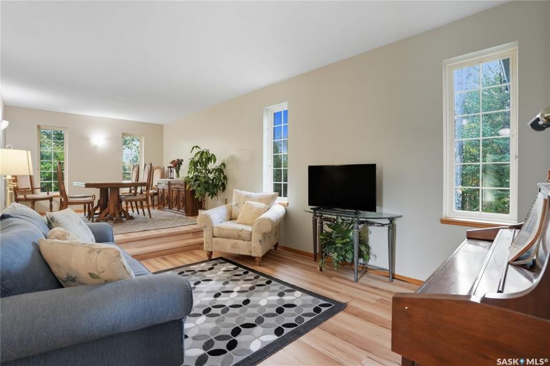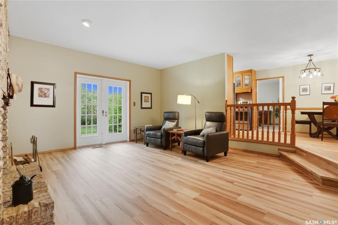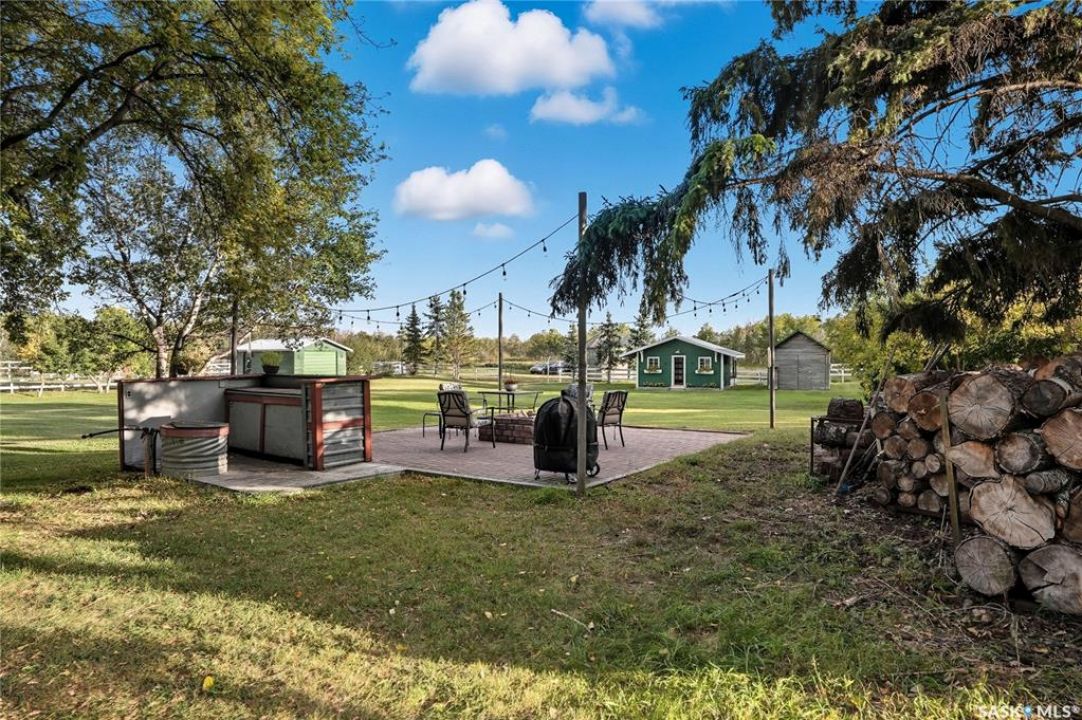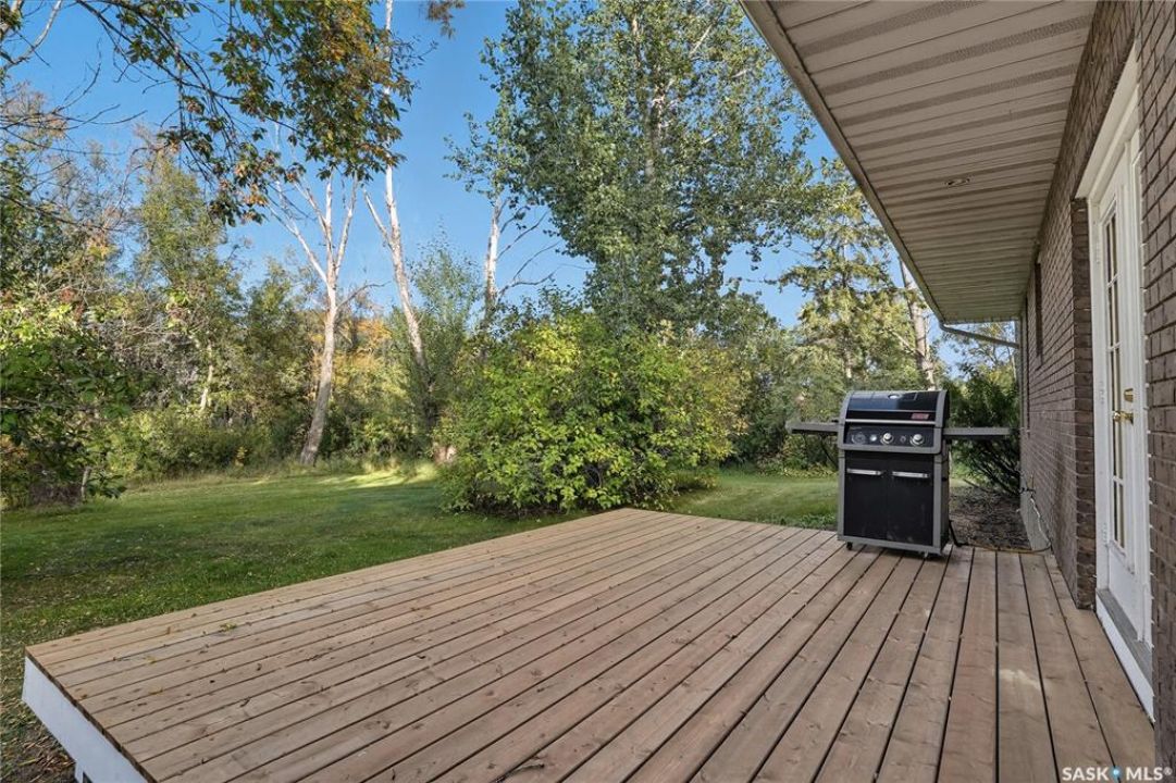 You will feel welcome from the moment you turn into the tree lined driveway, this is truly the acreage dreams are made of! Outside living begins here in this well treed, fenced 80 acres with 2 pens, just 15 minutes north of Saskatoon. The beautiful landscaped yard includes an excellent firepit/ bar area, new deck in back, plus larger deck on front, lush green grass, garden areas, chicken coop, 10x12 horse shelter, 24x 24 hayshed, and workshop. Property has 2 wells, an underground cistern, septic pump out and a newer septic tank. This well built bungalow offers brick exterior, cedar shakes, solid dry preserved wood foundation, and double attached heated garage with direct entry. Inside the main floor offers 4 bedrooms, 3 bathrooms, updated flooring, wood burning fireplace in the family room, main floor laundry & excellent storage. The kitchen is timeless oak with glass inserts on the upper cabinets, stainless steel appliances, plus around the corner is the patio doors to the new deck with natural gas bbq hook up. Primary bedroom does have a 4 piece ensuite and spacious counter. The basement offers 9 ft ceilings and is open for your desired development. Quiet location with close proximity to Saskatoon, school bus services to Dalmeny K-12. Contact your agent today, presentation of offers will be Sept 23, 2025 at 5 pm.