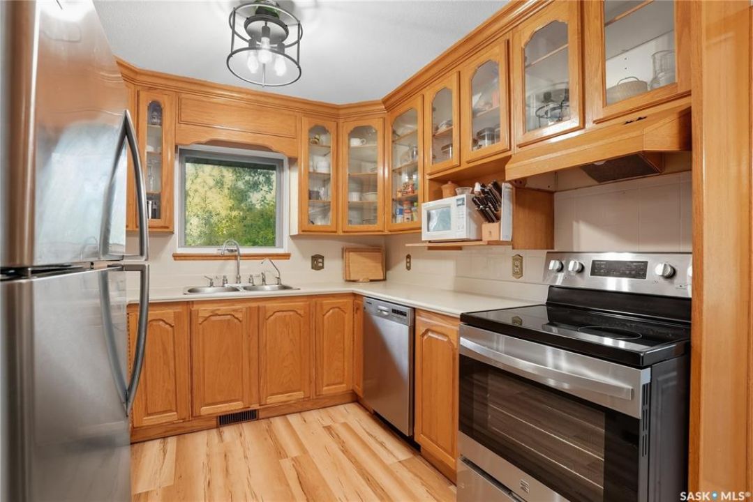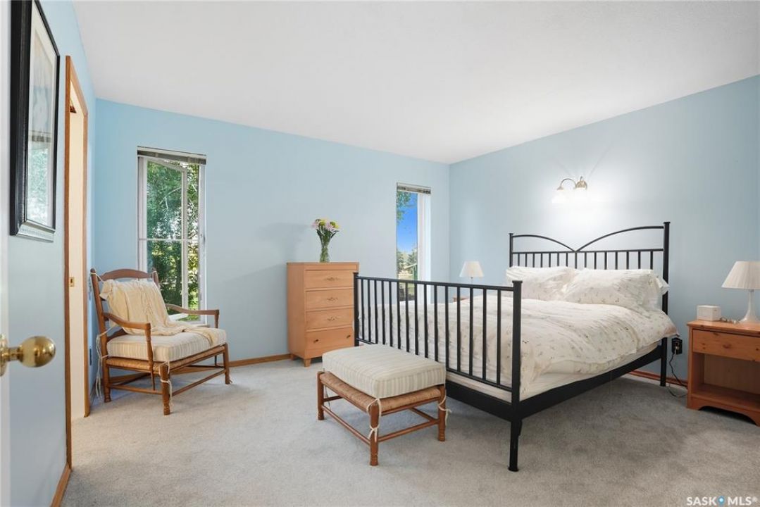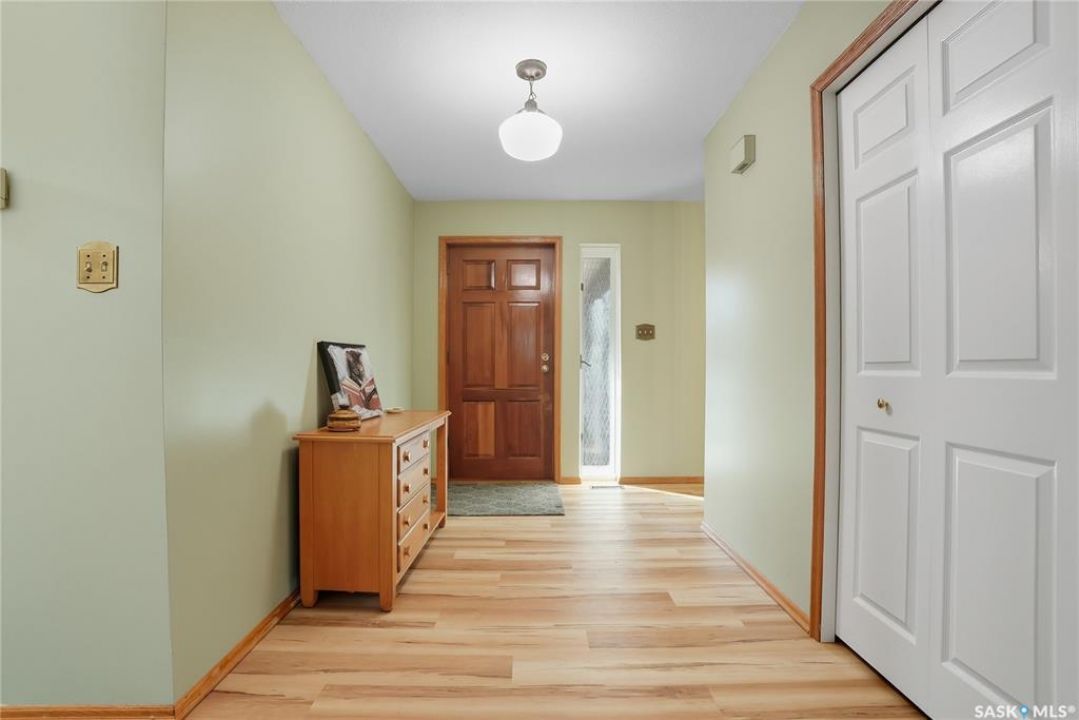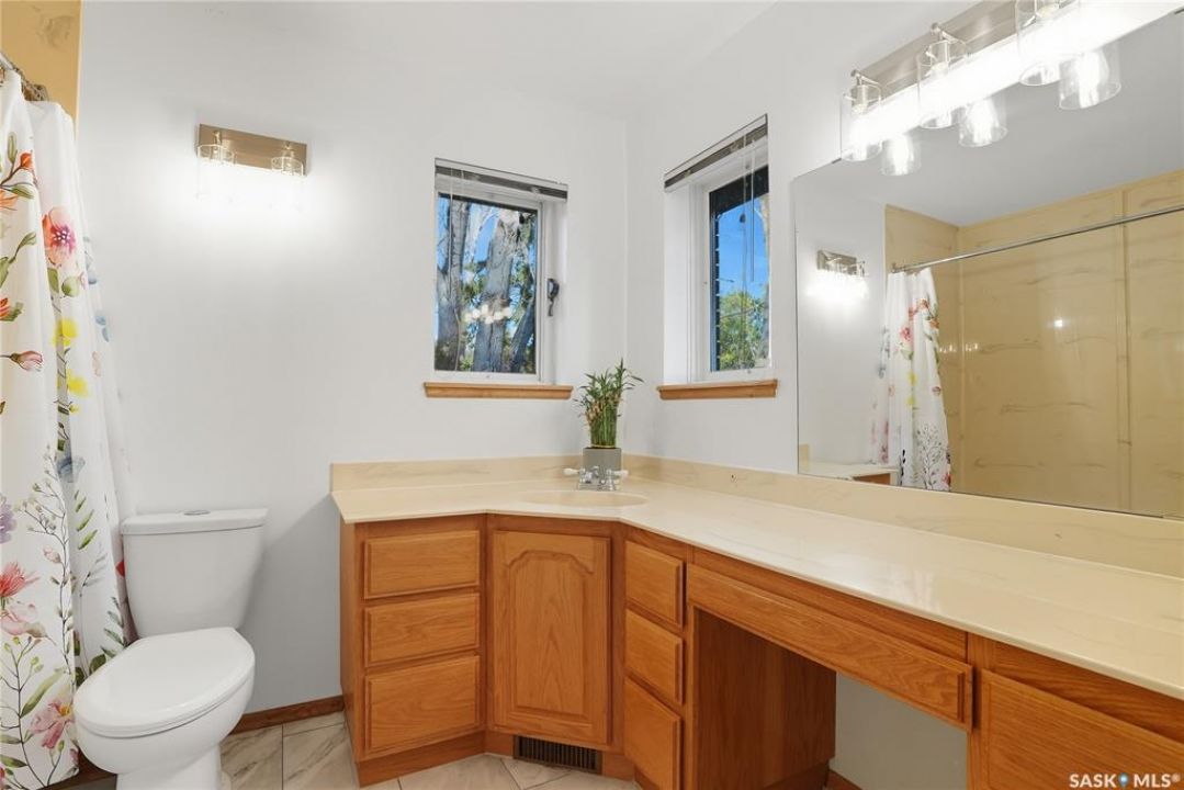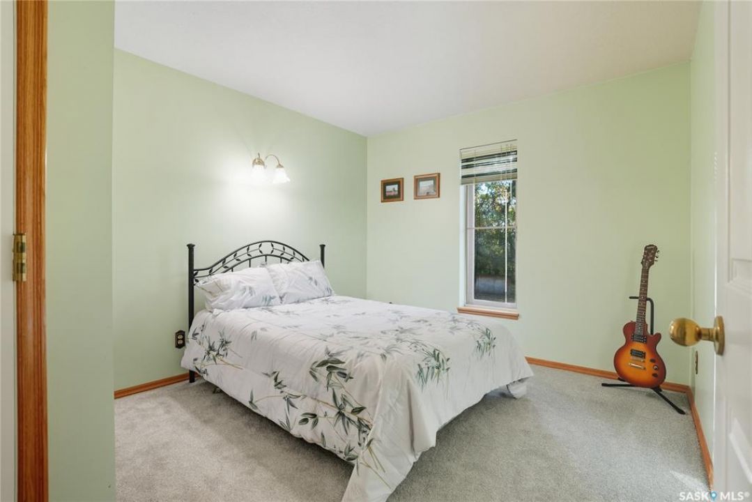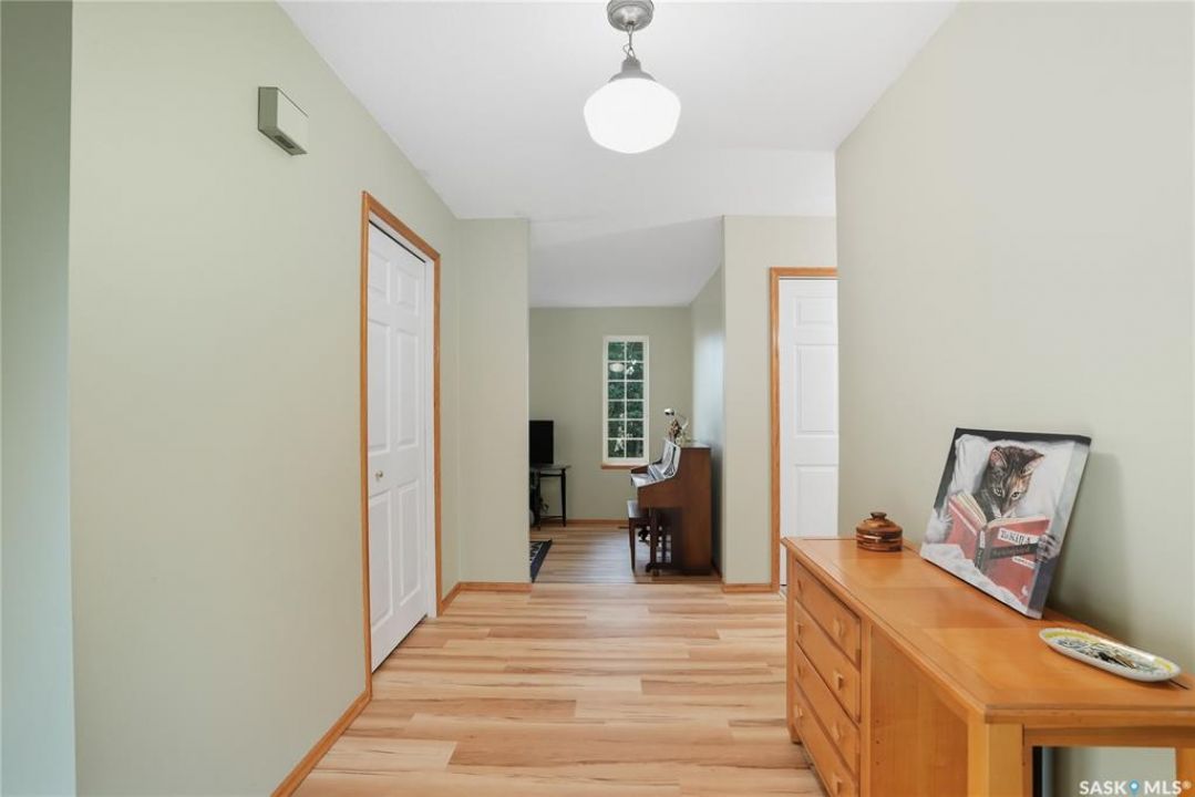 You will feel welcome from the moment you turn into the tree lined driveway, this is truly the acreage dreams are made of! Outside living begins here in this well treed, fenced 80 acres with 2 pens, just 15 minutes north of Saskatoon. The beautiful landscaped yard includes an excellent firepit/ bar area, new deck in back, plus larger deck on front, lush green grass, garden areas, chicken coop, 10x12 horse shelter, 24x 24 hayshed, and workshop. Property has 2 wells, an underground cistern, septic pump out and a newer septic tank. This well built bungalow offers brick exterior, cedar shakes, solid dry preserved wood foundation, and double attached heated garage with direct entry. Inside the main floor offers 4 bedrooms, 3 bathrooms, updated flooring, wood burning fireplace in the family room, main floor laundry & excellent storage. The kitchen is timeless oak with glass inserts on the upper cabinets, stainless steel appliances, plus around the corner is the patio doors to the new deck with natural gas bbq hook up. Primary bedroom does have a 4 piece ensuite and spacious counter. The basement offers 9 ft ceilings and is open for your desired development. Quiet location with close proximity to Saskatoon, school bus services to Dalmeny K-12. Contact your agent today, presentation of offers will be Sept 23, 2025 at 5 pm.