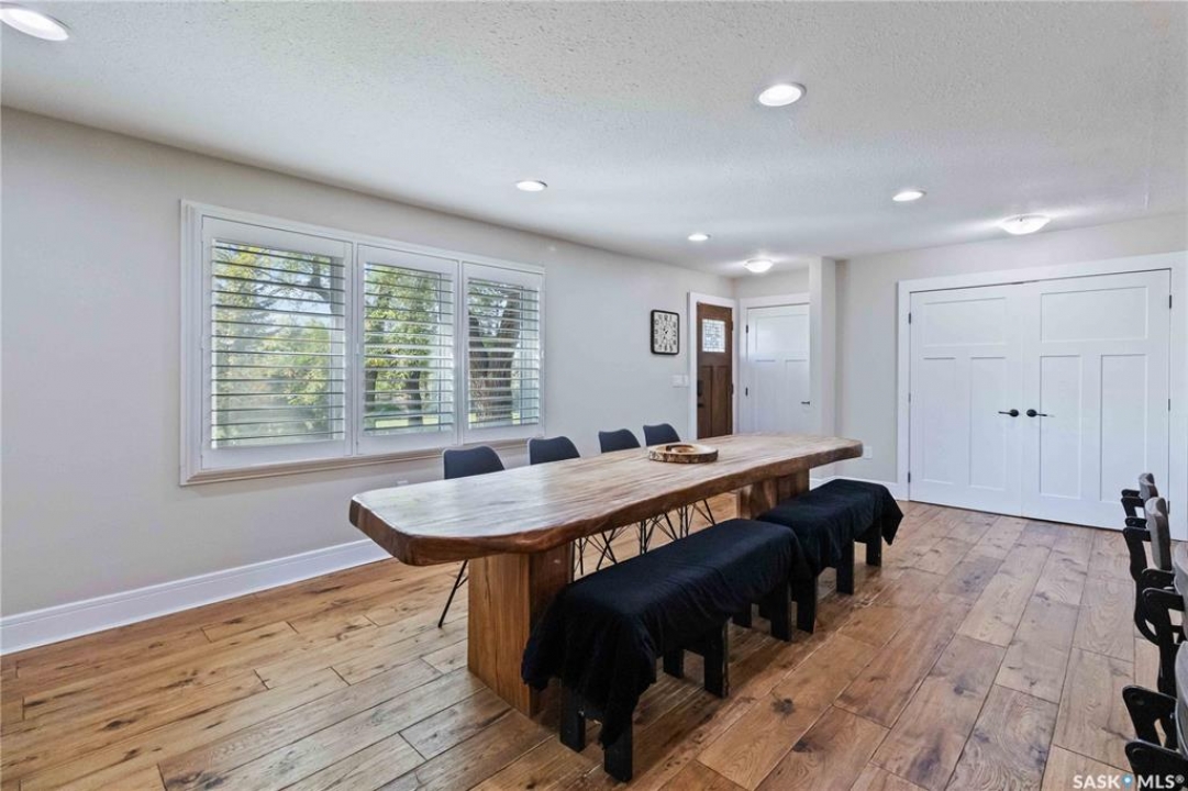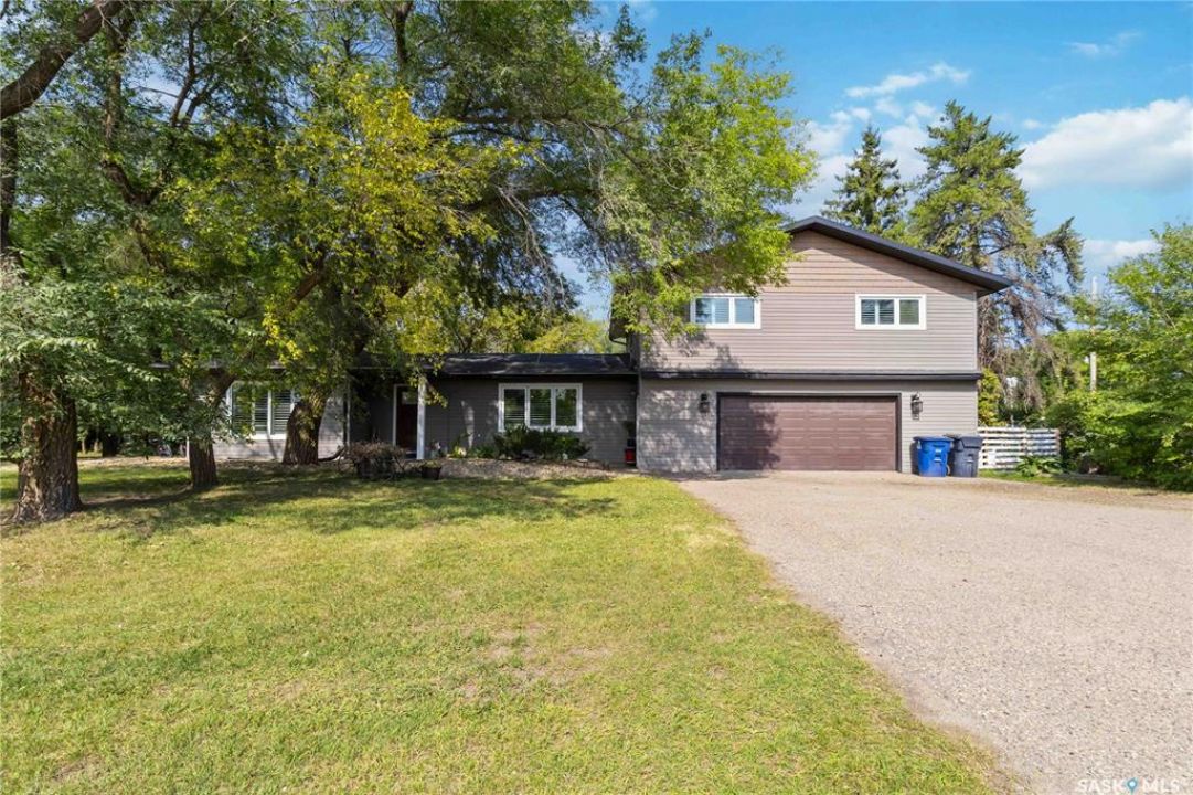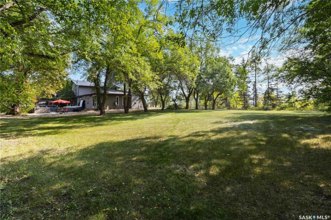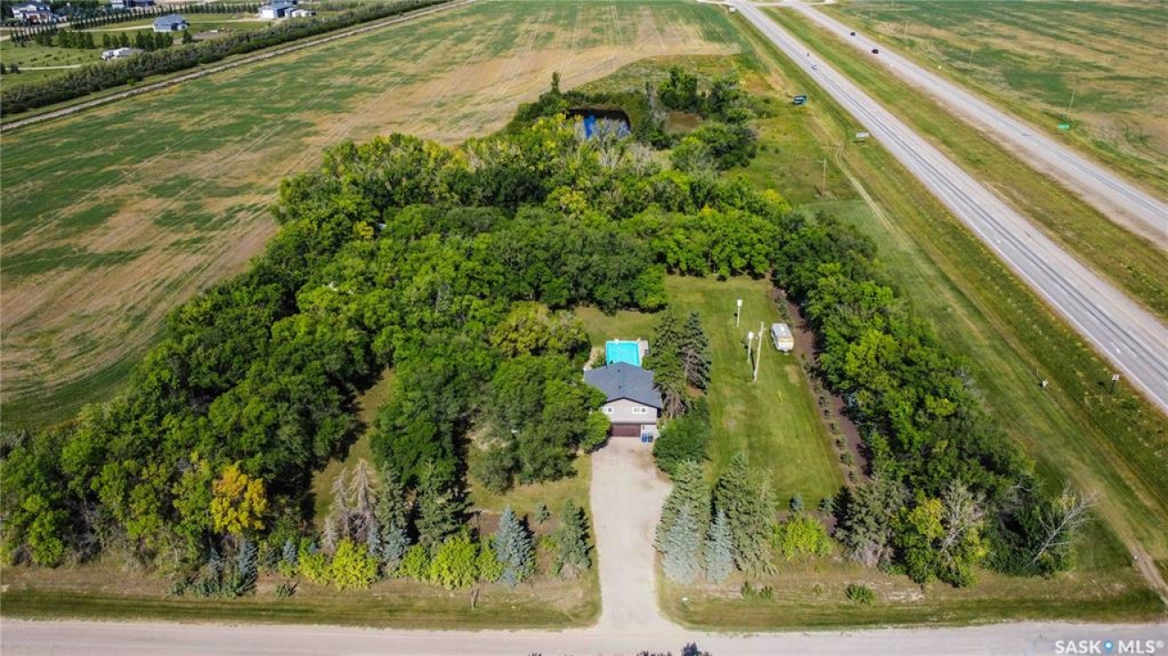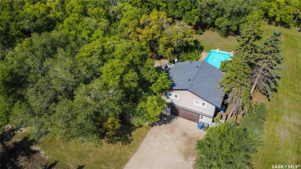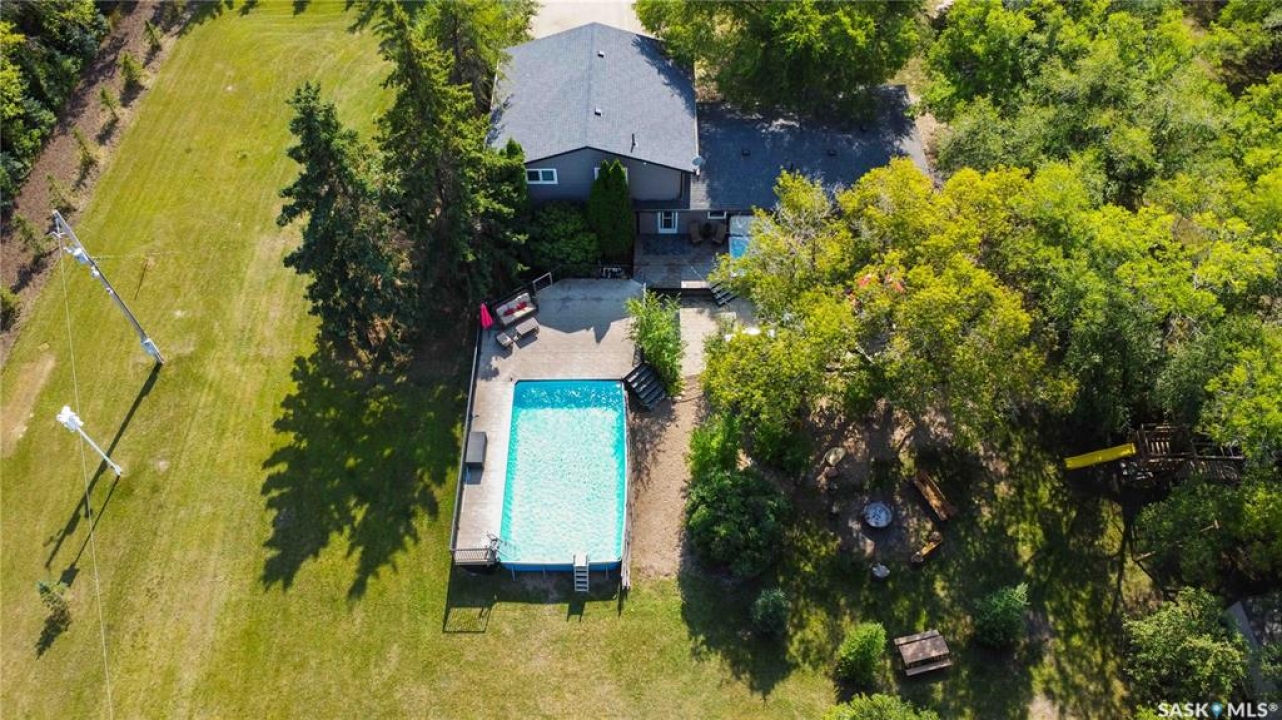 Incredible Renovated Acreage – under 15 Minutes to Saskatoon. Experience the perfect mix of country living and modern convenience on this beautifully maintained, nearly 40-acre property located just minutes from the city. The home site is loaded with features. The renovated home boasts a spacious kitchen and dining area, beautiful hardwood floors, and a private living room. You'll find 3 large bedrooms, a spa-style bathroom with heated floors, and a newly finished basement complete with a second bathroom, office, den, and ample storage. Step outside into a backyard oasis perfect for all ages and seasons which includes an expansive deck, outdoor kitchen, 17x30 pool and hot tub. The yard site also includes a fire pit, private ice rink for winter fun, children's play set, large garden, and a chicken coop. There are also two secluded dugouts ideal for relaxing or nature watching. Whether you're entertaining, gardening, relaxing by the water, or enjoying family fun year-round, this property has it all.