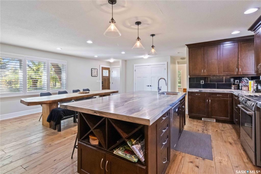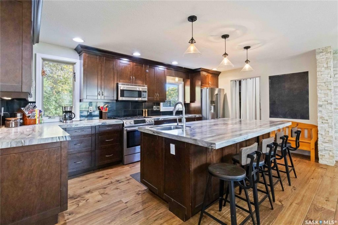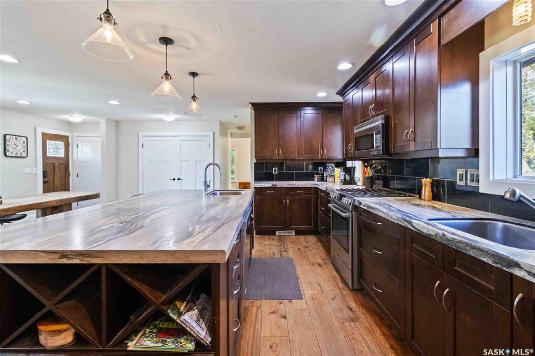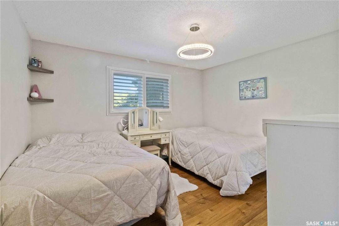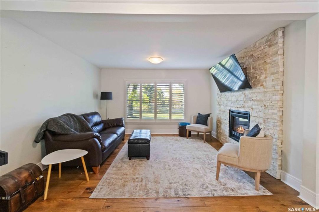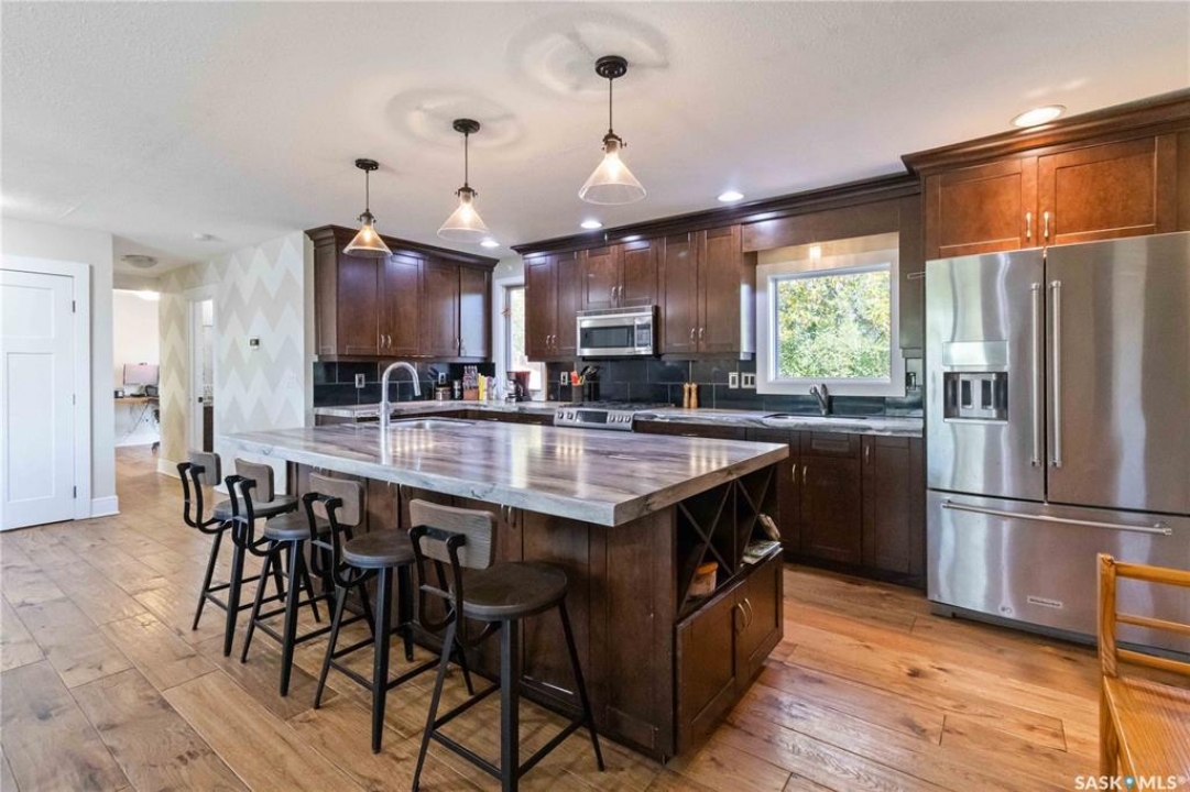 Incredible Renovated Acreage – under 15 Minutes to Saskatoon. Experience the perfect mix of country living and modern convenience on this beautifully maintained, nearly 40-acre property located just minutes from the city. The home site is loaded with features. The renovated home boasts a spacious kitchen and dining area, beautiful hardwood floors, and a private living room. You'll find 3 large bedrooms, a spa-style bathroom with heated floors, and a newly finished basement complete with a second bathroom, office, den, and ample storage. Step outside into a backyard oasis perfect for all ages and seasons which includes an expansive deck, outdoor kitchen, 17x30 pool and hot tub. The yard site also includes a fire pit, private ice rink for winter fun, children's play set, large garden, and a chicken coop. There are also two secluded dugouts ideal for relaxing or nature watching. Whether you're entertaining, gardening, relaxing by the water, or enjoying family fun year-round, this property has it all.