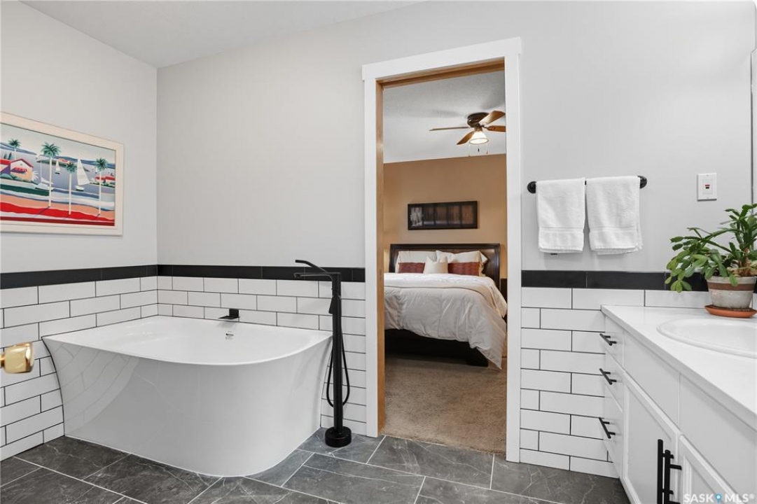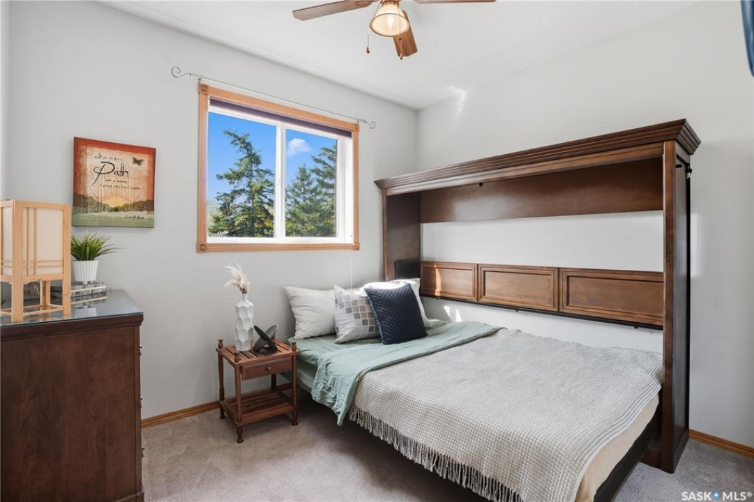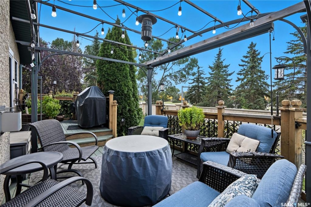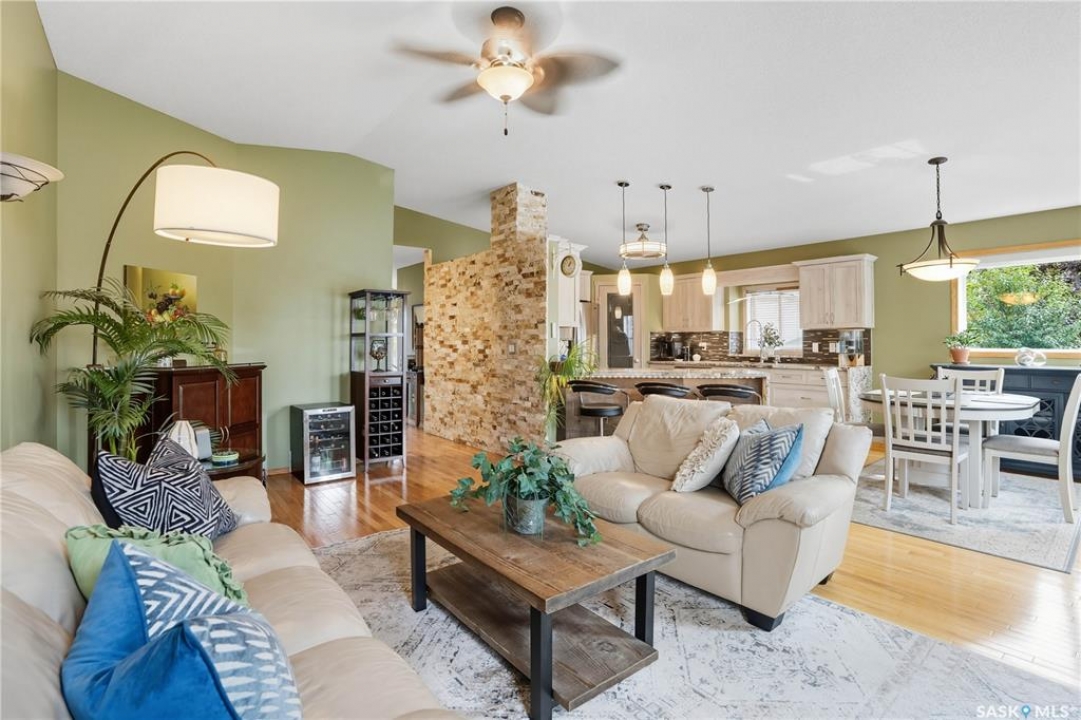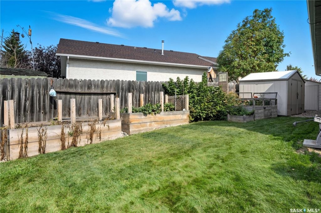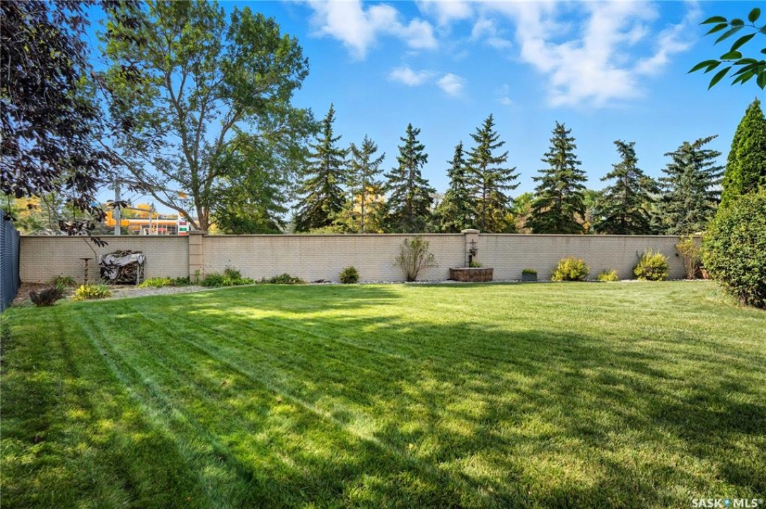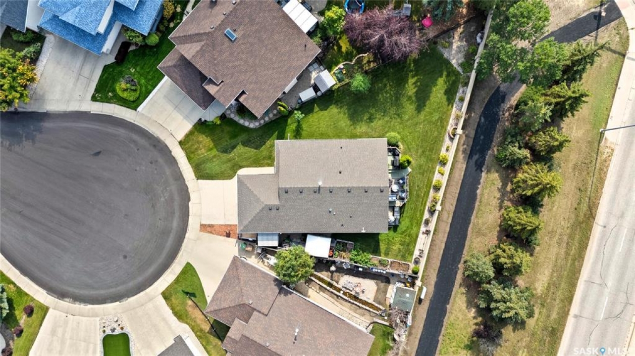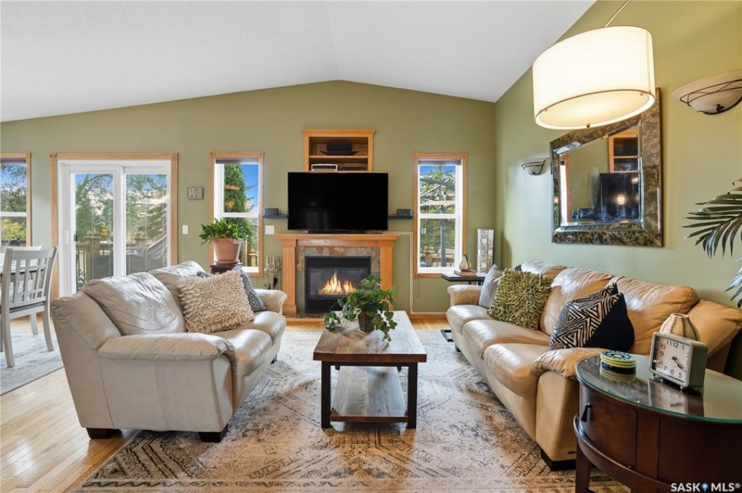 Welcome home to a well maintained bungalow on a large 7,933 sq ft pie-shaped lot in a quiet and kid friendly Windsor Park cul-de-sac. Walking paths, parks, coffee shops, shopping, amenities and Sandra Schmirler Leisure Centre are a short walk away. This location has it all! The main floor offers over 1,300 sq ft with three bedrooms, including a huge primary suite with his-and-hers closets and a fully remodeled ensuite boasting a deep soaker tub, separate glass shower and classic subway-tile surround. Vaulted ceilings showcase the open-concept kitchen, dining and living areas where gleaming hardwood floors, a gas fireplace with built-in entertainment centre, and abundant natural light create a warm family hub. The updated kitchen is a showpiece — granite counters, white-wash cabinetry, walk-in pantry, gas range and an eat-up island that's perfect for casual meals and conversation. The fully developed basement adds flexible space: a fourth bedroom (note: basement bedroom window does not meet egress), a den, a large recreation room, generous storage, separate laundry area and utility room — ideal for family, work-from-home or hobbies. Outside, enjoy morning coffee on the composite deck with pergola and a hot-tub-ready pad (220V and electrical ran; currently disconnected at the main breaker). The double attached garage already has gas and electrical lines roughed in for future heating (attic insulation remains to be completed). Recent and notable updates include kitchen and bath renovations, updated light fixtures, a backflow valve, house insulation top-up, mud jacking to the garage pad, plus custom slate and stone accents. Smart blinds with remotes are included for the front and dining windows. Value-packed and move-in ready, this home blends thoughtful updates with practical family living and a backyard made for entertaining. Don't miss out, contact your agent today to schedule a showing