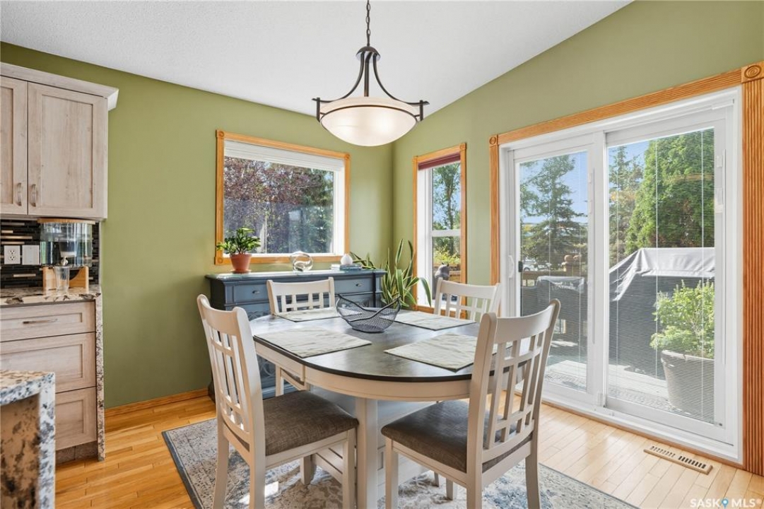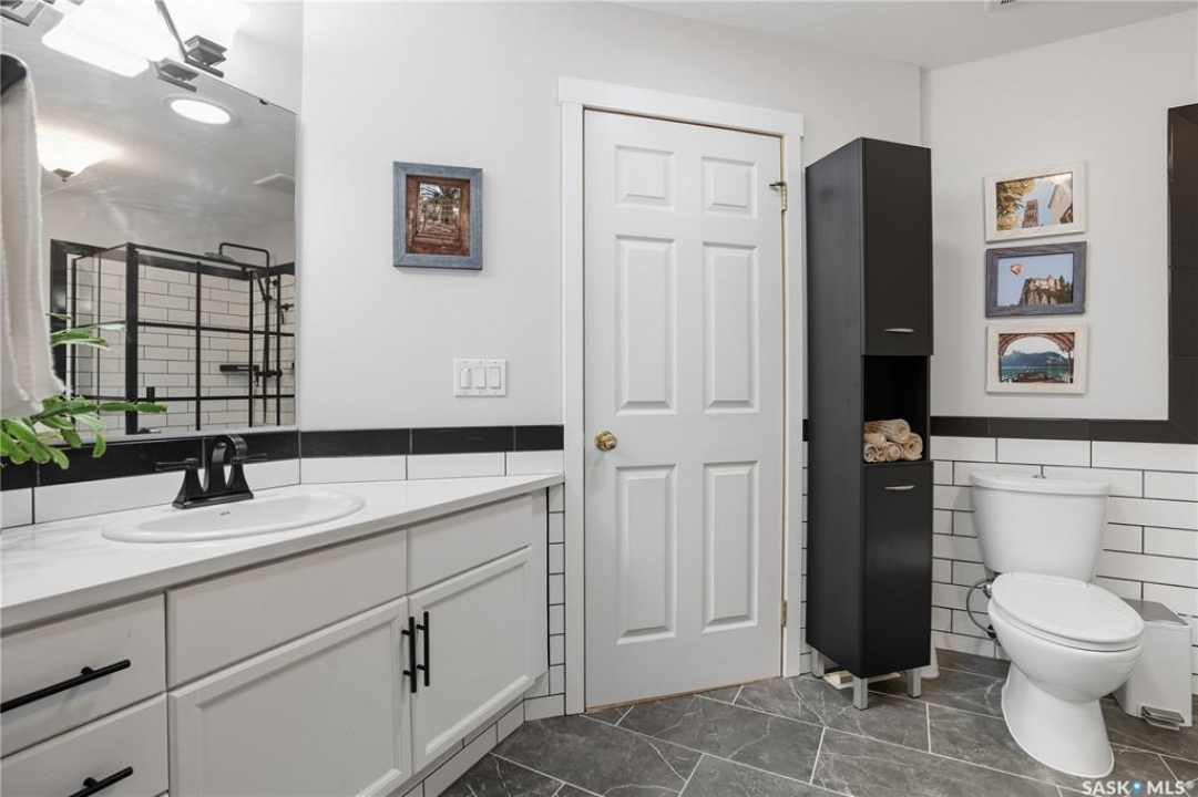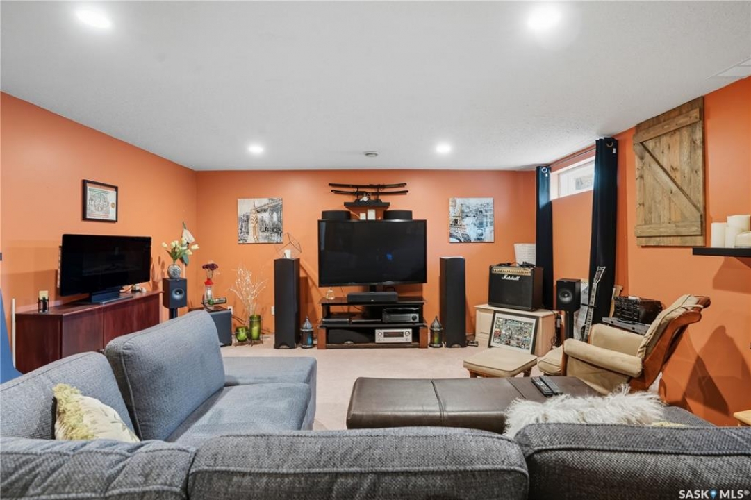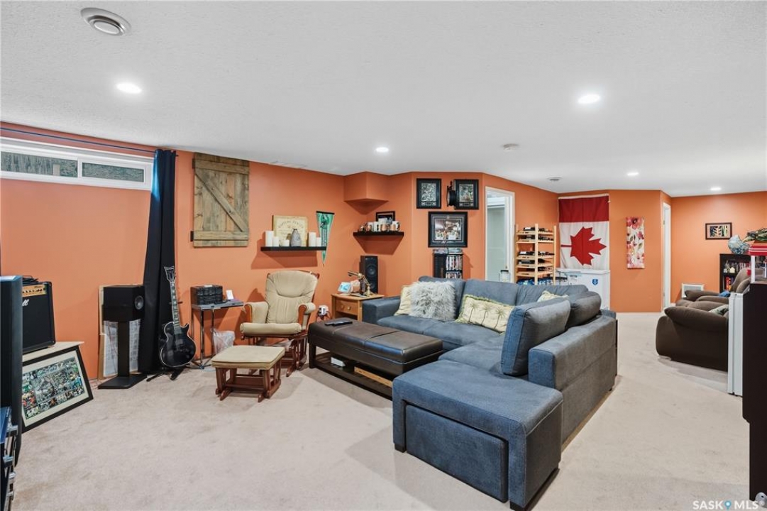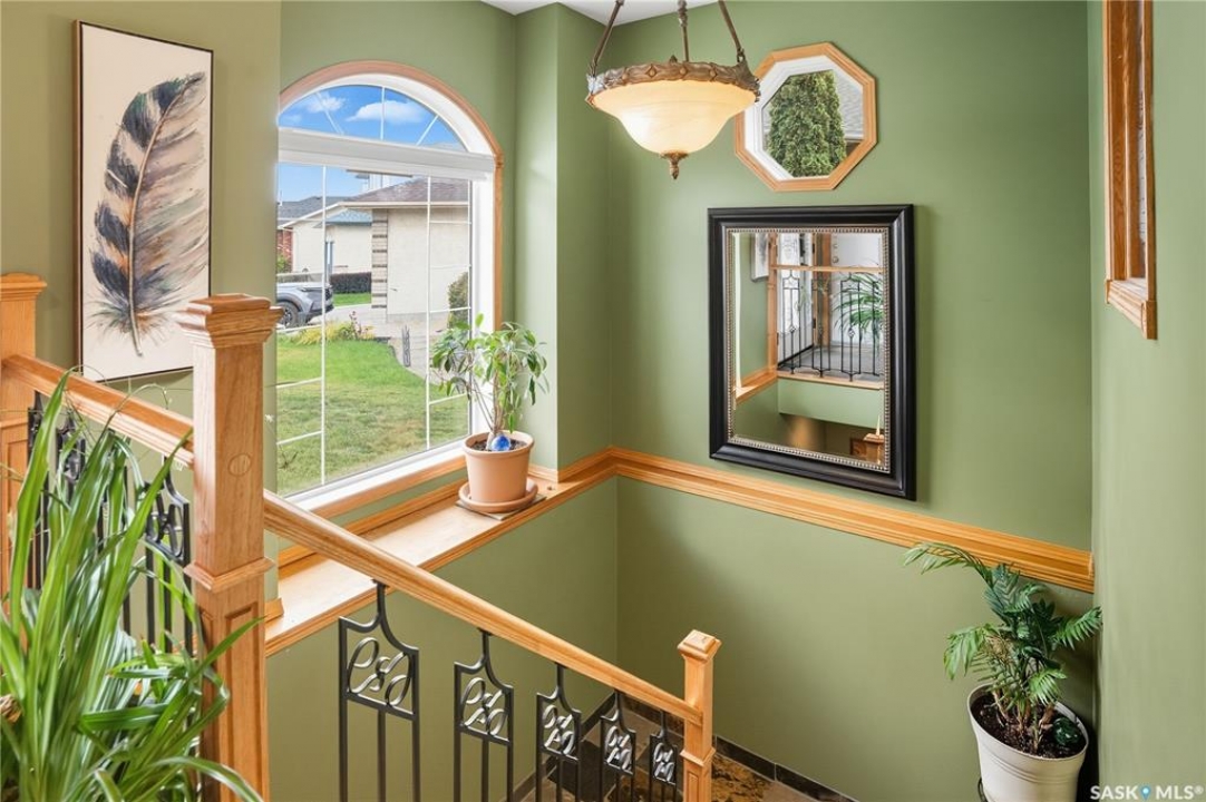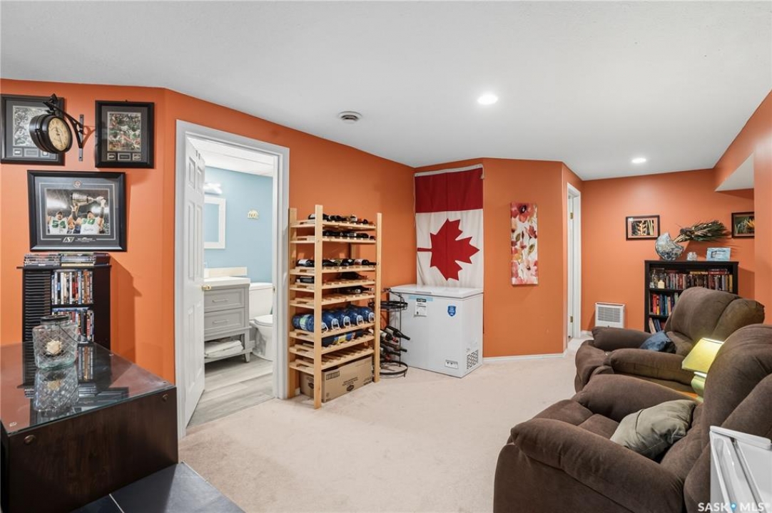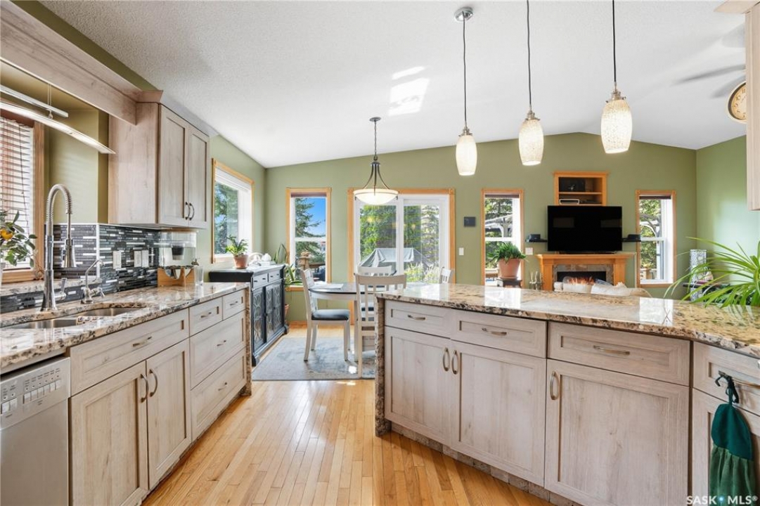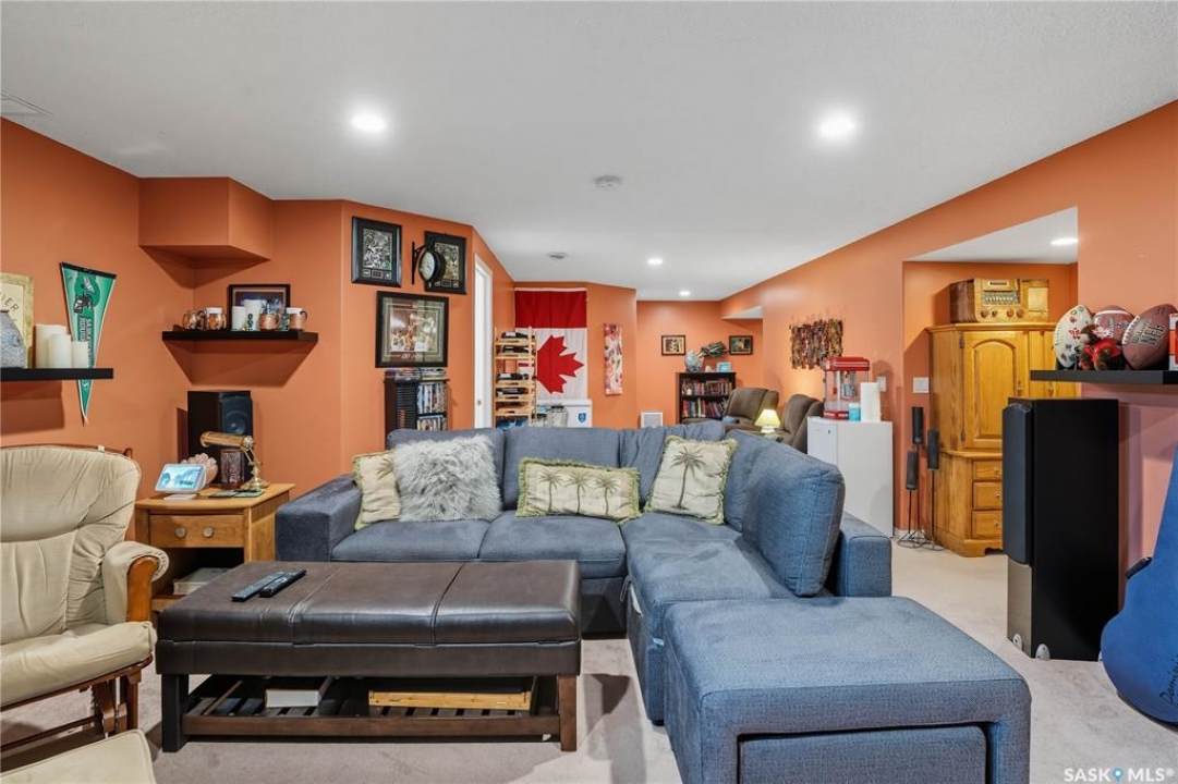 Welcome home to a well maintained bungalow on a large 7,933 sq ft pie-shaped lot in a quiet and kid friendly Windsor Park cul-de-sac. Walking paths, parks, coffee shops, shopping, amenities and Sandra Schmirler Leisure Centre are a short walk away. This location has it all! The main floor offers over 1,300 sq ft with three bedrooms, including a huge primary suite with his-and-hers closets and a fully remodeled ensuite boasting a deep soaker tub, separate glass shower and classic subway-tile surround. Vaulted ceilings showcase the open-concept kitchen, dining and living areas where gleaming hardwood floors, a gas fireplace with built-in entertainment centre, and abundant natural light create a warm family hub. The updated kitchen is a showpiece — granite counters, white-wash cabinetry, walk-in pantry, gas range and an eat-up island that's perfect for casual meals and conversation. The fully developed basement adds flexible space: a fourth bedroom (note: basement bedroom window does not meet egress), a den, a large recreation room, generous storage, separate laundry area and utility room — ideal for family, work-from-home or hobbies. Outside, enjoy morning coffee on the composite deck with pergola and a hot-tub-ready pad (220V and electrical ran; currently disconnected at the main breaker). The double attached garage already has gas and electrical lines roughed in for future heating (attic insulation remains to be completed). Recent and notable updates include kitchen and bath renovations, updated light fixtures, a backflow valve, house insulation top-up, mud jacking to the garage pad, plus custom slate and stone accents. Smart blinds with remotes are included for the front and dining windows. Value-packed and move-in ready, this home blends thoughtful updates with practical family living and a backyard made for entertaining. Don't miss out, contact your agent today to schedule a showing