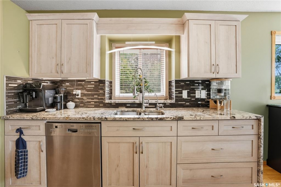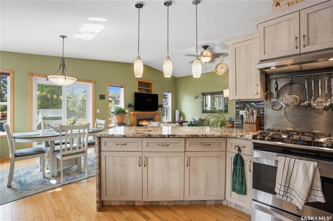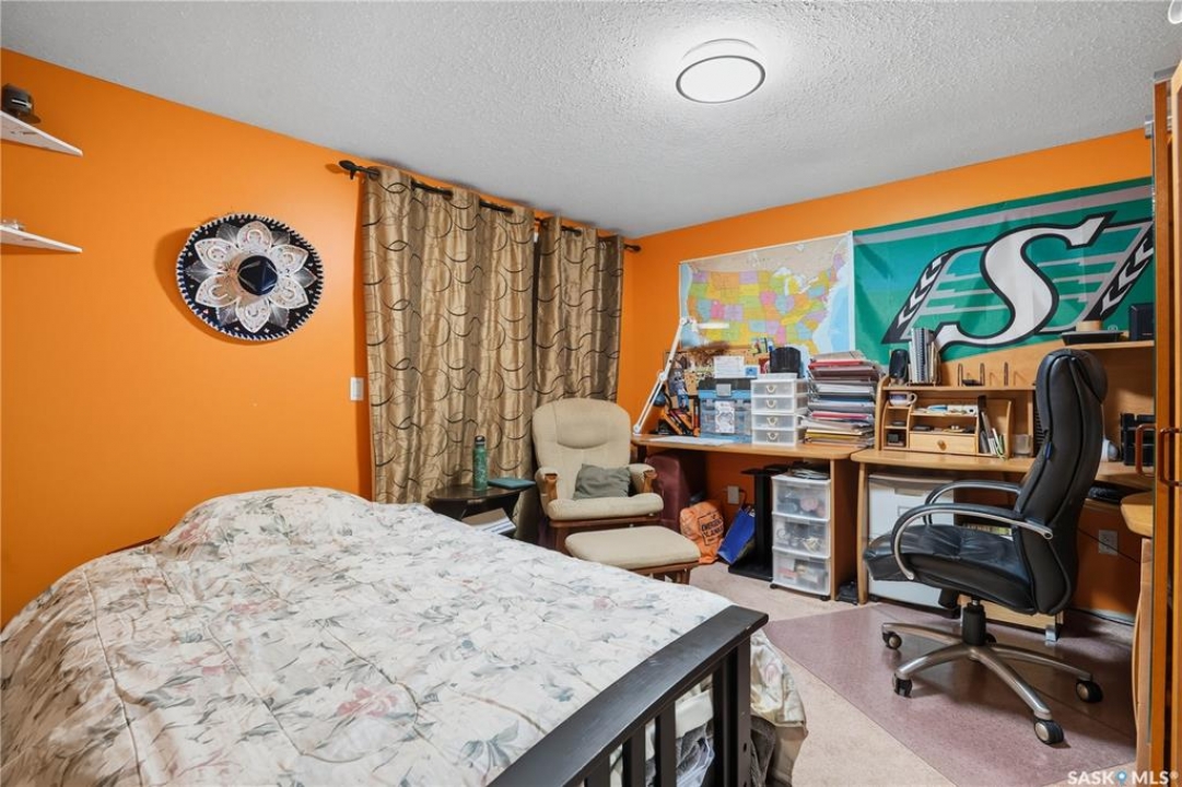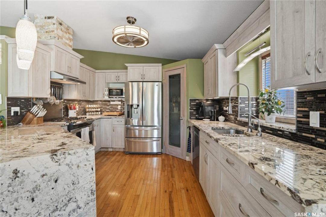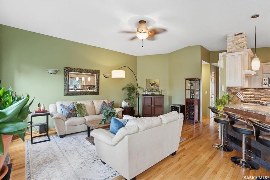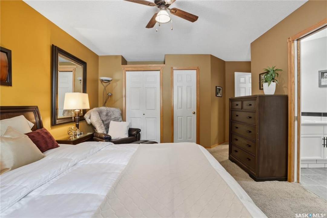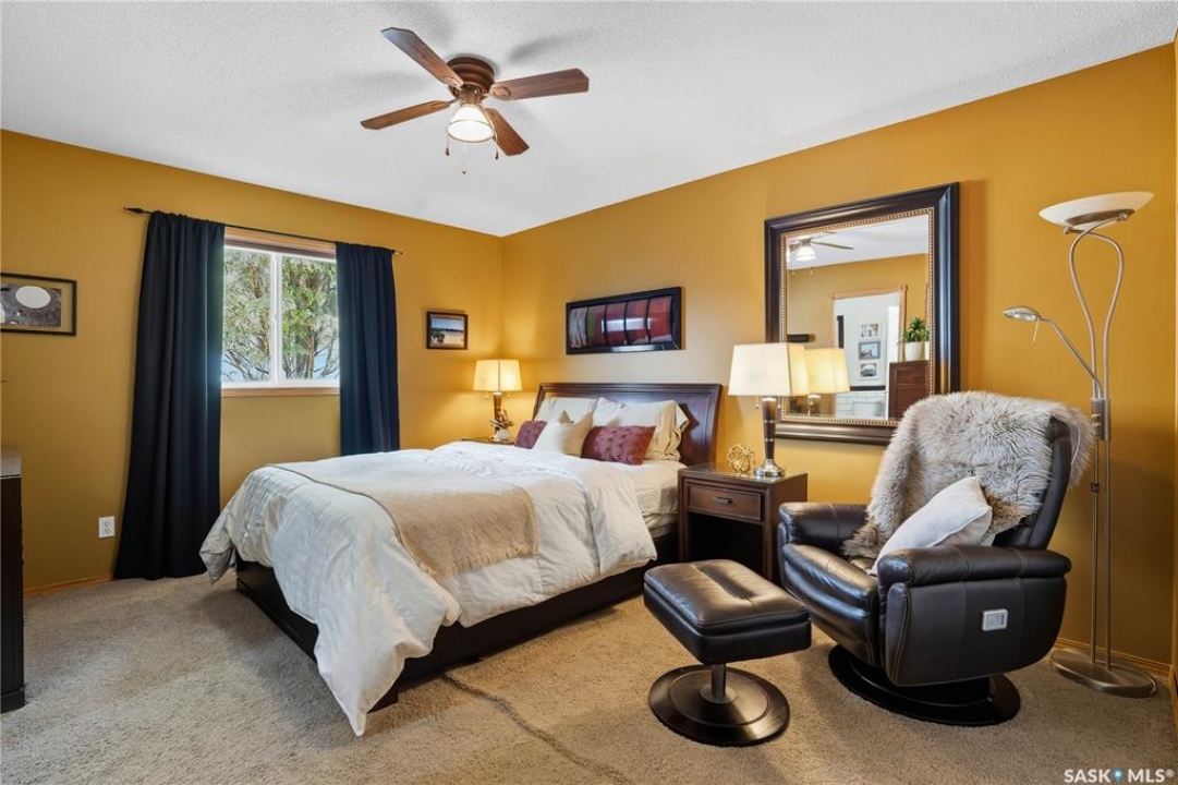 Welcome home to a well maintained bungalow on a large 7,933 sq ft pie-shaped lot in a quiet and kid friendly Windsor Park cul-de-sac. Walking paths, parks, coffee shops, shopping, amenities and Sandra Schmirler Leisure Centre are a short walk away. This location has it all! The main floor offers over 1,300 sq ft with three bedrooms, including a huge primary suite with his-and-hers closets and a fully remodeled ensuite boasting a deep soaker tub, separate glass shower and classic subway-tile surround. Vaulted ceilings showcase the open-concept kitchen, dining and living areas where gleaming hardwood floors, a gas fireplace with built-in entertainment centre, and abundant natural light create a warm family hub. The updated kitchen is a showpiece — granite counters, white-wash cabinetry, walk-in pantry, gas range and an eat-up island that's perfect for casual meals and conversation. The fully developed basement adds flexible space: a fourth bedroom (note: basement bedroom window does not meet egress), a den, a large recreation room, generous storage, separate laundry area and utility room — ideal for family, work-from-home or hobbies. Outside, enjoy morning coffee on the composite deck with pergola and a hot-tub-ready pad (220V and electrical ran; currently disconnected at the main breaker). The double attached garage already has gas and electrical lines roughed in for future heating (attic insulation remains to be completed). Recent and notable updates include kitchen and bath renovations, updated light fixtures, a backflow valve, house insulation top-up, mud jacking to the garage pad, plus custom slate and stone accents. Smart blinds with remotes are included for the front and dining windows. Value-packed and move-in ready, this home blends thoughtful updates with practical family living and a backyard made for entertaining. Don't miss out, contact your agent today to schedule a showing
