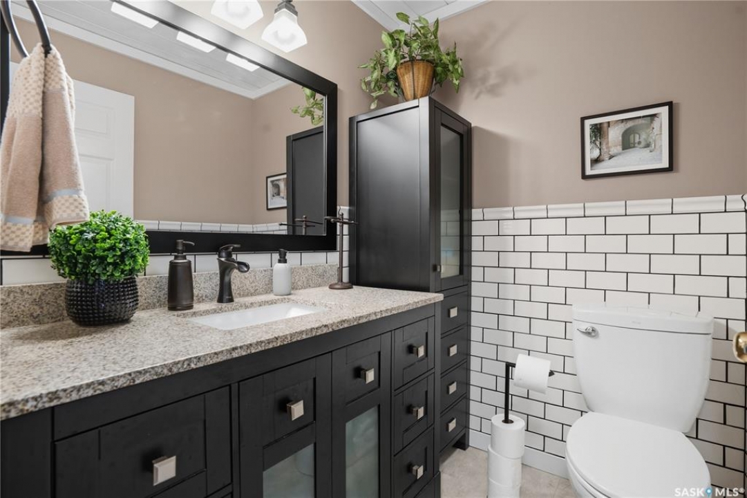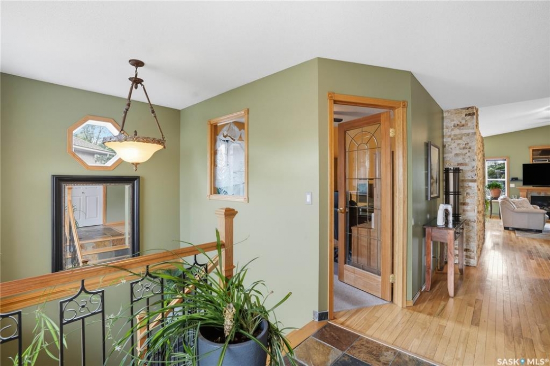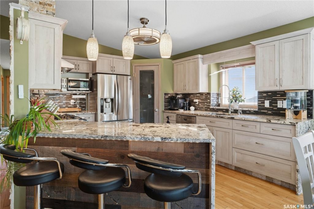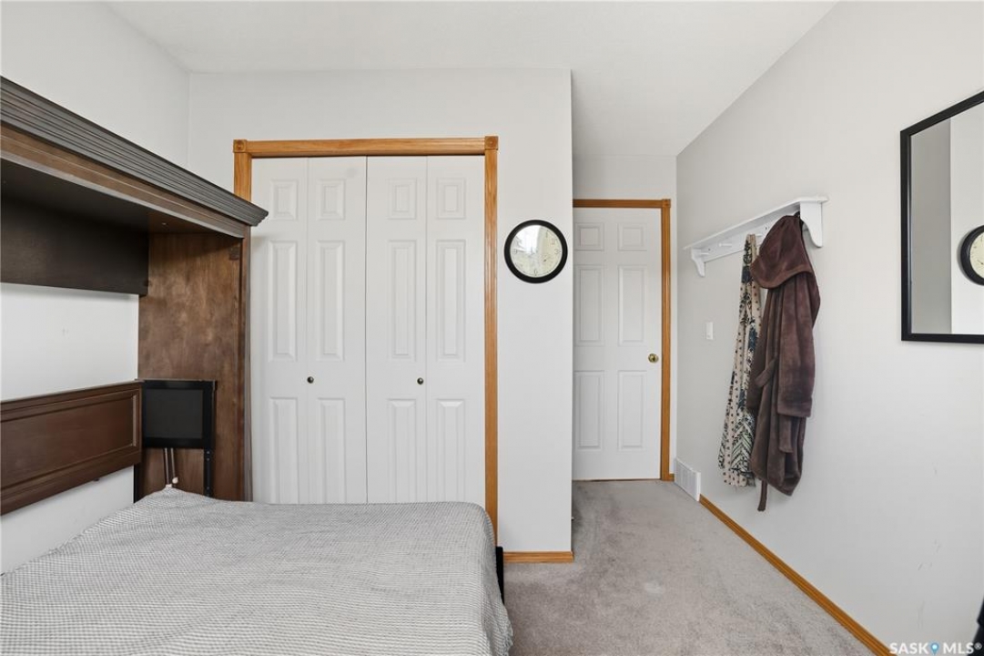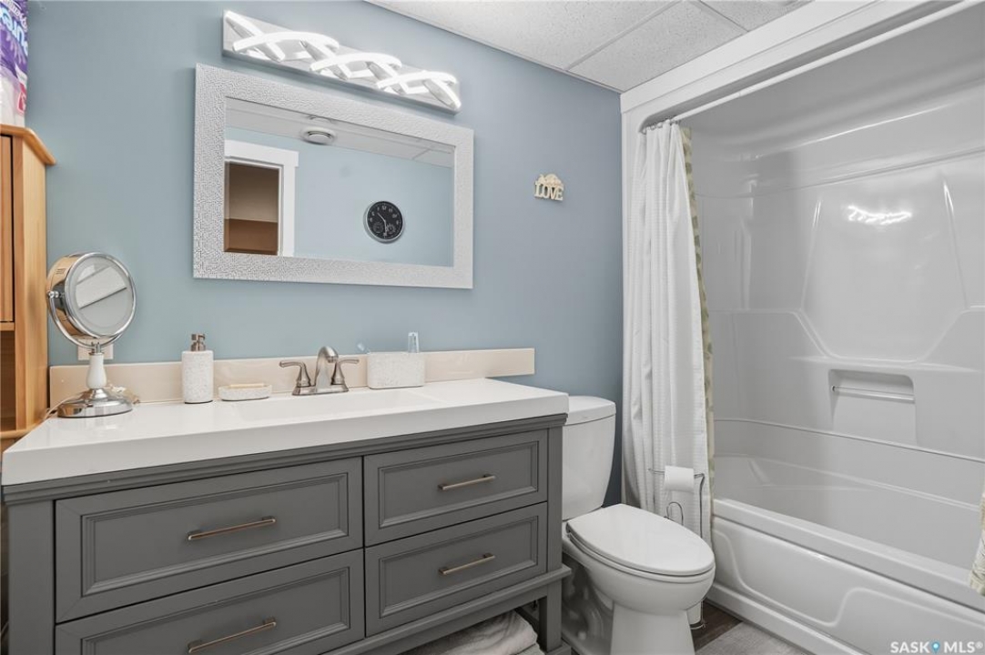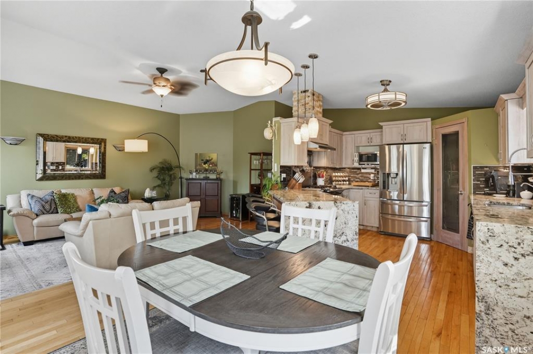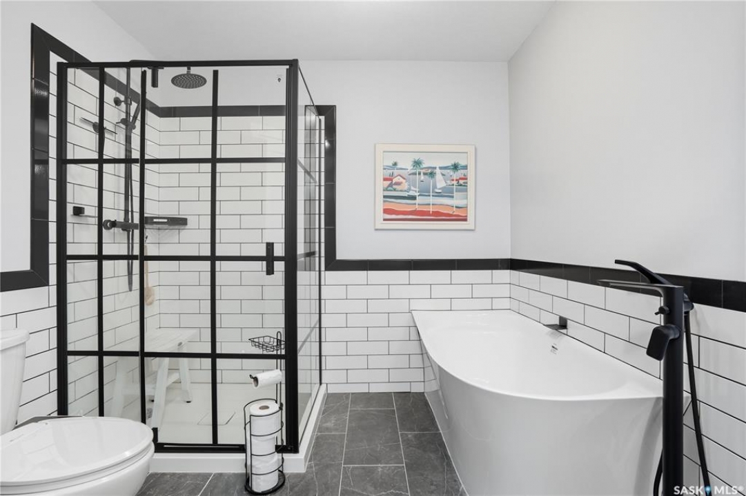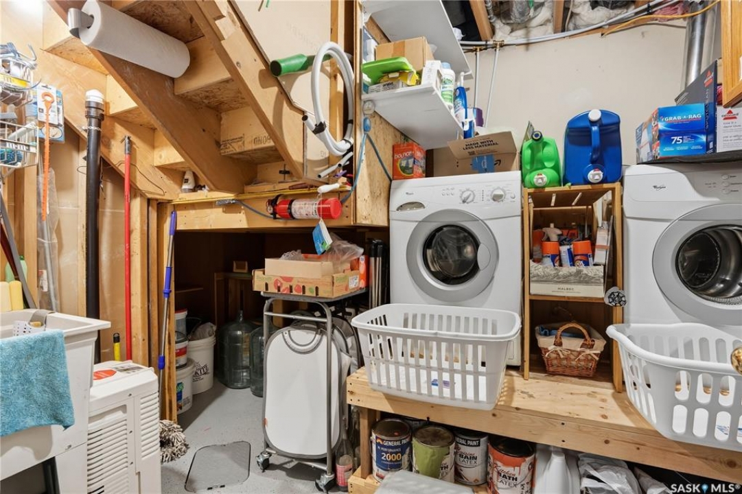 Welcome home to a well maintained bungalow on a large 7,933 sq ft pie-shaped lot in a quiet and kid friendly Windsor Park cul-de-sac. Walking paths, parks, coffee shops, shopping, amenities and Sandra Schmirler Leisure Centre are a short walk away. This location has it all! The main floor offers over 1,300 sq ft with three bedrooms, including a huge primary suite with his-and-hers closets and a fully remodeled ensuite boasting a deep soaker tub, separate glass shower and classic subway-tile surround. Vaulted ceilings showcase the open-concept kitchen, dining and living areas where gleaming hardwood floors, a gas fireplace with built-in entertainment centre, and abundant natural light create a warm family hub. The updated kitchen is a showpiece — granite counters, white-wash cabinetry, walk-in pantry, gas range and an eat-up island that's perfect for casual meals and conversation. The fully developed basement adds flexible space: a fourth bedroom (note: basement bedroom window does not meet egress), a den, a large recreation room, generous storage, separate laundry area and utility room — ideal for family, work-from-home or hobbies. Outside, enjoy morning coffee on the composite deck with pergola and a hot-tub-ready pad (220V and electrical ran; currently disconnected at the main breaker). The double attached garage already has gas and electrical lines roughed in for future heating (attic insulation remains to be completed). Recent and notable updates include kitchen and bath renovations, updated light fixtures, a backflow valve, house insulation top-up, mud jacking to the garage pad, plus custom slate and stone accents. Smart blinds with remotes are included for the front and dining windows. Value-packed and move-in ready, this home blends thoughtful updates with practical family living and a backyard made for entertaining. Don't miss out, contact your agent today to schedule a showing