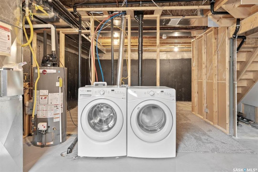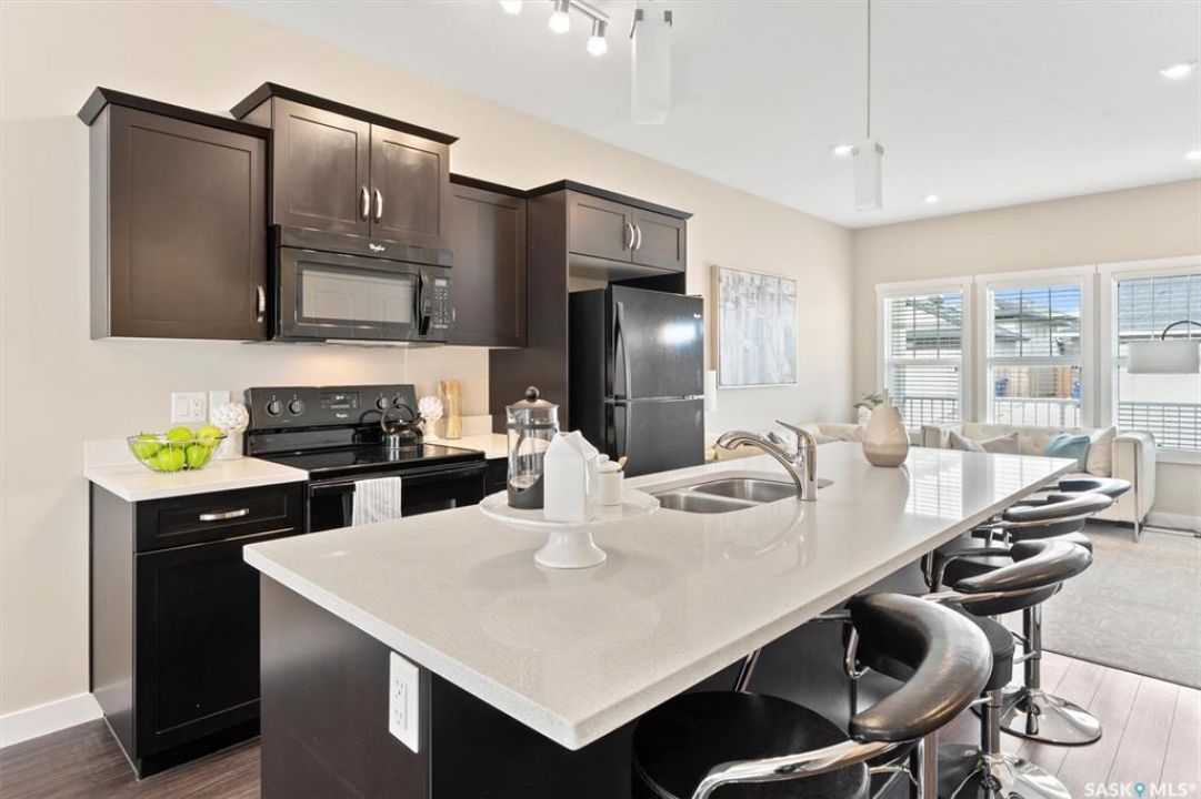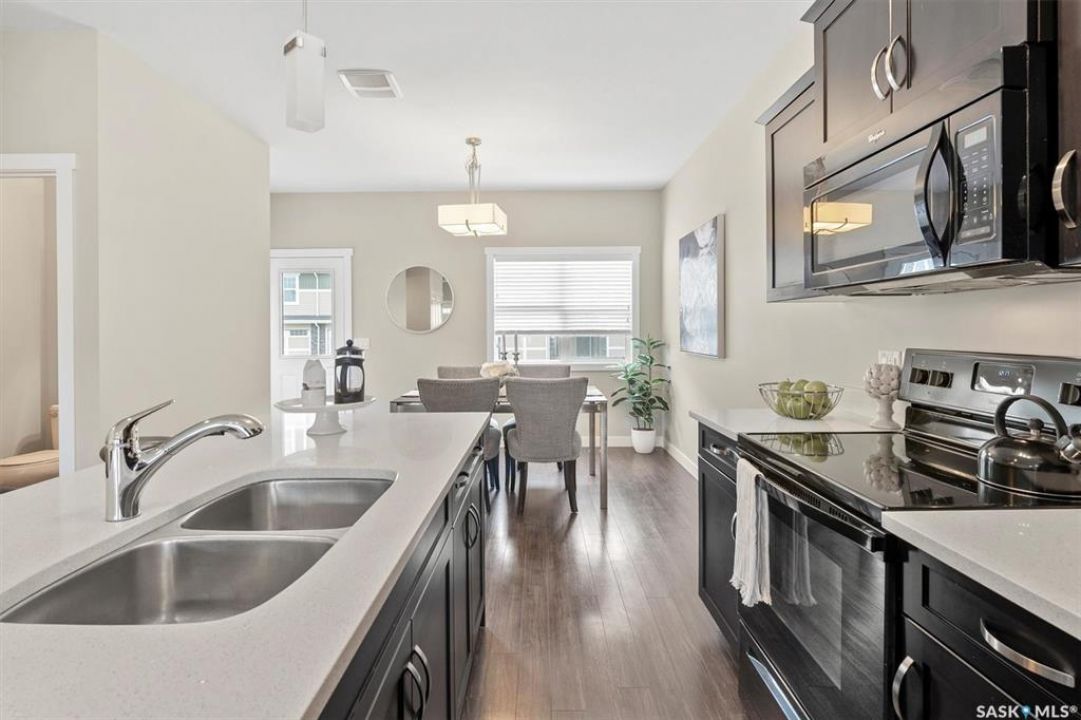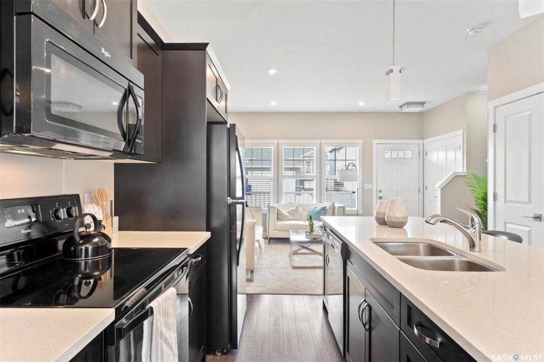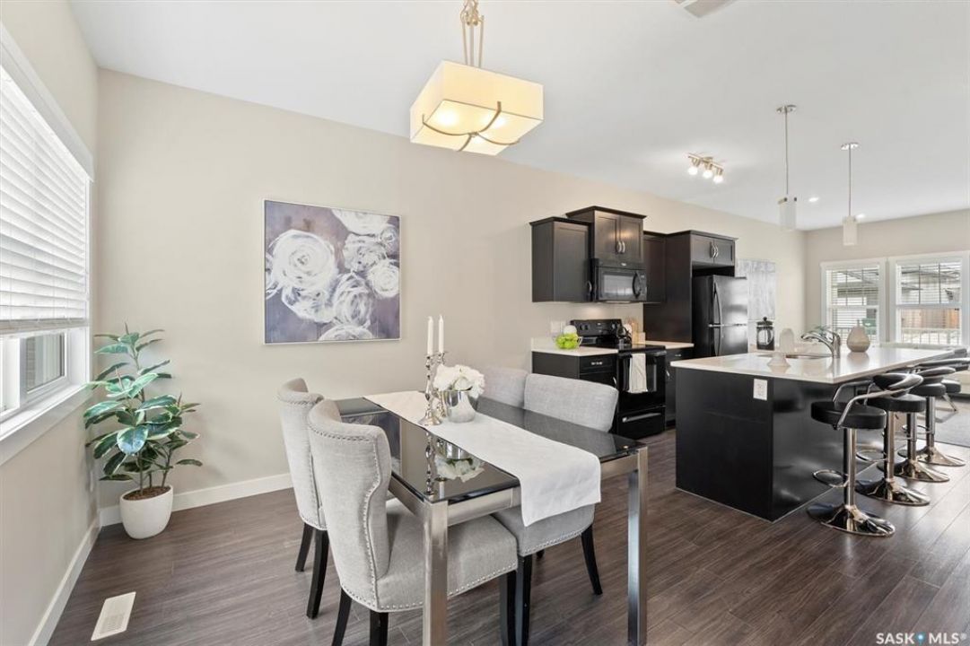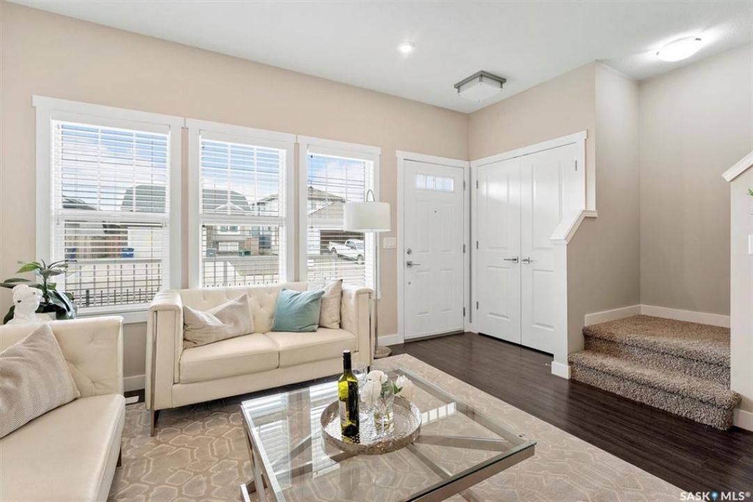 Welcome to 1129 Kolynchuk Link — a modern townhouse located in the desirable Living Stone community of Stonebridge. This two-storey home features 3 bedrooms, 2 bathrooms, and over 1,200 sq. ft. of living space, along with two electrified parking stalls and convenient visitor parking nearby. The main floor offers a spacious living room, dining area, and a well-laid-out kitchen with modern appliances, plus a convenient 2-piece bath. Upstairs, you'll find three comfortable bedrooms, including a primary bedroom with generous closet space, along with a full 4-piece bathroom. The unfinished basement with laundry is ready for your personal touch and offers potential for a family room, additional bedroom, or bathroom. Additional highlights include central air conditioning, laminate flooring throughout the main level, a rear deck, and front lawn space. Condo fees are only $258 per month and include common area maintenance, snow removal, water, lawn care, garbage, reserve fund contributions, and more. Living Stone is a well-managed community that allows pets (with restrictions) and is ideally located near parks, schools, and the many amenities of Stonebridge, including Sobeys, Walmart, Home Depot, Brown's, The Canadian Brewhouse, and Motion Fitness. The neighborhood also offers scenic walking and biking paths, with quick access to the University of Saskatchewan and downtown. This affordable and functional townhouse is a fantastic opportunity for first-time buyers, young families, or investors—book your private showing today!