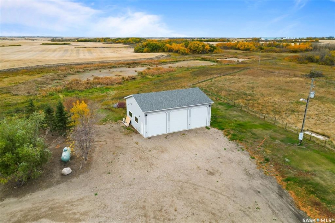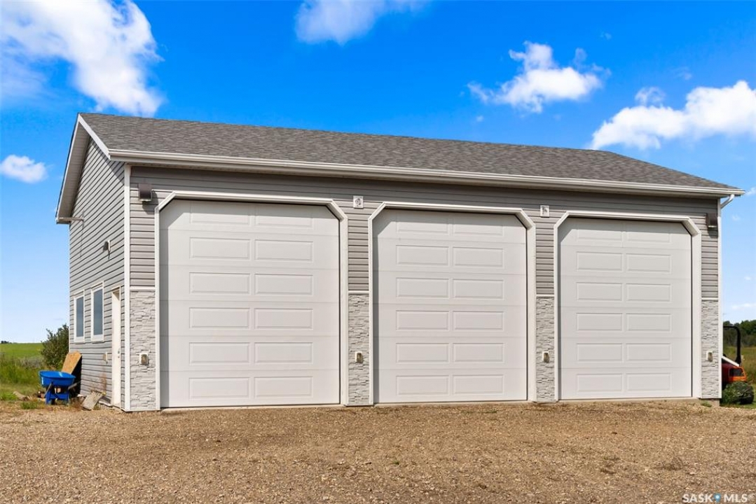 Peaceful Prairie Living – Just 40 Minutes from the City Escape the hustle and bustle with this serene 10-acre retreat, perfectly situated just a short 40-minute drive from the city. This charming bungalow offers 3 bedrooms and 1 beautifully updated 4-piece bathroom, ideal for those seeking space, comfort, and country tranquility. The heart of the home is an inviting open-concept kitchen and dining area, featuring an abundance of cabinetry, a spacious layout, and a large built-in hutch for additional storage – perfect for everyday living or effortless entertaining. The bright and airy living room is enhanced by a large bay window and access to the front deck, creating a welcoming space to relax and enjoy the view. The recently renovated bathroom includes stylish subway tile, a deep tub/shower combo, and a modern vanity. Down the hall, you'll find two well-sized bedrooms, with a third room in the basement that can serve as a bedroom, office, or flex space. For those needing workspace or extra storage, the 30x40 triple detached garage is a dream come true. Built in 2017, it features 12' doors, 14' ceilings, 200 amp service, an RV plug, and is both insulated and heated – ready for year-round use. Recent updates include: New well pump & pressure system (2021) Septic pump (2024) & septic line (2016) House shingles (2017) Furnace & central A/C (2016) 200 AMP electrical service (2018) Renovated 4-piece bathroom (2021) Reverse osmosis system Outdoors, enjoy the privacy and natural beauty with planted trees, raspberry bushes on a drip line, and a fenced area on the north side with page wire and in-ground dog fencing – ideal for pets or hobby farming. Whether you're looking for a peaceful home base, a weekend escape, or a place to grow your roots, this prairie property offers the perfect blend of modern comfort and rural charm.