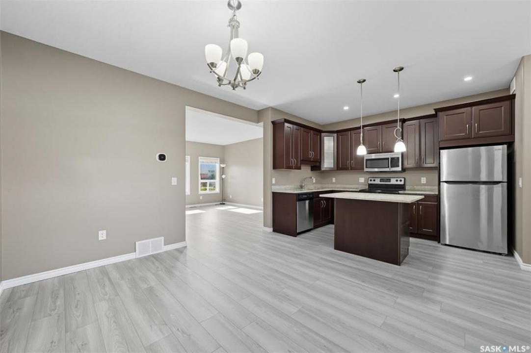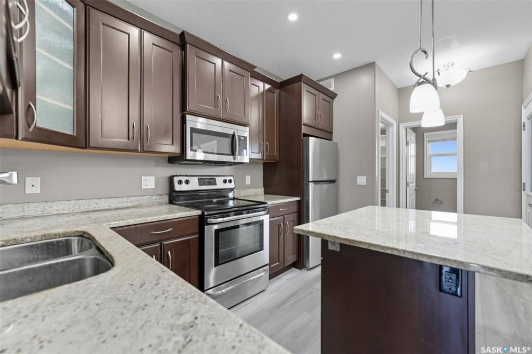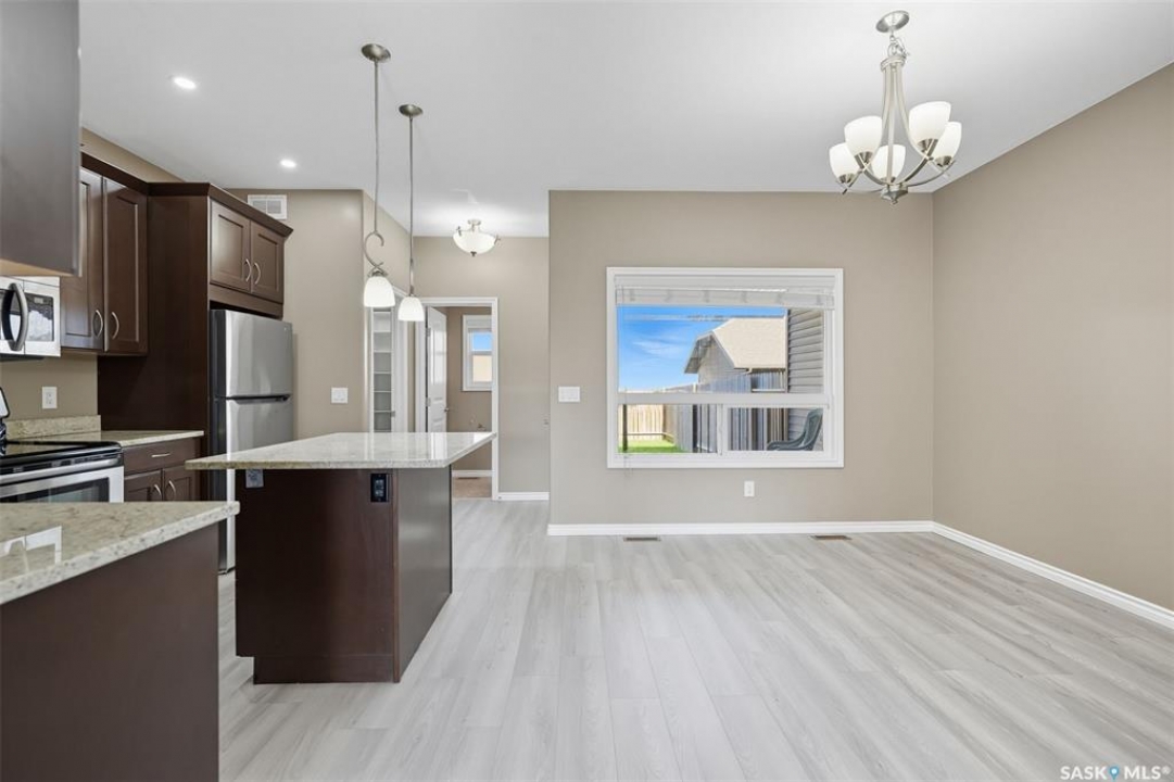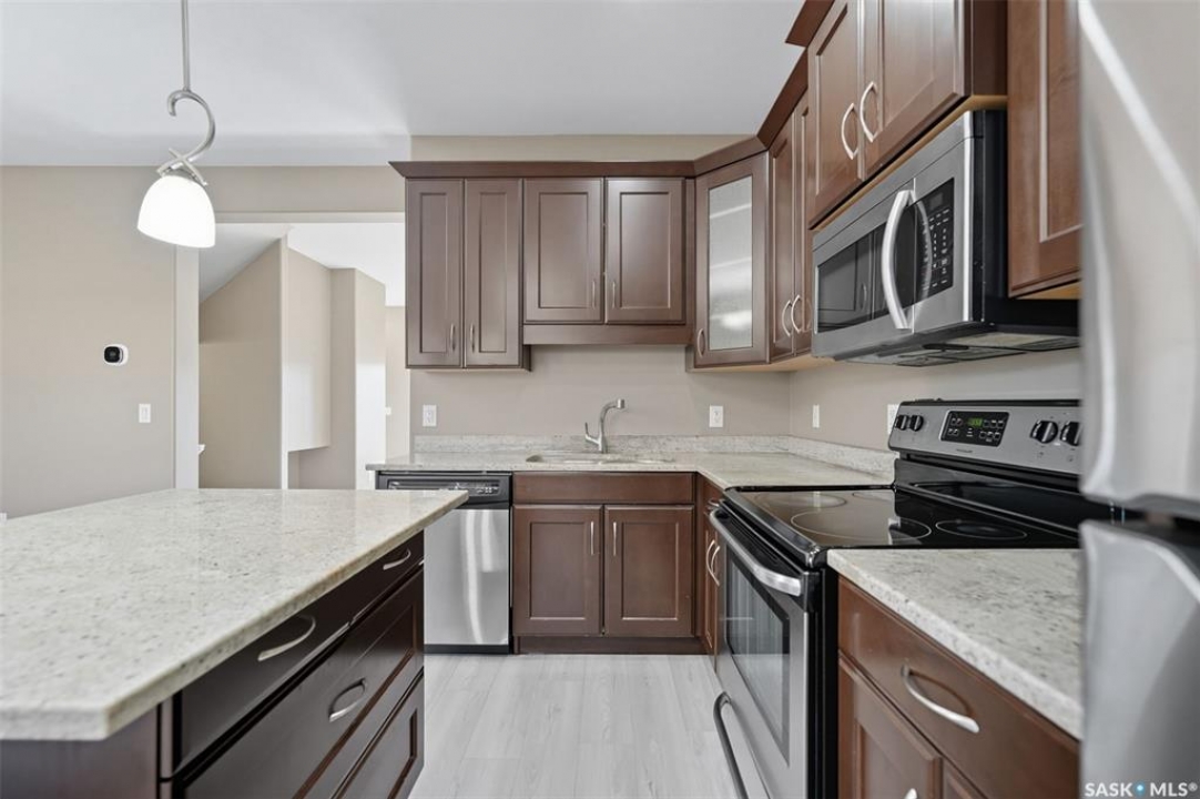 Welcome to 806 Stensrud Road – Your New Home in Willowgrove! Located in one of the most sought-after communities, Willowgrove, this spacious townhouse offers everything a growing family could ask for: 4 bedrooms, 4 bathrooms, a private yard, and over 1,600 sqft of fully finished living space across three levels. The main floor offers a bright and inviting living room, enhanced by oversized bay windows that fill the space with natural light throughout the day. The kitchen is designed for both style and function, featuring a large island perfect for family breakfasts, along with a generous walk-in pantry that provides ample storage. Adjacent to the kitchen, the dining area overlooks the private backyard, where sliding doors lead directly to a deck that's ideal for summer barbecues and outdoor gatherings. Upstairs, you'll find three well-sized bedrooms, including a southwest-facing primary suite that is bathed in warm afternoon sunlight. This level also includes two full bathrooms and a conveniently located laundry area, making everyday living easy and efficient. The fully finished basement expands the home's versatility with a cozy family room, an additional bedroom, a full bathroom, and extra storage space—perfect for guests, teenagers, or even a private home office. Adding to the appeal is the unbeatable location. The home sits directly across from Willowgrove Primary School, allowing families with young children the comfort of a 30-second walk to class each morning. Centennial Collegiate High School is only five minutes away by car, and the area is surrounded by shopping centers, restaurants, and entertainment options. With the University of Saskatchewan just a 10-minute drive, this home offers both convenience and community in one of Saskatoon's most desirable neighborhoods. This home combines modern updates, family-friendly design, and a prime Willowgrove location—a rare opportunity you don't want to miss!