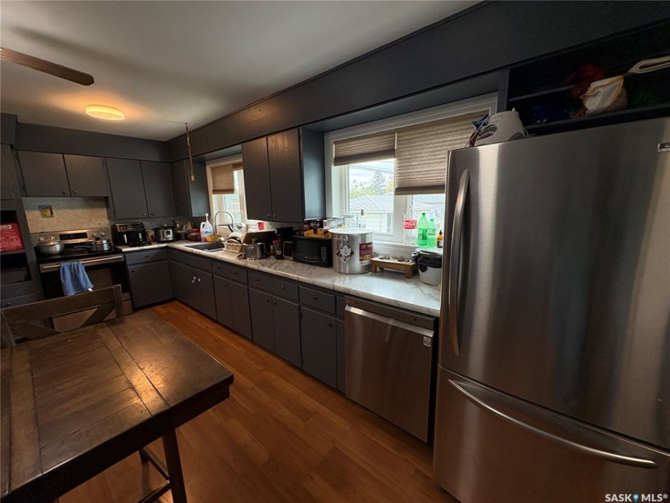 Welcome to this inviting 3+1 bedroom bungalow, perfectly situated on a quiet street right across from the school. Step inside to a bright, east-facing living room that fills with morning light, and a spacious eat-in kitchen offering loads of counter space — ideal for family meals and entertaining. The main floor also features three comfortable bedrooms and a beautifully renovated 4-piece bathroom. Downstairs, enjoy a cozy rec room, an additional bedroom, a convenient 3-piece bath, and a kitchenette — the perfect setup for guests or a growing family. Don't miss the chance to make this warm and welcoming home yours — call your agent today to book a private showing!