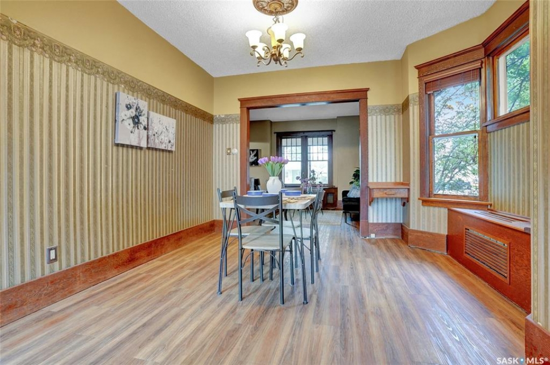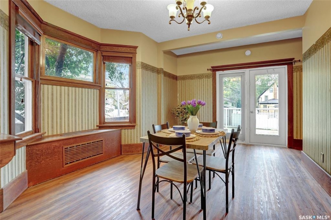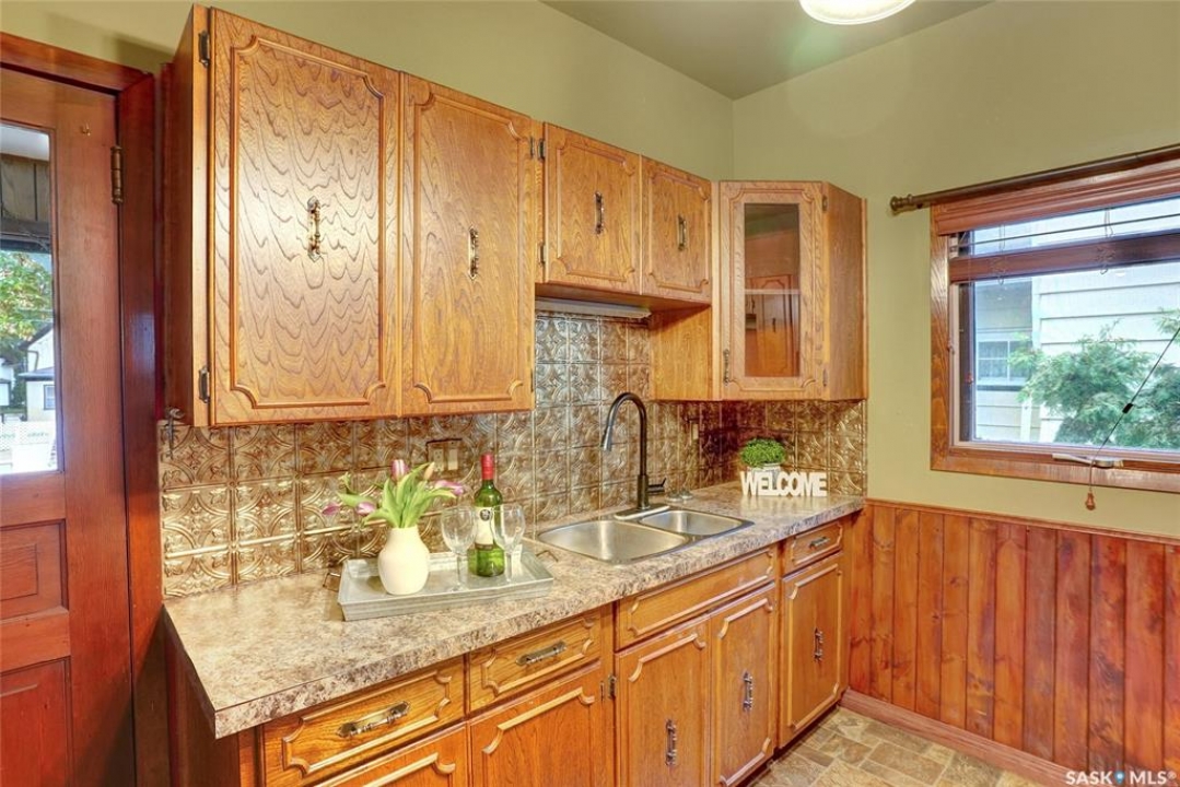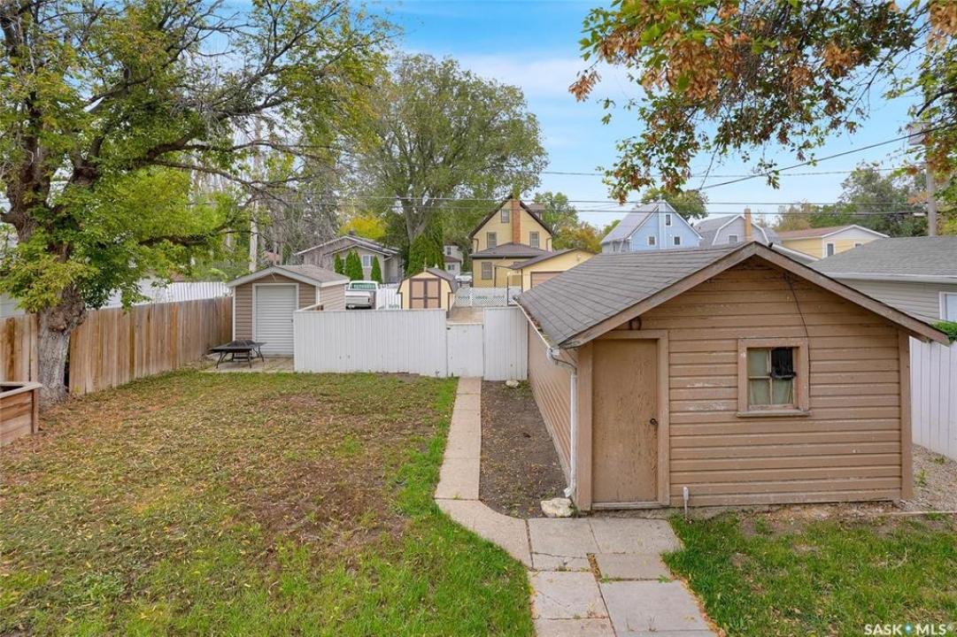 Welcome to this charming character home offering a blend of modern conveniences & timeless elegance. Nestled in a tree lined street, this property is just moments away from downtown amenities like restaurants, a movie theatre, shopping & park. The inviting front veranda is perfect for relaxing afternoons, while the deck off the dining room provides an additional outdoor space for gatherings. Several updates include Shingles, Balcony Railing, some windows, laminate flooring through main floor living space & bath. The main floor features a spacious living room seamlessly connected to a dining room, ideal for entertaining. This floor also has a complementing room with a fireplace (sold in as is condition) that is perfect for extra living space, reading room, office, or your flex room to suite your lifestyle. The kitchen boasts oak cabinetry, updated countertop, character backsplash and even a pantry. The 2nd floor you discover 2 Bedrooms w/the Primary Bedroom having access to a Balcony hovering in the tree line. This floor is complete w/a modernized 4pc. bath w/contemporary fixtures, wainscotting detail, character ceiling & tub surround. The lower level includes a family room adding extra living space, a den which can be a potential bedroom by adding a window, a laundry room w/double sinks for convenience and tons of storage. Let's not forget the updated Boiler system in the utility room. Off the dining room are patio doors leading to the deck overlooking the yard and enjoys a natural Gas BBQ Hook up. Fully fenced, it also hosts a Shed, a Single Car Garage and additional parking with alley access. This home marries the charm of its original woodwork with modern upgrades, creating a perfect sanctuary offering comfort, style, and convenience. Don't miss the opportunity to make this property your next move to live more beautifully. CLICK ON THE MULTI MEDIA LINK FOR A FULL VISUAL TOUR, and call today for your personal tour.