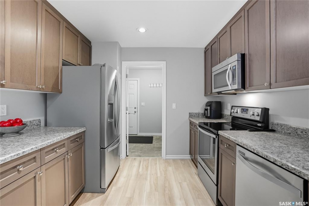 Welcome to this stunning home ideally located just a block from all major amenities and half a block from the school, allowing you to watch your kids walk to class with ease. This property features a fantastic floor plan, complete with a mudroom leading into an updated kitchen. Enjoy garden doors off the eating area that open to a large composite deck—perfect for outdoor entertaining. The great room showcases newer flooring and an electric fireplace, creating a warm and inviting space for family gatherings. Upstairs, you'll find three good-sized bedrooms, a full four-piece bath, and a walk-in closet off the primary bedroom for added convenience. The fully developed basement is perfect for entertaining, featuring a spacious family room, an additional bedroom, and another four-piece bath. Don't miss the fully insulated and drywalled garage, measuring 24x24, with direct entry into the mudroom. With central air conditioning and an incredible location, this home has it all! Schedule your viewing today!