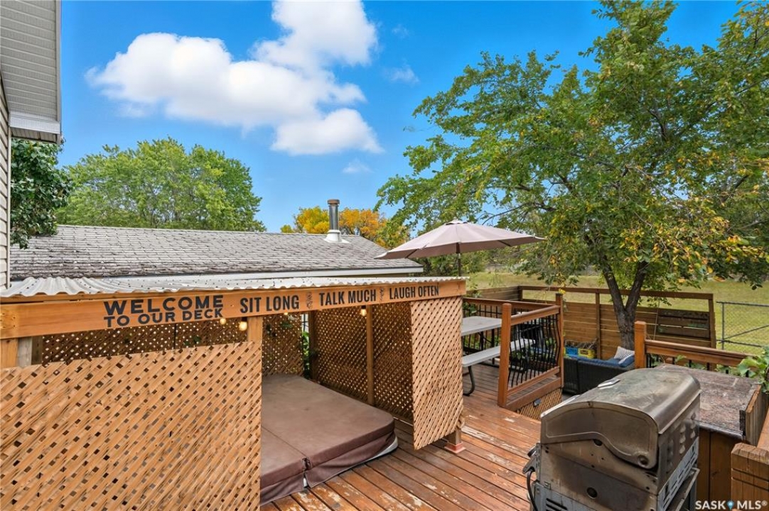 Welcome to 66 Lloyd Crescent, a fantastic 1250 sqft home in the heart of the desirable Uplands neighbourhood! Perfectly situated on a quiet crescent close to parks, schools, and with quick access to Ring Road, this property offers the ideal blend of modern updates, functional living space, and incredible income potential. Step inside and be impressed by the bright and open main floor concept. Durable vinyl plank flooring flows seamlessly throughout the spacious living room, dining area, and a modern kitchen anchored by a large central island—perfect for meal prep and entertaining. The main floor is home to three generously sized bedrooms, including a primary bedroom complete with its own private 2-piece ensuite bathroom. An updated 4-piece main bathroom serves the rest of the floor. The lower level is a game-changer. Featuring a private separate entrance, the bright one-bedroom basement suite is the ultimate mortgage helper or in-law accommodation. Complete with a full kitchen, a 4-piece bathroom, and its own separate laundry facilities, this space offers true privacy and independence. Your private backyard oasis awaits! Spend your summers entertaining on the large patio and deck, and as the autumn evenings turn crisp, relax in the luxurious hot tub. The double detached garage provides ample space for parking and storage. With major upgrades already done, including a long-lasting metal roof and updated windows, 66 Lloyd Crescent is a truly turn-key property in a prime north-end location. Don't miss this opportunity!