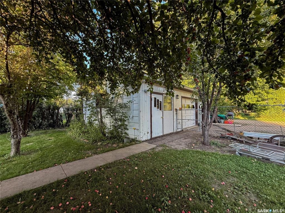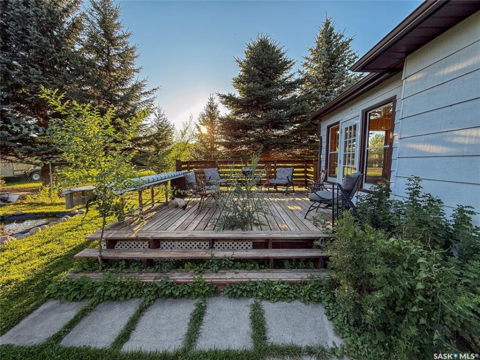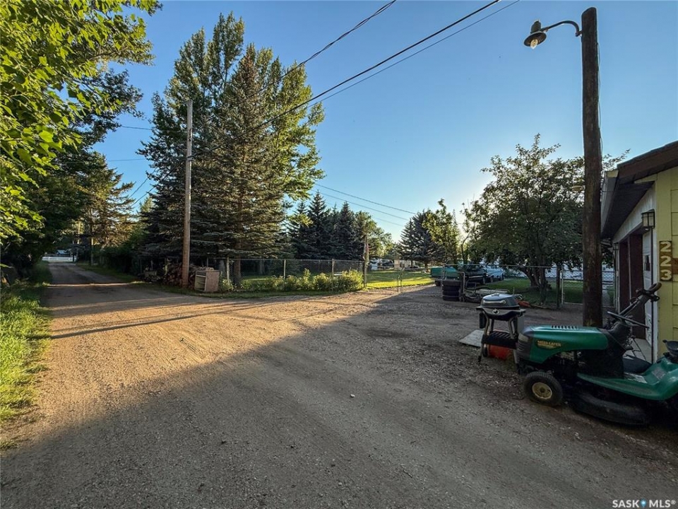 Welcome to 223 Riverside Boulevard — a rare gem tucked into one of Eastend's most picturesque settings. With wide-open green space across the street and the gently flowing creek just beyond, this home offers uninterrupted views of the Riverside Golf Course and even a peek of the T.rex Discovery Centre off in the distance. It's the kind of property where morning coffee comes with deer sightings and evening sunsets glow golden over the valley. With 1,203 sqft of living space and sitting on a massive 17,325 sqft lot, this property offers both beauty and functionality in a truly unbeatable location. Entering from the back, you're greeted by a practical mudroom that leads straight ahead to the main floor laundry area or left into the heart of the home. The oak kitchen features a large eat-up island, perfect for casual meals or entertaining, while the adjacent dining area/living room are bright and welcoming thanks to the large bay window that frames those stunning front-facing views. Off this space, you'll find the 1st main floor bedroom, a 4-piece bathroom and access to the partially developed basement.. The primary bedroom is tucked away off the secondary living room and features its own 3-piece ensuite. From the living room you have direct access to the show-stopping sunroom — finished in rich wood accents and flooded with natural light. Whether you're unwinding with a book or hosting friends, this space offers space for enjoyment and leads out to the deck and backyard oasis. A small feature pond, established landscaping and ample entertaining space make the outdoors just as inviting as the inside. The lot offers multiple parking options, including a gravel front drive, asphalt rear pad, parking beside the shed and a 32x26 double detached garage with lane access — partially insulated and ready for projects or storage. Whether you're looking to settle in the valley full-time or dreaming of a peaceful getaway, this prime Eastend location gives you the best of it all.