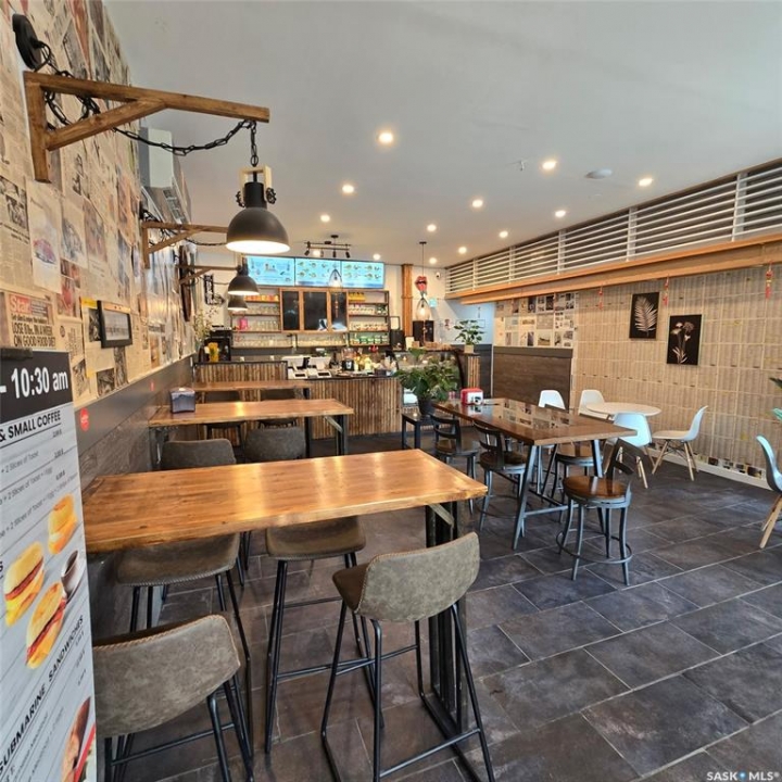 Welcome to this high-visibility corner unit commercial space—the well-known Chat Chat Coffee and Restaurant, now available for sale in one of Regina's busy and growing areas. Conveniently located close to downtown, this turnkey opportunity offers a fully equipped café and restaurant setup featuring a stylish dine-in area, professional kitchen with commercial-grade appliances, prep zones, office space, two washrooms, and storage throughout. The inviting atmosphere and central location make it an excellent spot for business meetings, casual dining, or coffee catch-ups. The unit also boasts large front-facing windows and is surrounded by residential density and foot traffic—ideal for entrepreneurs or investors ready to take over a thriving, ready-to-operate food business. Don't miss out on this exceptional commercial offering—book your viewing today!