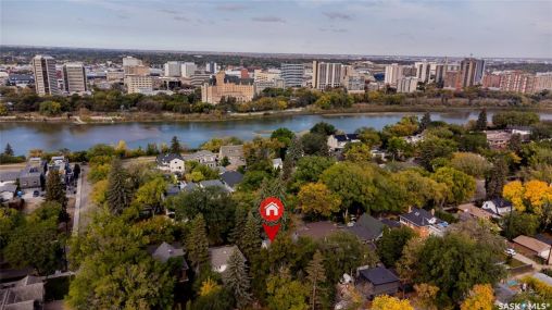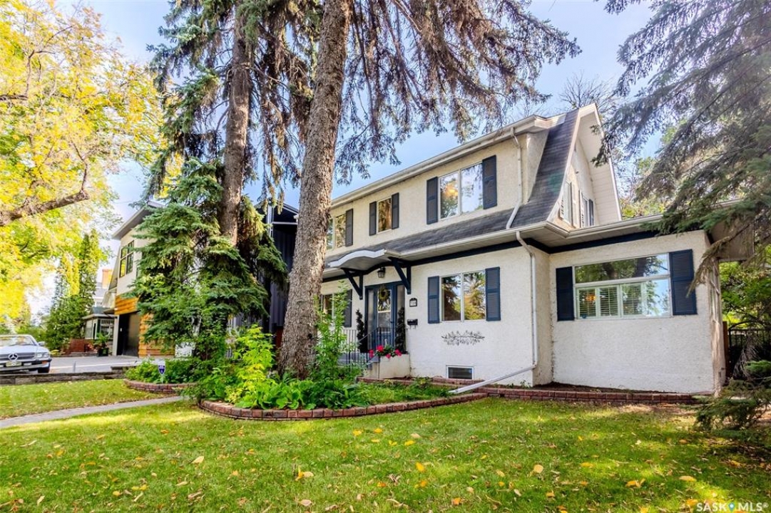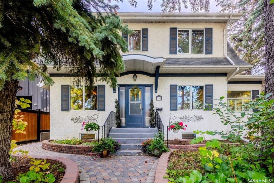 Welcome to 710 University Drive! Presenting a rare opportunity to secure your place on one of Saskatoon's most prestigious and historic streets. Whether you're envisioning your dream home on this coveted lot, seeking an investment to build two custom residences with R2 zoning, or drawn to the timeless character of a Dutch Colonial, this property offers endless potential. Set on an expansive 52 x 140 ft lot, this home is just steps from the river, minutes to Broadway's vibrant boutiques and cafes, and a short stroll to the University of Saskatchewan. University Drive is renowned for its mature tree-lined streets, heritage charm, and unbeatable walkability to river trails and downtown amenities. Built in 1926, the two-story residence blends historic character with thoughtful updates. Original hardwood floors and a gas fireplace anchor the inviting living room, while a sunroom with shuttered windows provides a bright, relaxing retreat. The formal dining room, complete with built-ins, connects to a kitchen that pairs vintage appeal with modern function, featuring a Miele gas cooktop and oven, smart fridge-freezer, farmhouse sink, and views of the private yard. Upstairs, you'll find a spacious primary suite with an updated en-suite, two generous secondary bedrooms, and a 4-piece bathroom. The fully developed lower level offers a rec room, guest bedroom, updated bath, and laundry with a smart washer and dryer. The backyard is an expansive private space with mature trees and a patio, ideal for entertaining, gardening, or future redevelopment. Recent updates include: high-efficiency furnace, on demand hot water heater, bathroom updates and kitchen appliances. This property presents a rare opportunity. Whether you restore its character charm, build your dream residence, or capitalize on R2 zoning for redevelopment, 710 University Drive is a great chance to create something remarkable in one of Saskatoon's most desired neighbourhoods. Call your Realtor today!
