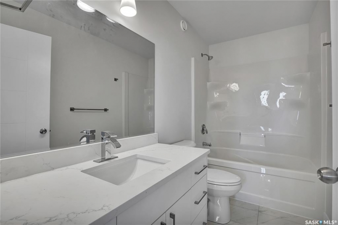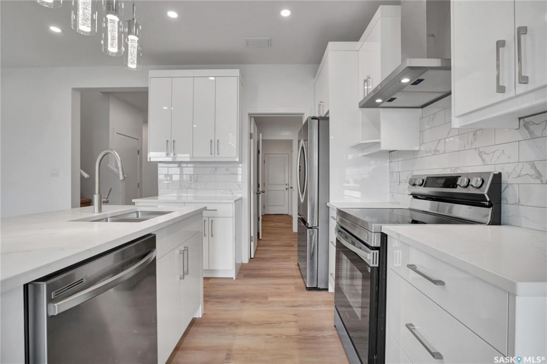Discover modern living in Saskatoon's vibrant Kensington community with this brand-new 1,756 sq. ft. two-storey by Abi Homes. Designed for style and function, it features a bright foyer with oversized windows, a spacious open-concept living and dining area, and a chef-inspired kitchen. Upstairs offers three bedrooms, including a primary suite with two walk-in closets and a spa-like ensuite, plus a bonus room and office. The basement features a separate side entry, offering potential for a legal two-bedroom suite plus an extra bedroom and bathroom for the main residence. Built for comfort and efficiency, it includes triple-pane windows, high-grade insulation, radon mitigation, and a 95% high-efficiency furnace with HRV. An oversized garage and large backyard provide plenty of space for vehicles, storage, and outdoor living. Complete with a sleek modern exterior, this home will be move-in ready in a family-friendly neighbourhood close to parks, schools, and amenities. Early 2026 completion with a New Home Warranty. Developed with pride in quality and service by Abi Homes, a boutique luxury builder with over 15 years experience.