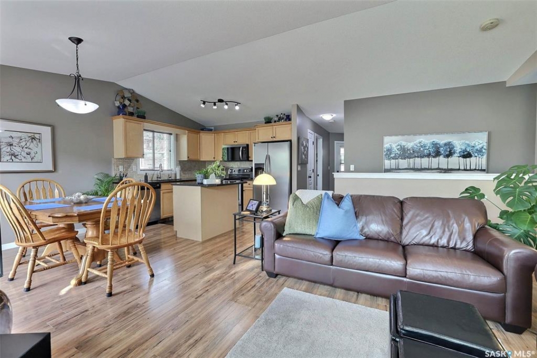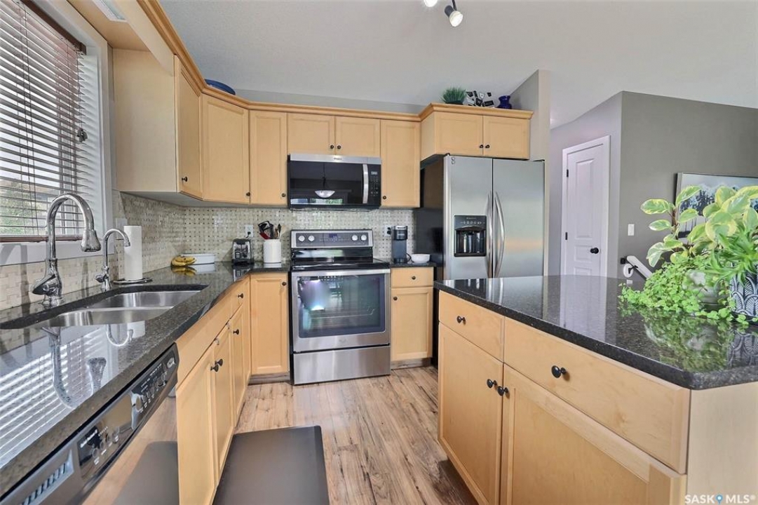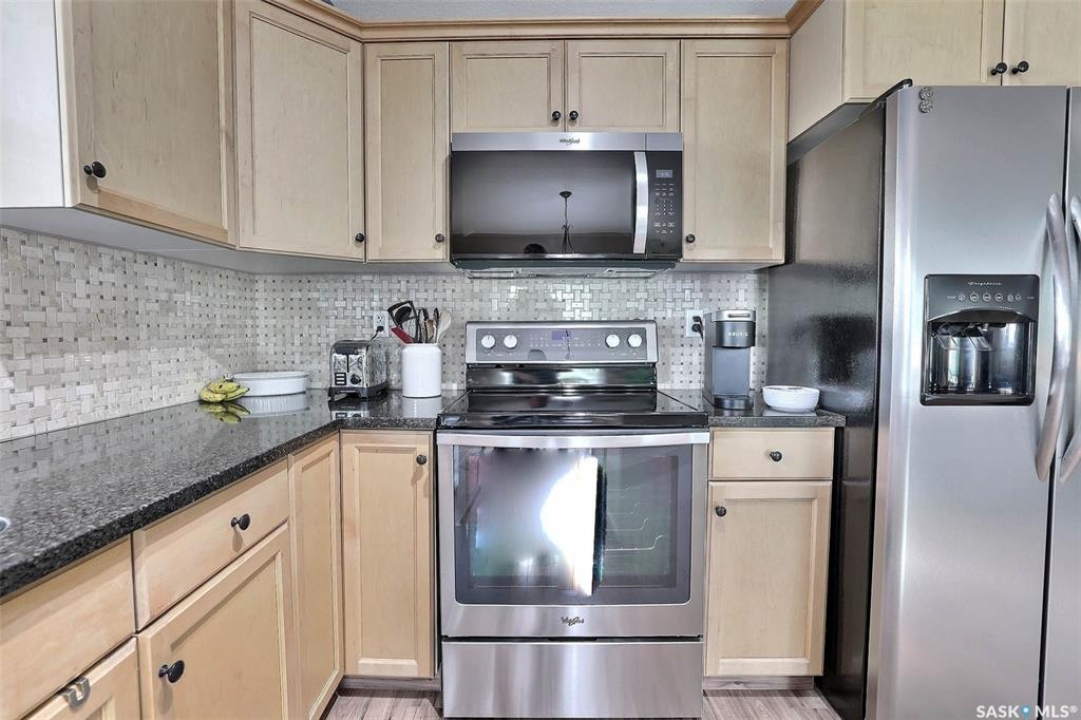 Immaculate condo close to all amenities for sale. Rare to find for sale in this complex. This property has been cared for. On the main you will find an open concept living room and kitchen. There are two bedrooms. The master bedroom comes with a walk in closet and a 3 piece ensuite bathroom. The second bedroom is a good size and the second bathroom is a 4 piece. Bathrooms and the kitchen have quartz countertops. The attached garage is fully insulated and is a good size at 22 ft by 22 ft ... comes with hot and cold water to the garage. The basement has a large den, another bathroom and a large recreation room. Appliances and window treatments are included. Truly a gem to show.