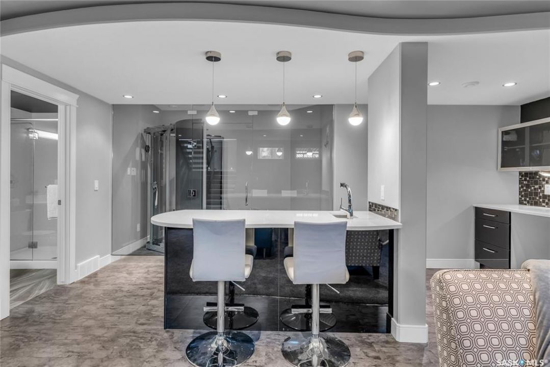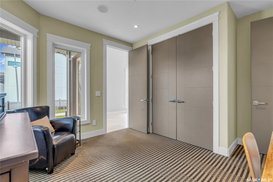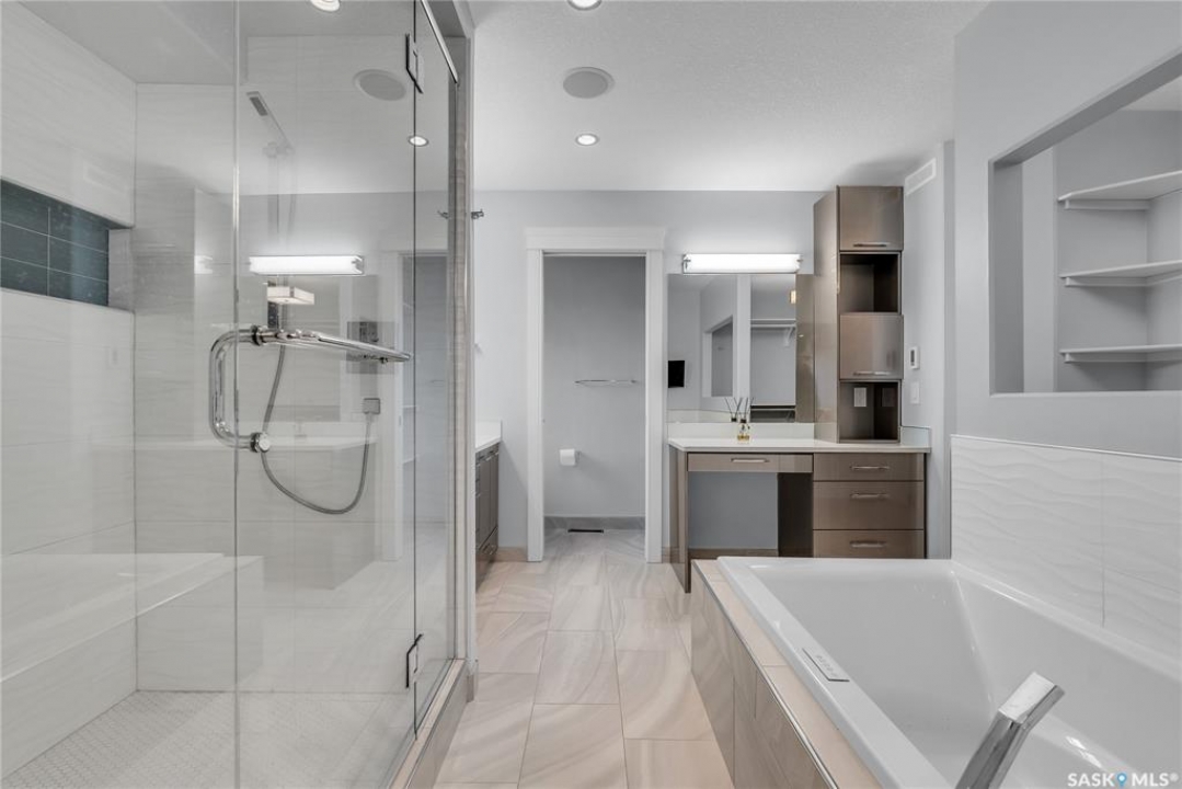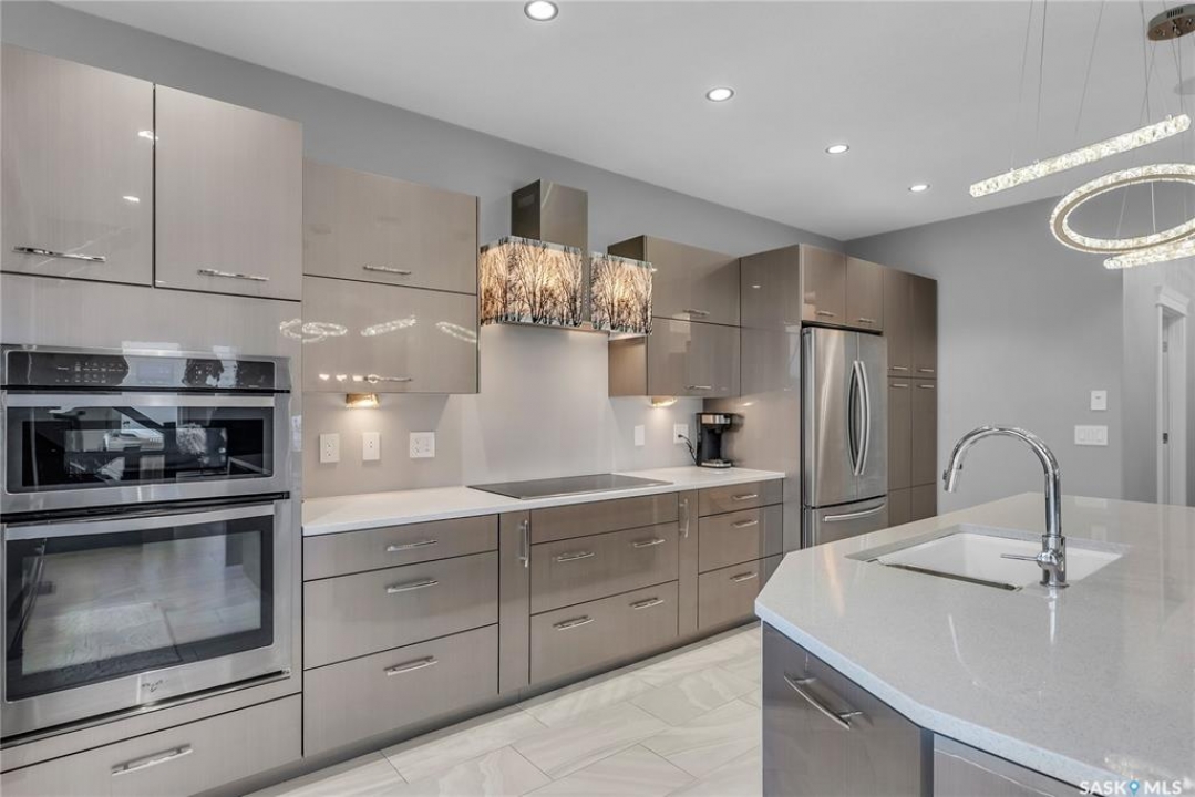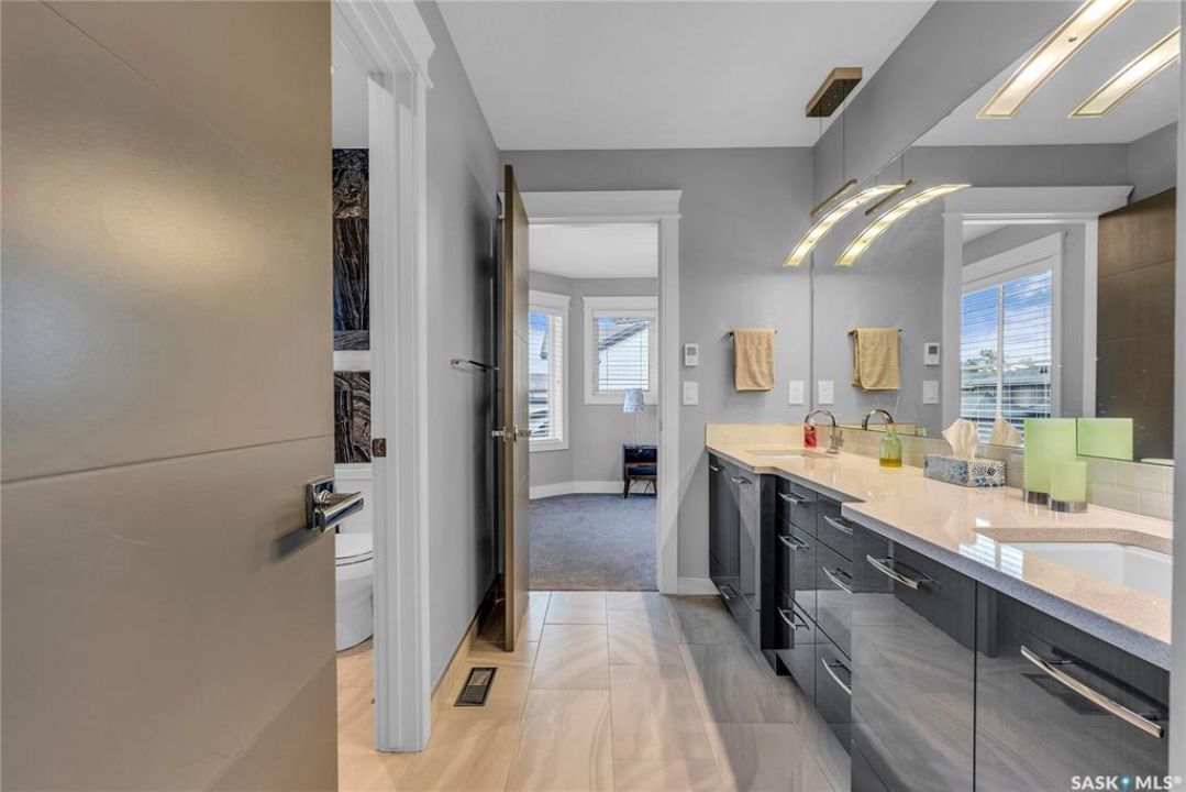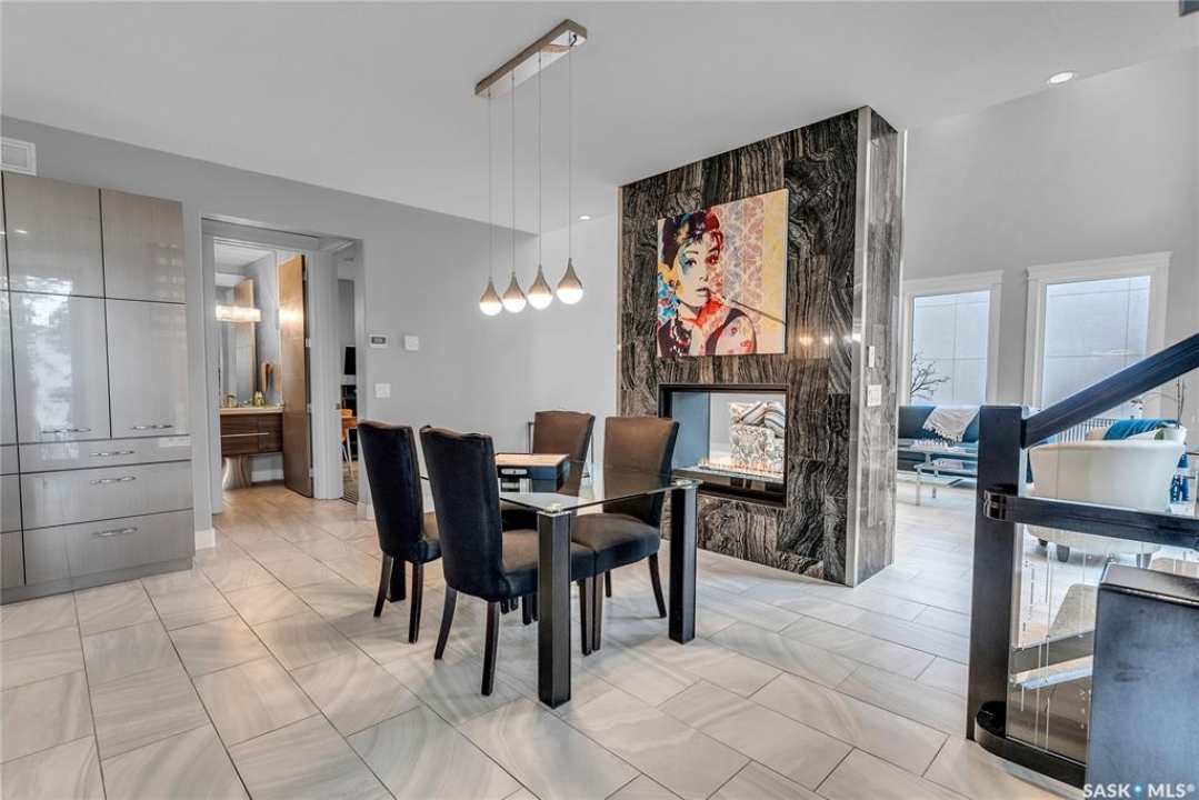 Welcome to a truly custom Evergreen masterpiece, backing green space in one of the neighbourhood's most desirable crescents. Highlights include a $30,000 designer lighting package featuring a 48” crystal statement fixture, an excessive window package that allows for substantial natural light, heated floors throughout all tile areas in addition to in-floor heat in the basement and triple car garage. Central air and central vac, solid core doors, and an architectural showpiece: two levels of see-through fireplaces wrapped in marble, dividing dining and living with style. The 3-car heated garage offers epoxy floors and upgraded garage doors, while the home itself is protected by a $50k Basement Systems waterproofing upgrade with triple sump pumps and backup. Outdoor living is maximized with a composite deck, partially covered with glass railing, stamped concrete patio, hot tub electrical rough-in, gas BBQ hookup, and an upper balcony overlooking the treed green space and walking paths. Inside, enjoy soaring 18-foot ceilings, a gourmet kitchen with extensive cabinetry and waterfall quartz tops, beautiful open stairs with designer glass railing, and dual laundry rooms for convenience. With four bedrooms and four bathrooms, the layout is both functional and luxurious. The primary suite is a retreat with a private balcony, spa ensuite with an air-jet tub, five-sprayer tiled shower, built-in vanity, and custom walk-in closet. Upstairs, two bedrooms share a Jack-and-Jill bath with a heated towel bar, plus a sitting area with a fireplace. The basement offers a tiled 80,000 BTU fireplace, wet bar, versatile gym space that doubles as a potential wine room with Vanee system and sprinklers installed, and theatre room rough-ins in both the basement bedroom and family room. This property goes far beyond any spec build, with a real brick exterior, premium finishes, and thoughtful upgrades throughout.