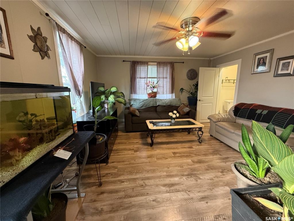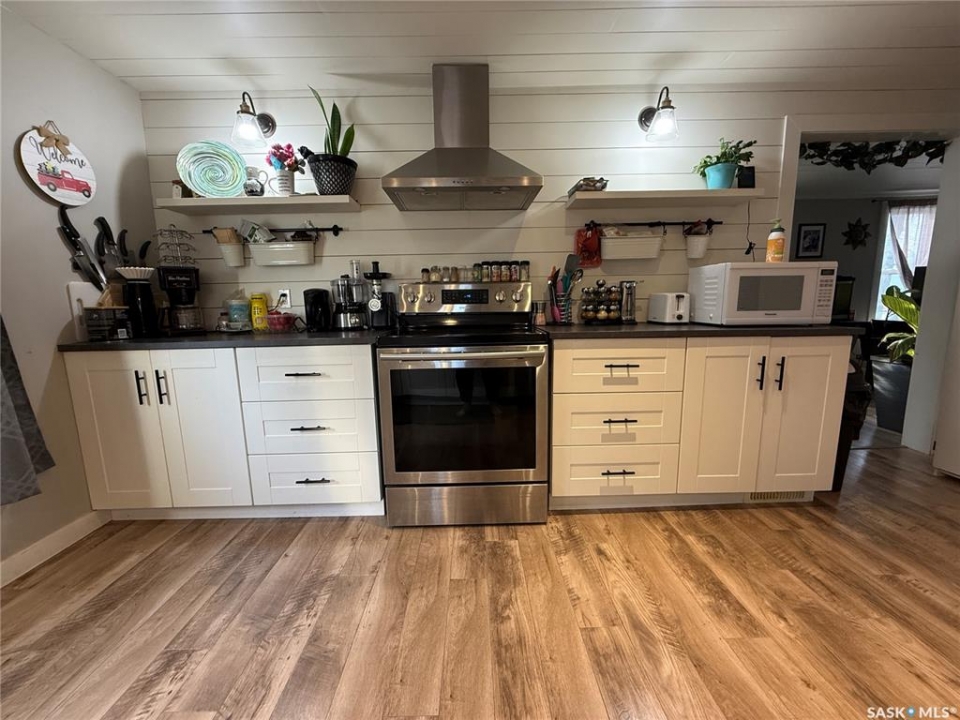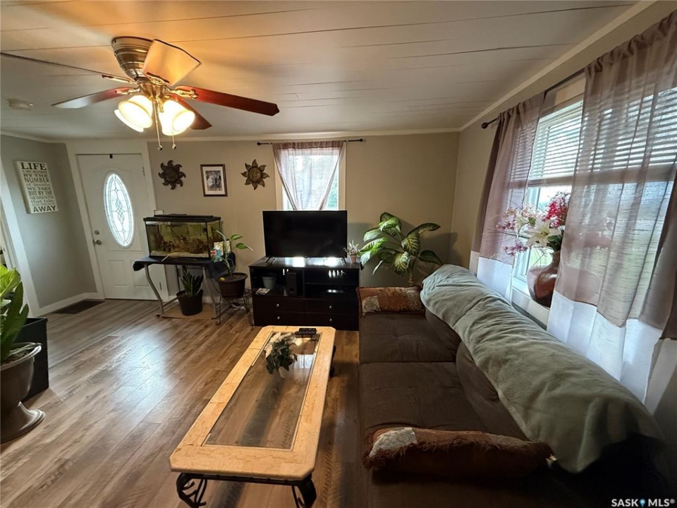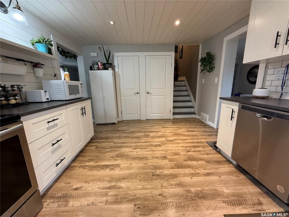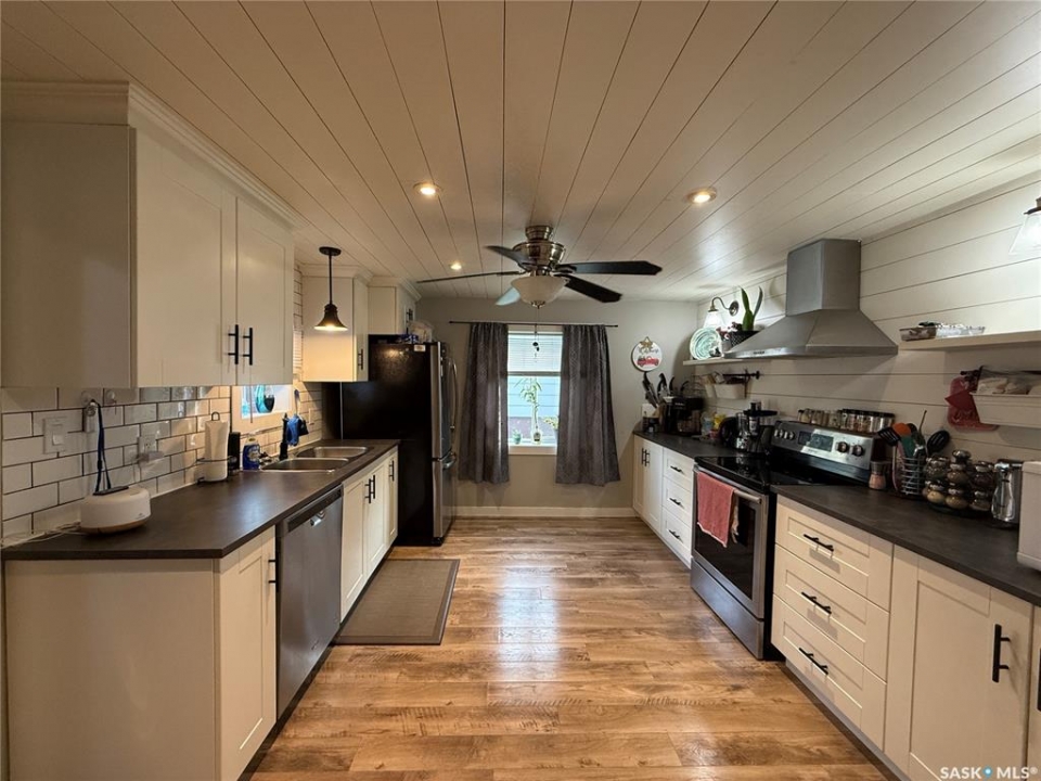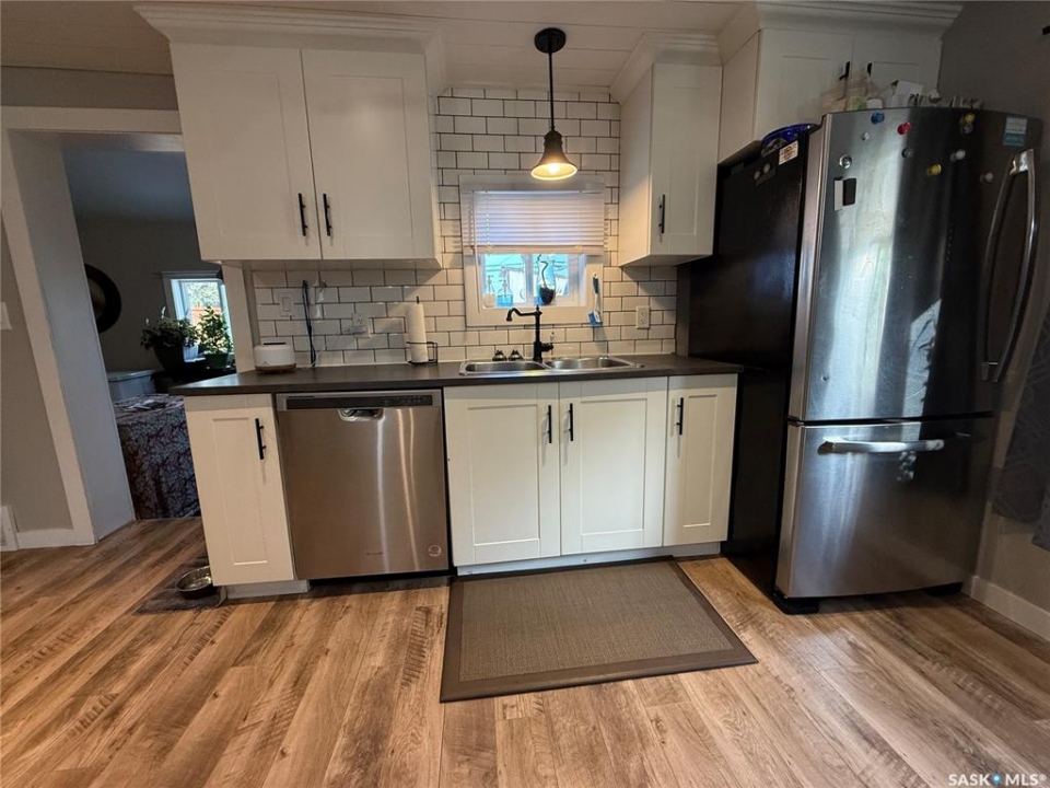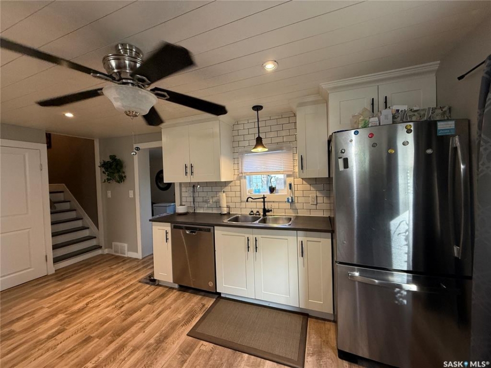 Welcome to 324 9th St. in the City of Humboldt! This beautifully renovated one-and-a-half-story home blends modern style with timeless charm. Step inside to a spacious mudroom with a laundry area, complete with a recently purchased washing machine. The kitchen stands out with crisp white cabinetry, stainless steel appliances, and a clean, sophisticated design. Throughout the home, updated laminate flooring, fresh paint, and newly installed ceiling fans create a bright and inviting atmosphere. The main floor offers a versatile, smaller bedroom—ideal for a home office or guest room (no closet)—a spacious living room perfect for relaxing or entertaining, and a stylish 4-piece bathroom. Upstairs, you'll find two bedrooms plus a den, with the primary bedroom featuring a walk-in closet. The second-floor bathroom has been beautifully updated with dual sinks and modern finishes, creating a spa-like retreat. Outside, the fully fenced backyard is complete with a newer shed, green space, crushed rock, a fire pit area, and plenty of parking space behind the fence—perfect for vehicles or recreational toys. Located just one block from Humboldt's main street, this home offers quick access to local shops, services, and amenities. With updates inside and out, this affordable home is move-in ready and waiting for its next owner. Don't miss out!