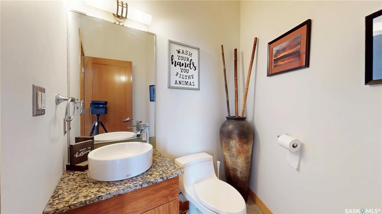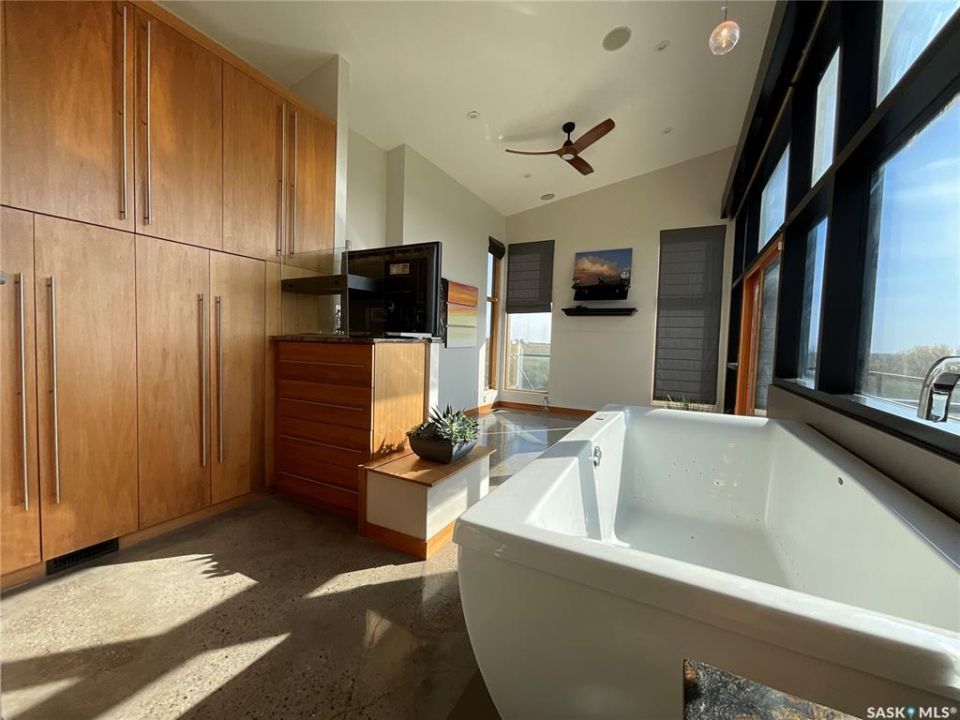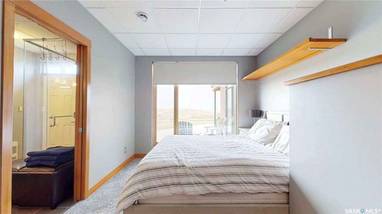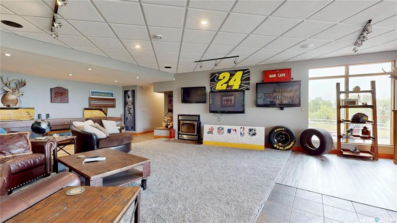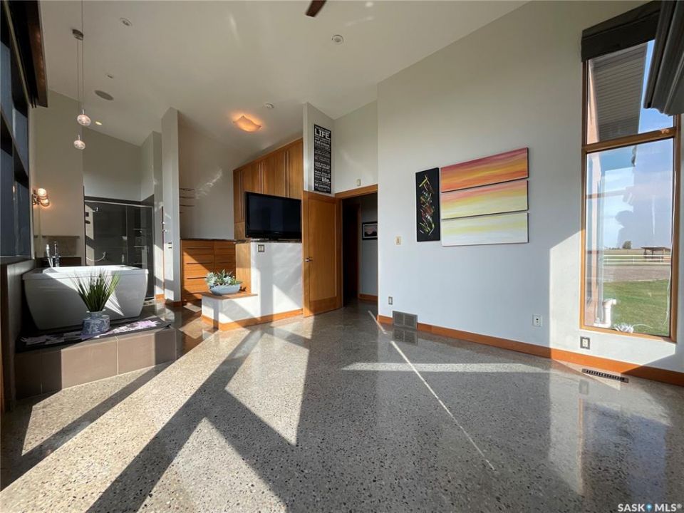 Experience 40 Apollo Drive in the Acreages at Minerva Ridge near Lumsden. From the powered gate and lit lane, this 5-bedroom, 4-bath home offers 2,200 sq. ft. on the main plus a full walkout level, including a private entrance suite for extended family or a caregiver. Floor-to-ceiling curtain wall windows showcase the Wascana and Qu'Appelle valleys, filling the home with light. Built for comfort and efficiency, the home features zoned in-floor hydronic heating, high-efficiency boiler, gas furnace with A/C backup, spray foam insulation, EIFS stucco, triple-pane argon windows, and a 12.6 kW solar system powering both house and barn—keeping costs near net zero. The kitchen includes a built-in gas cooktop, double wall oven, drawer microwave, fridge, dishwasher, and a butler's pantry with upright freezer and extra fridge. A mudroom with built-ins sits just off the garage. Technology upgrades include RA2 automation for blinds, lights, climate, and locks, whole-home audio, five video screens, Ring security, an 8-camera CCTV system, and permanent holiday lights. The lower level adds a wet bar, games area, and gym with overhead door for fresh air workouts. Outside, enjoy a covered patio with built-in BBQ, 8-person hot tub, and heater. A heated 1,080 sq. ft. garage and 35x70 insulated barn/shop provide storage, stalls, tack room, hay loft, and heated workshop. Equine features include a 100x180 LED-lit riding arena, two fenced pastures with solar fencing, and automatic water systems. Extras include a reinforced secure room, 200-amp service, water softener, and custom cold storage. Lumsden's schools and amenities are minutes away, with Regina only a 15-minute drive. Purchasers also have first right of refusal on the adjoining 3-acre parcel. https://youtu.be/mPkNdWGtmeE