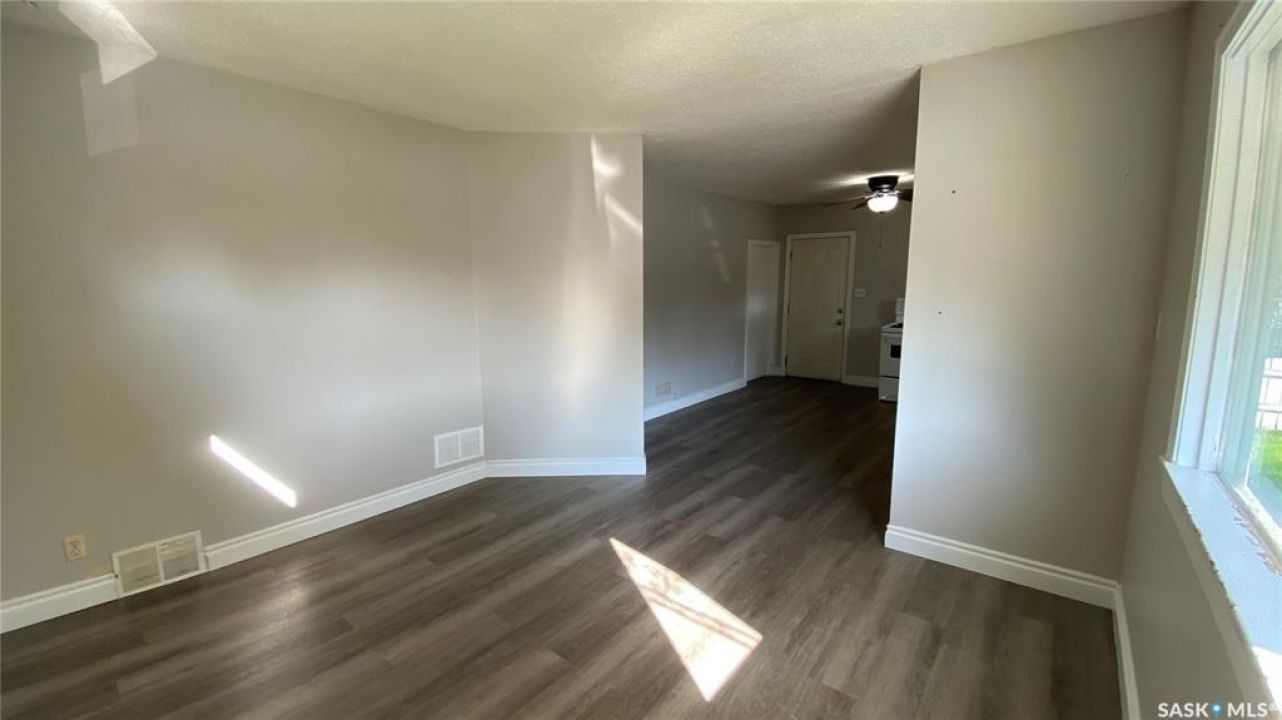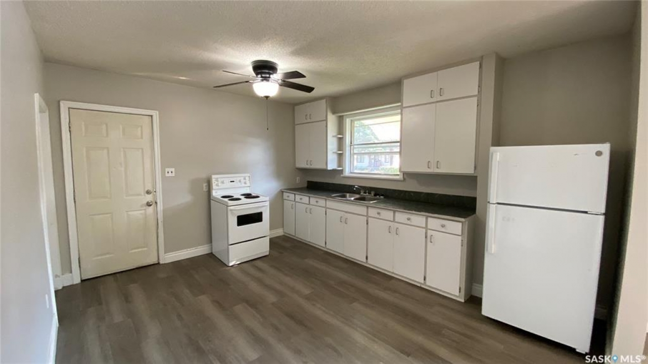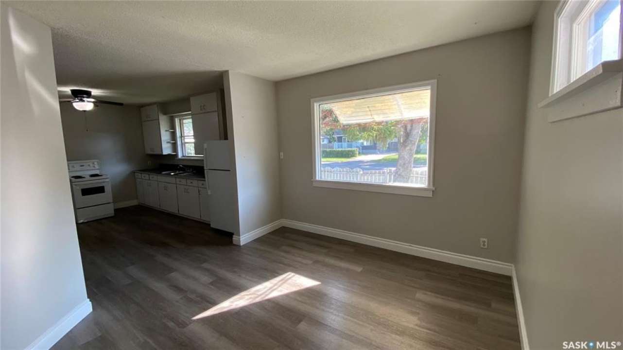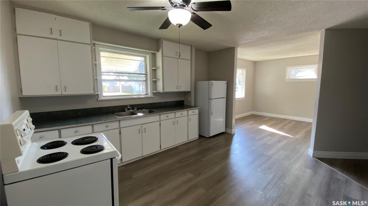 This 2 bedroom, 1 bathroom bungalow is a cozy and practical choice for first-time buyers, downsizers, or investors. The main level features easy-care laminate flooring throughout, creating a clean and cohesive flow from room to room. The kitchen and living areas offer comfortable everyday living, while two bedrooms and a full bathroom complete the layout. Outside, you'll appreciate the convenience of a one-car detached garage, along with a partially fenced yard that provides both open space and privacy. Existing appliances and shed are included. A solid property in a quiet location, ready for your personal touch.