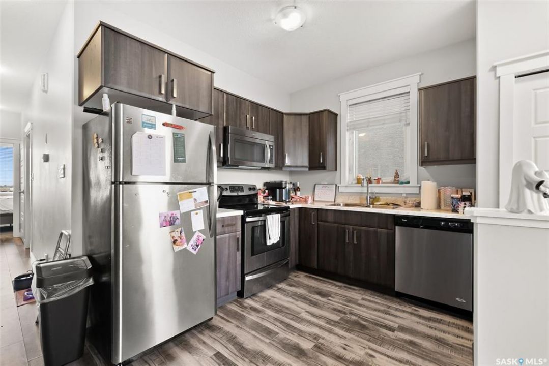 Located in the sought-after Skyview neighbourhood, this property offers a smart way to live comfortably while having tenants pay down the mortgage or lease the entire building out to generate cashflow. The main floor features a bright open layout with a well-planned kitchen finished in grey cabinetry and has stainless-steel appliances. Two bedrooms, a four-piece bathroom and an in-suite laundry closet complete this level. Upstairs is a fully regulated two-bedroom suite with its own entrance and a nearly identical floor plan. One bedroom includes a walk-in closet and the kitchen opens onto a covered private balcony—an inviting space for morning coffee or evening relaxation. The basement provides even more versatility with a rec room, wet bar, two additional bedrooms, a and a full four-piece bathroom. Both the main and second-floor suites have separate utilities for gas, power and water, as well as individual furnaces, water heaters and central air. Designated parking stalls are located at the rear of the property. Two newer water heaters were installed. Whether you're looking for a comfortable home with income potential or a long-term investment to cashflow, this property is a rare on market opportunity!