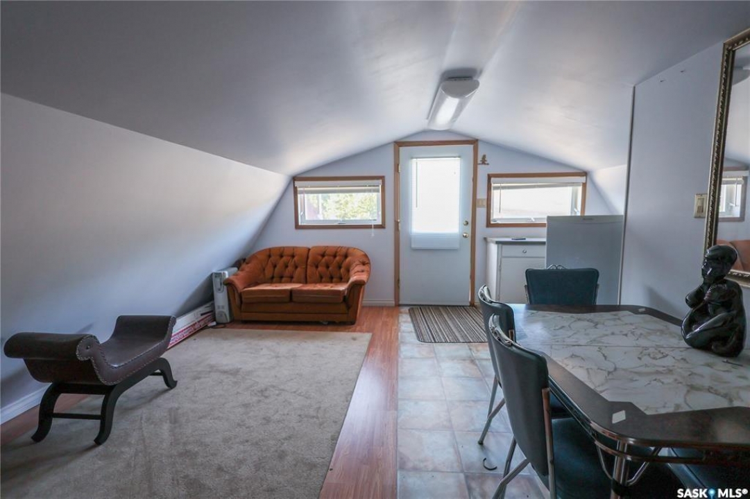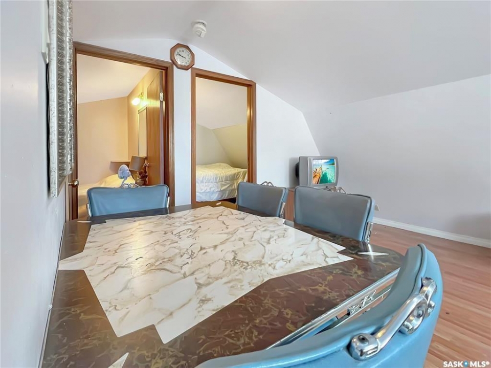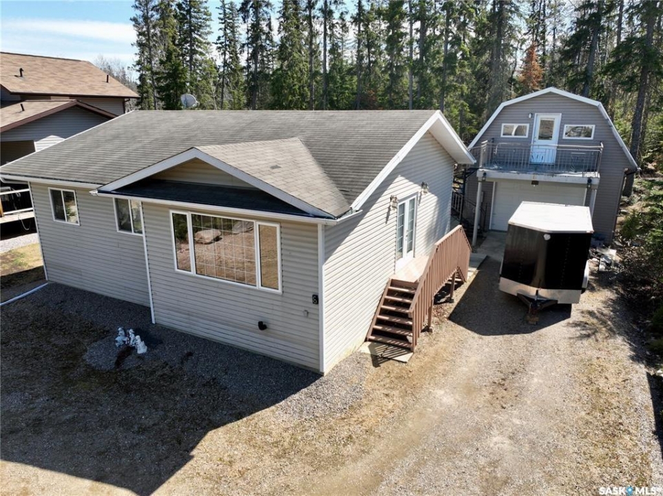 Fall Opportiunities — and wait until you see the bonus loft above the garage! The home itself showcases 1052sqft, 3bedroom, 1bath, laundry with detached double garage located in Northview Subdivision. What make this a true GEM is the bonus 572sqft 2bedroom loft over the garage, with kitchenette and 4pc bath, large front deck, and heat source, perfect for additional family or airbnb option. Additional highlights include a bright, open layout with vaulted ceilings, a dedicated laundry room, tons of cupboards, pantry, island, a water holding tank, a 1,000-gallon septic tank, and an oversized 60' x 115' lot. The low-maintenance yard features a gravel driveway, ample parking, a firepit area, and a storage shed. People love this neighbourhood for the combination quietness and proximity to the golf course. Come check it out Today!...This can be #yourhappyplace