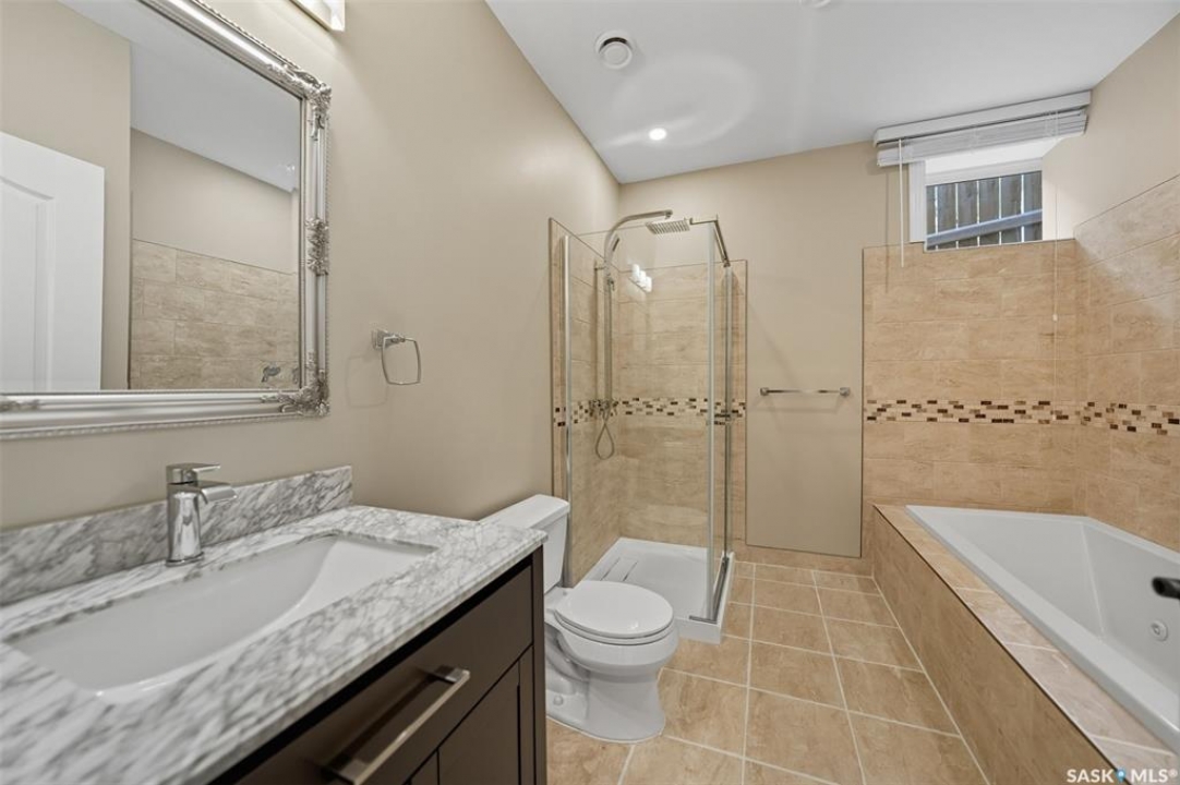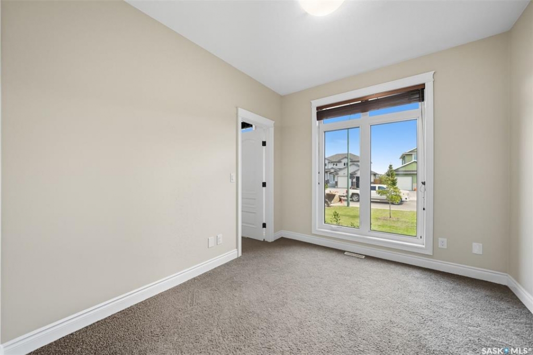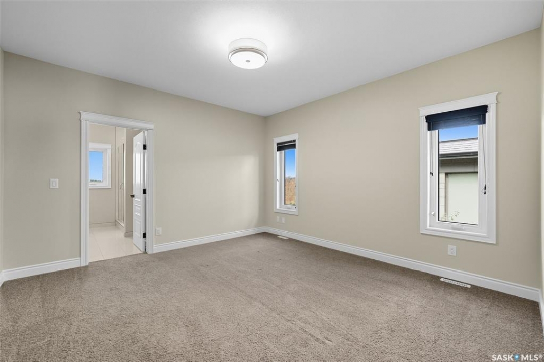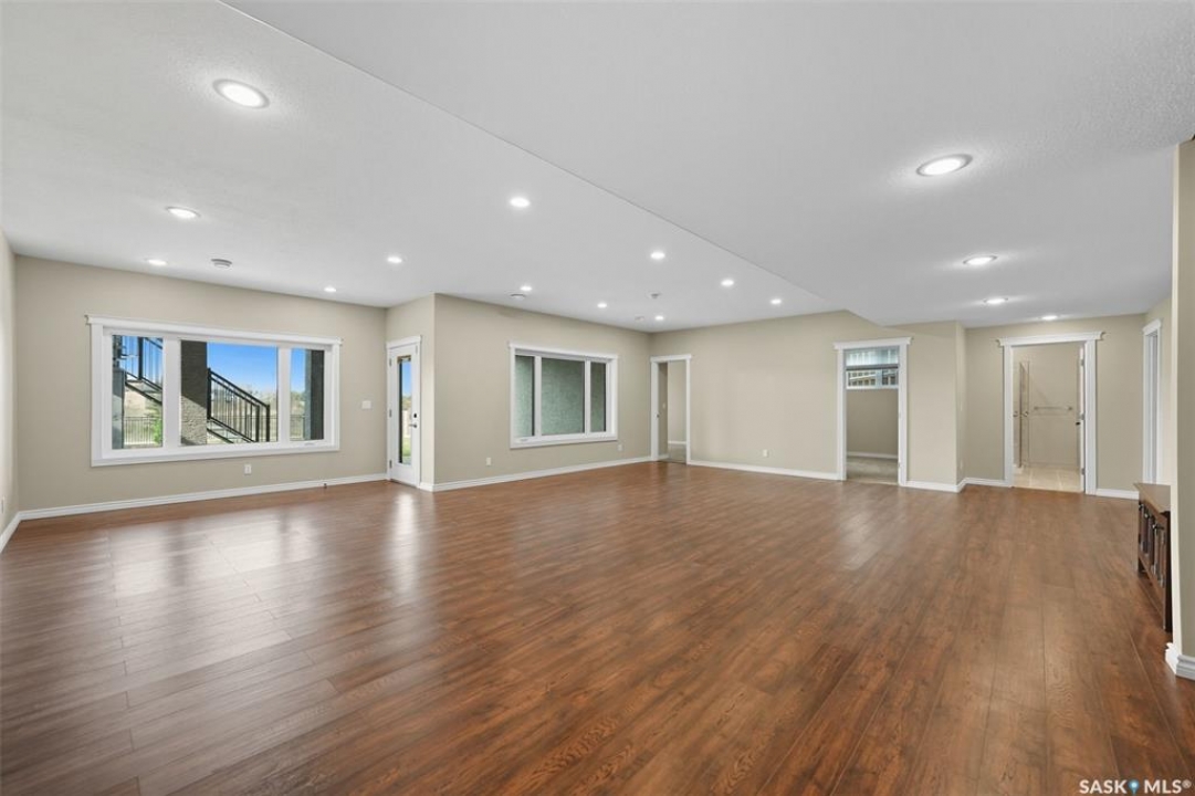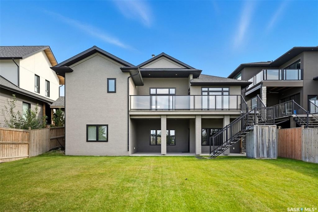 Welcome to 714 Ledingham Place, a rare find in a fantastic cul-de-sac location backing onto Hyde Park with breathtaking water views. Situated on a massive 9,559 sq. ft. lot with a sunny southwest-facing backyard, this D&S–built walkout bungalow offers over 3,600 sq. ft. of luxurious living space with top-quality finishes inside and out. The striking stone and stucco exterior, oversized driveway accommodating up to five vehicles, and impressive curb appeal set the tone. Inside, the main floor boasts soaring 12-ft ceilings, a spacious foyer with tile flooring, open-concept living with a tiled feature wall and gas fireplace, and a chef's dream kitchen with abundant maple cabinetry, granite countertops, tiled backsplash, corner pantry, and a generous dining area overlooking the park and pond. Hardwood flooring flows throughout, complementing three large bedrooms, including a primary suite with walk-in closet and spa-like ensuite featuring dual sinks and a tiled shower. Main floor laundry adds convenience. The bright walkout basement expands the living space with a large games room, family room, office, two additional bedrooms with walk-in closets, a 5-piece bath with jetted tub, and durable laminate flooring. Outdoor living shines with a composite deck, glass railing, and stairs leading to the park-like yard with underground sprinklers on a timer. Additional upgrades include triple-pane windows, central vac, HRV, new central A/C (2025), dishwasher (2023), and fridge (2021). Close to schools, shopping, and all amenities, this home truly shows 10/10.