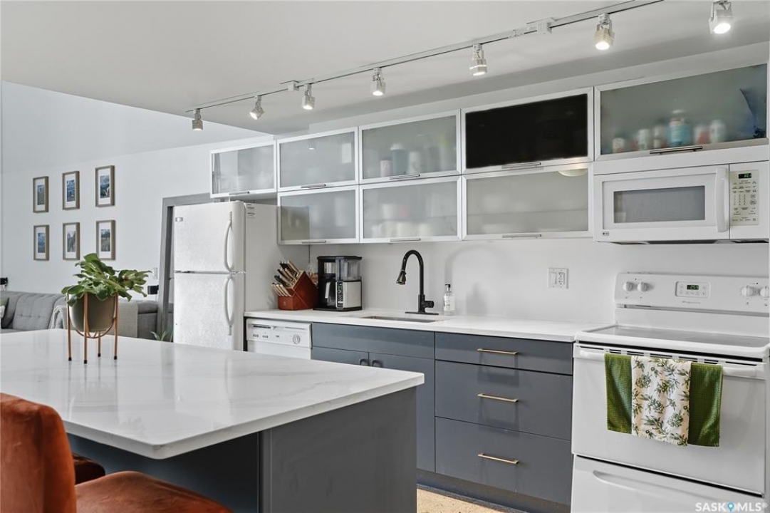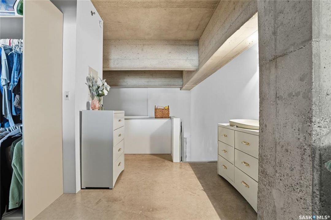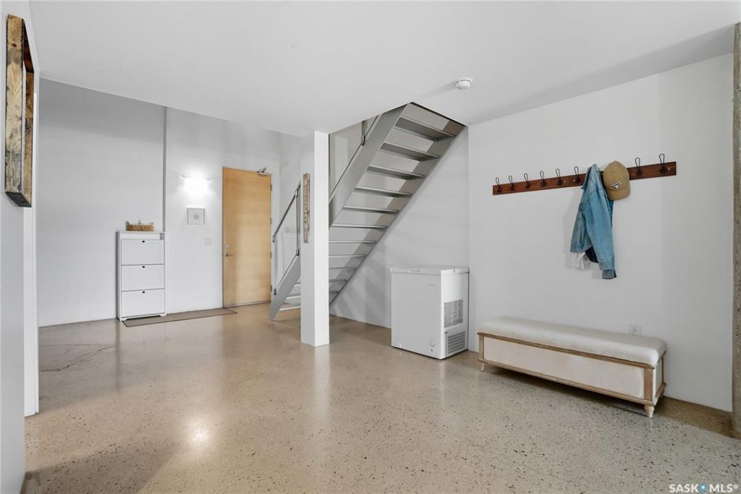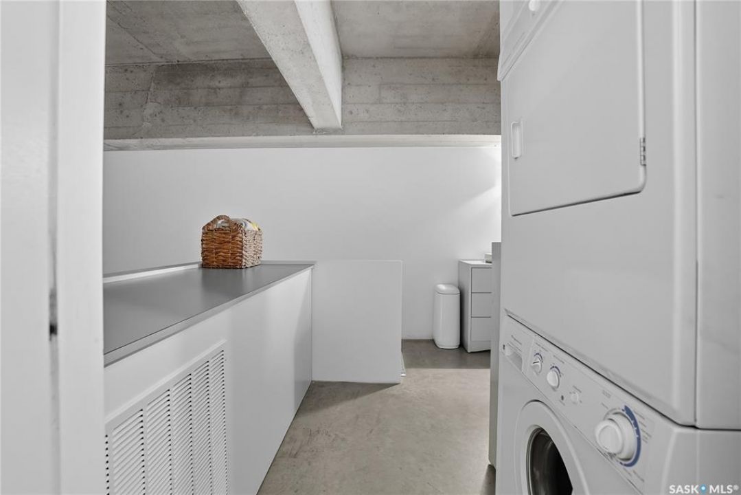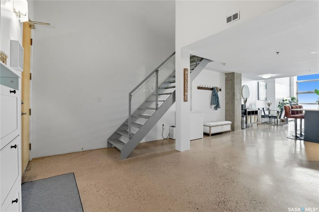 Welcome to this stunning East-facing loft located in the heart of Saskatoon's Central Business District. With 1,100 square feet of free-flowing living space, this 1-bedroom, 1.5-bath unit combines industrial charm with modern finishes, offering the perfect balance of comfort, style, and urban convenience. Soaring ceilings and a large window flood the space with natural light, enhancing the airy, open-concept layout. The kitchen has been beautifully upgraded with new quartz countertops and an oversized island—ideal for both entertaining and everyday living. The spacious living and dining areas flow effortlessly, creating a versatile space for relaxing or hosting. The large bedroom features a 4-piece ensuite, while a separate half-bath adds convenience for guests. Located directly across from the buildings fitness centre and rooftop terrace access, this unit offers unmatched access to some of the building's best amenities. The building itself is a standout in downtown living, with a modern lobby, rooftop terrace complete with a pergola-covered BBQ area, fitness centre, elevator, and heated underground parking. Live just steps from some of Saskatoon's best restaurants, coffee shops, shopping, nightlife, and the riverbank. Whether you're a professional looking for a stylish downtown home or an investor seeking a high-demand location, this loft offers exceptional value and a lifestyle that's hard to beat.