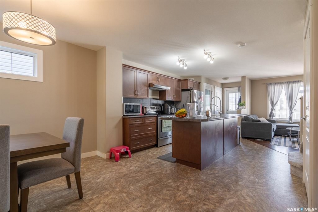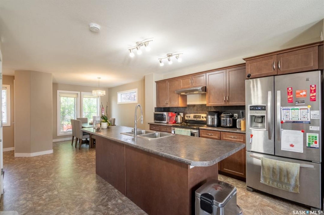 Looking for a single-family home with a double garage and a finished basement in the Greens on Gardiner? Welcome to 3669 Green Bank Rd. This home boasts over 1300 square feet of functional living space, a double detached garage, and complete fencing and landscaping. Inside, a practical floor plan maximizes space. The main floor features a west-facing living room and an east-facing dining room flanking the open-concept kitchen. The kitchen includes stainless steel appliances, ample cabinetry, and a large island, all flooded with light from large windows. Upstairs, three good-size bedrooms feature newer carpet (2023), including a master with a 3-piece en suite. The finished basement offers a recreation room, space for a future kitchenette (rough-ins in place), and a laundry/mechanical room. Outside, enjoy a double garage, a spacious deck, a patio, and a newer lawn (redone in 2022).