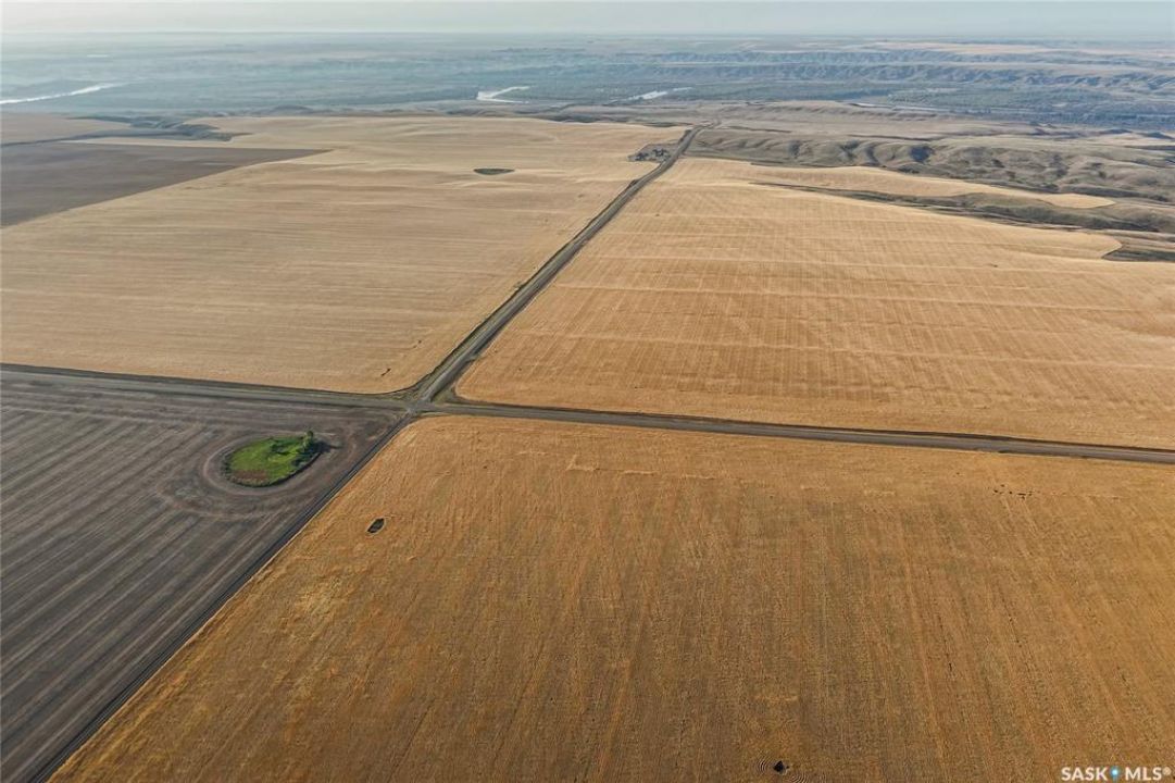 This package includes 17 quarters of grain land along the SK-AB border. There are 14 quarters located in Saskatchewan and 3 in Alberta. We have broken this land into two listings due to provincial regulations but both listings must sell together. MLS # SK019001 (listed at $7,850,000) must be sold together with MLS # A2254817 (listed at $850,000). Many of these fields are large multi quarter fields, making for ease of modern farming practices. The land has strong soil classifications and strong average assessed value. The soil is a mix of heavy clay, clay and clay loam. The SAMA stone rating is mostly “slight” or “none to few” and the SAMA topography rating is mostly “level to nearly level” and “gentle slopes”. Yard site in Saskatchewan with two Alcafab trailers and 40x80 shop. There is good all-season road access to the land.