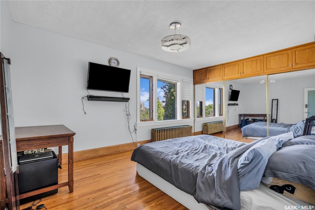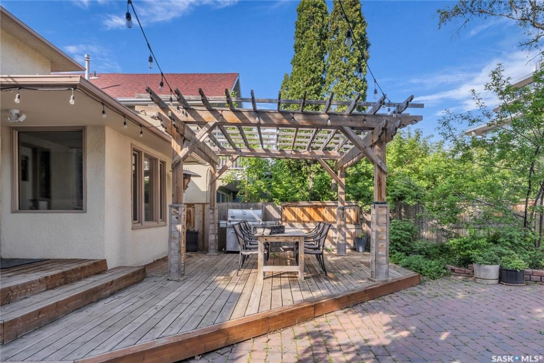 626 Saskatchewan Crescent East presents a unique opportunity at an attractive price point within a coveted neighborhood. The property boasts a spacious 37.2 x 140' lot and is conveniently located within walking distance to the popular Broadway attractions and Saskatoon amenities. The highlight of this turn-of-the-century home is its three bedrooms on the upper level, complemented by a charming second-floor balcony overlooking the beautifully landscaped zero-maintenance rear yard. The outdoor space features a patio stone area, pergola, and a double detached heated garage equipped with an EV charger. Additionally, a vaulted ceiling studio attached to the garage offers a versatile 50-foot space with in-floor heating. Inside the home, you'll find a well-appointed main floor featuring a functional kitchen with a gas range and exterior vented range hood, a spacious dining room, a comfortable living room with a gas fireplace, and a cozy library nook. The main floor is completed by a convenient three-piece bathroom. The basement level adds to the home's appeal with a large family room, a luxurious steam shower bathroom, a laundry room, and a mechanical room housing a boiler for in-floor heating and radiant heat throughout the house. Notable features include a brand-new hot water tank, superior cabinetry, hardwood floors, natural gas connections for the BBQ and heater, offering a blend of comfort, convenience, and modern amenities to create a welcoming and functional living space.