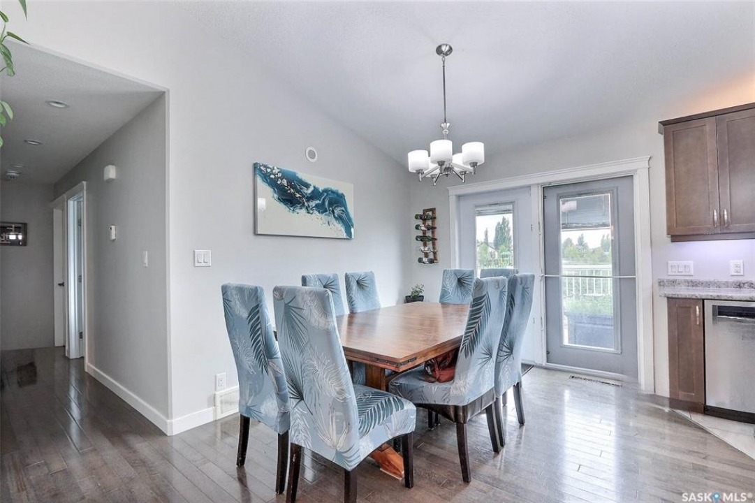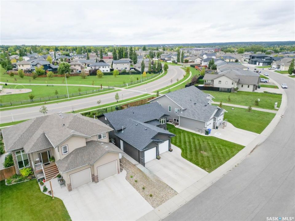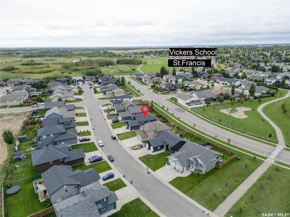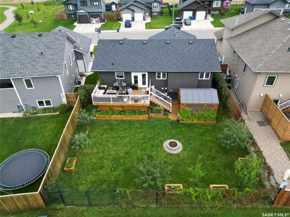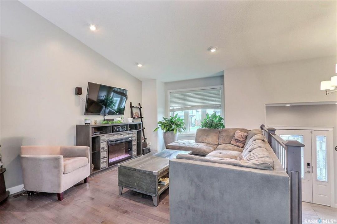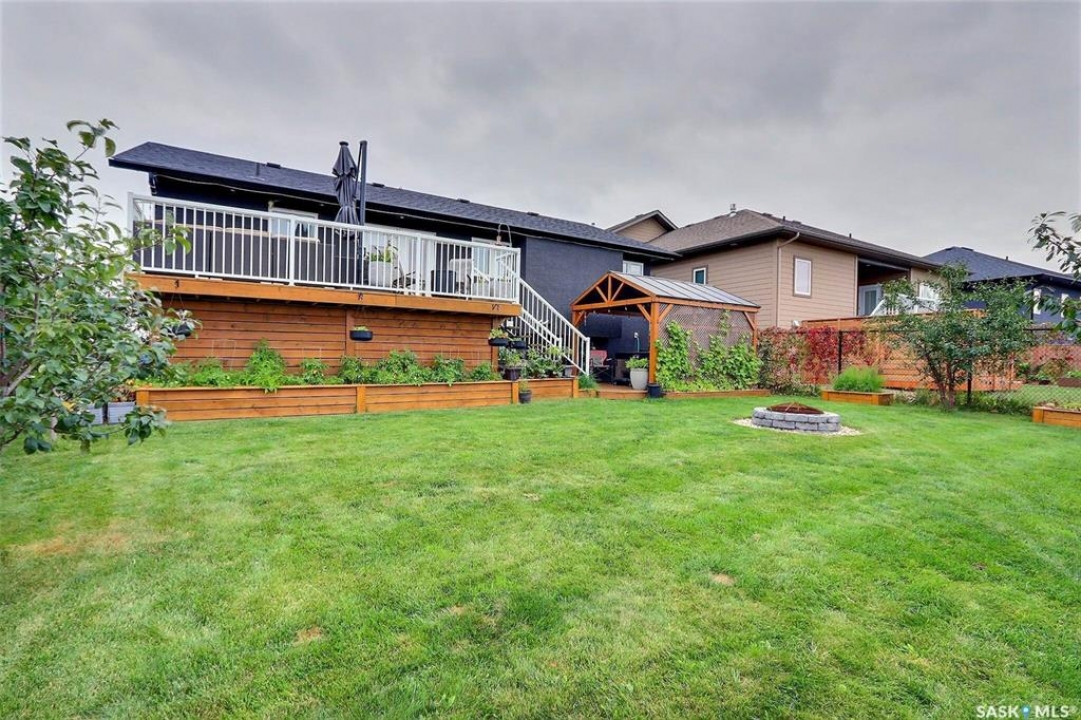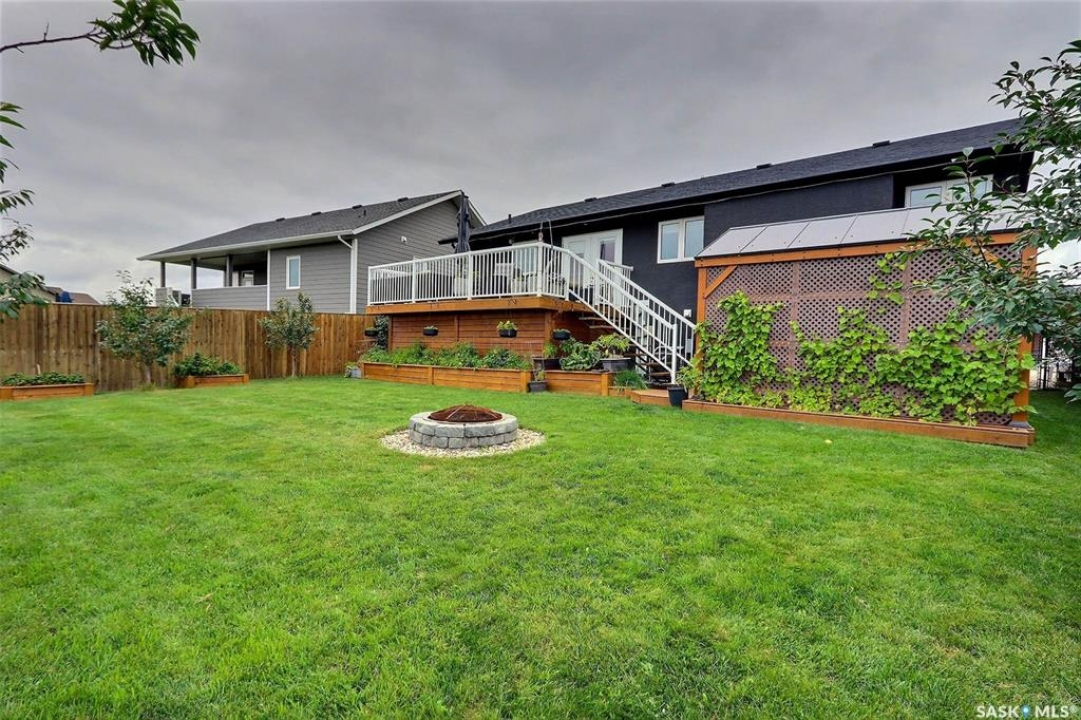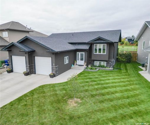 Premium Crescent Acres Location! This spacious 5 bedroom, 3 bathroom bi-level offers 1,270 sq ft of family-friendly living, built in 2014 and just steps from the park. The inviting entrance features a large closet and direct access to the 24' x 24' heated double garage. The open-concept main floor boasts vaulted ceilings, a bright living area, and patio doors leading to a two-tiered southwest-facing deck. The kitchen is equipped with dark cabinetry, arborite counters, stainless steel appliances, a corner pantry, and a large island with bar seating. Upstairs you'll find three bedrooms, including a spacious primary suite with ensuite. The fully developed basement is filled with natural light from large windows and offers a massive rec room with natural gas fireplace, two additional bedrooms, and a full bathroom — all with high ceilings. The yard is beautifully landscaped and fully fenced, complete with a gazebo, hot tub, natural gas BBQ hookup, and tiered deck. Located just minutes from St. Francis, Vickers and Holy Cross schools, as well as multiple parks and walking paths, this is the perfect home for a growing family!