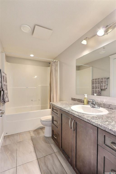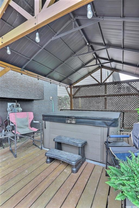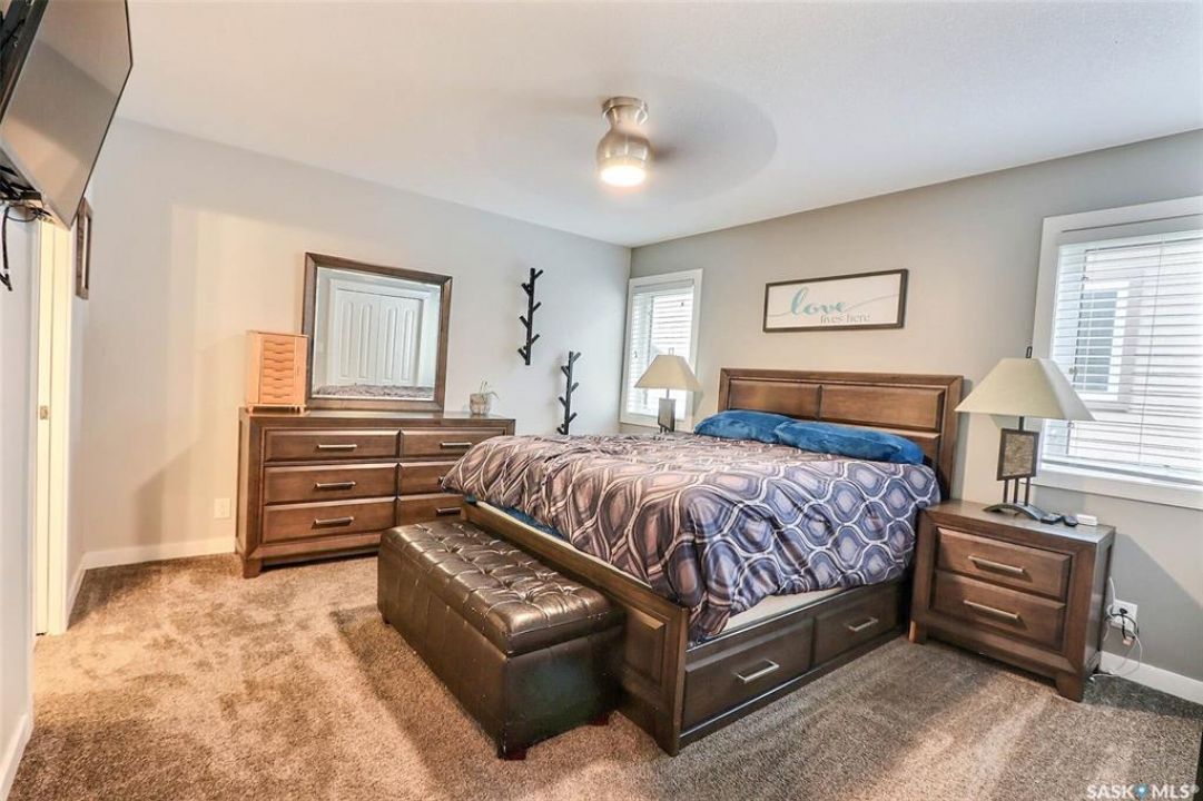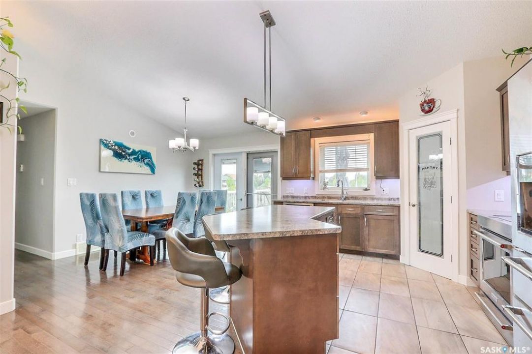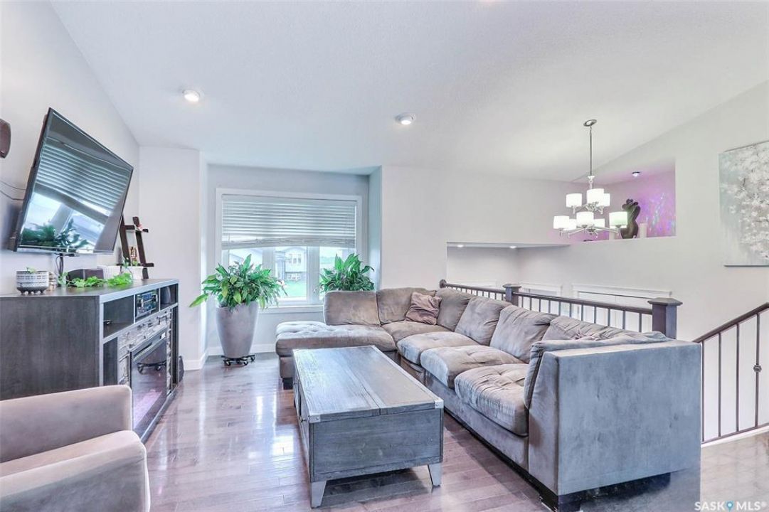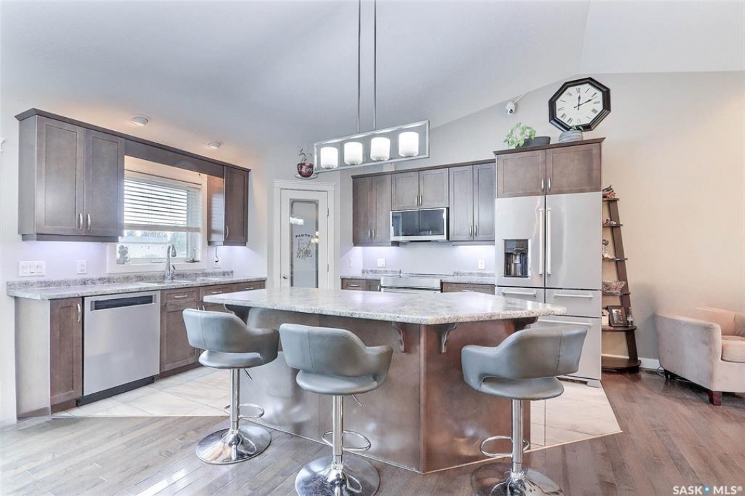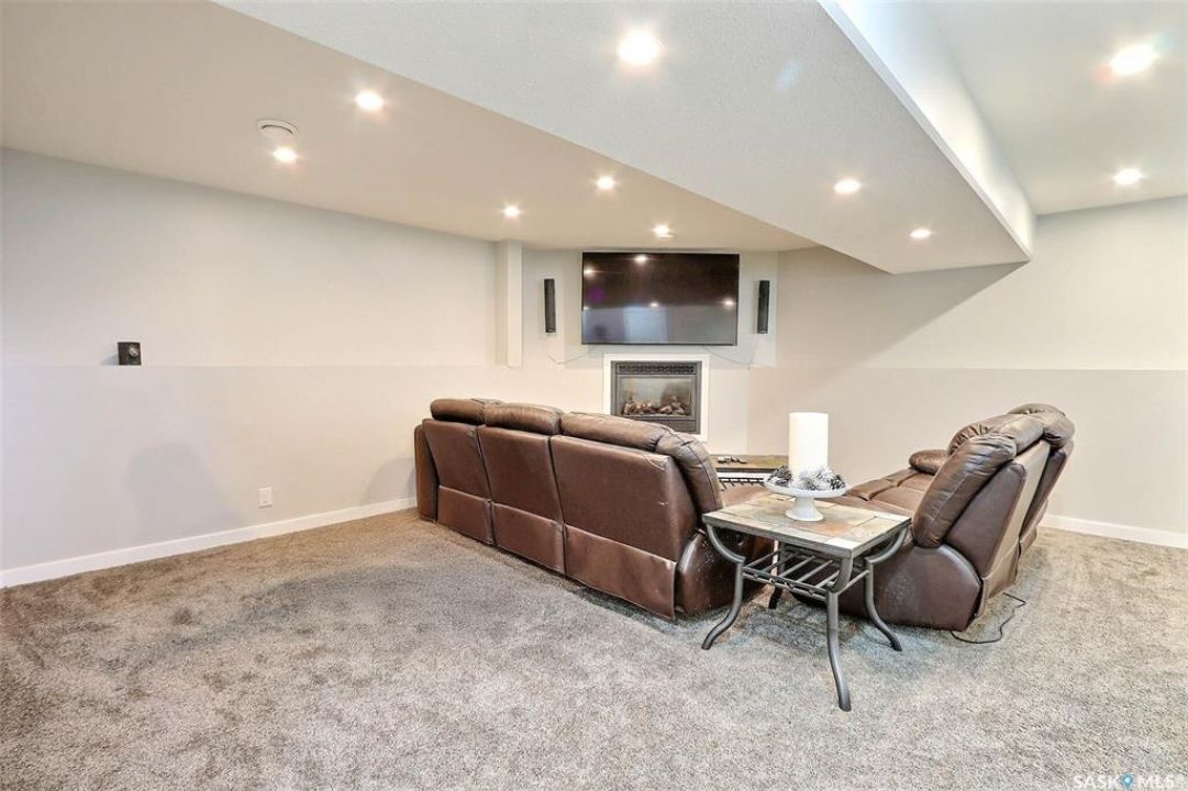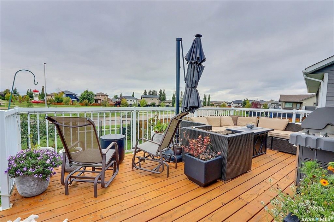 Premium Crescent Acres Location! This spacious 5 bedroom, 3 bathroom bi-level offers 1,270 sq ft of family-friendly living, built in 2014 and just steps from the park. The inviting entrance features a large closet and direct access to the 24' x 24' heated double garage. The open-concept main floor boasts vaulted ceilings, a bright living area, and patio doors leading to a two-tiered southwest-facing deck. The kitchen is equipped with dark cabinetry, arborite counters, stainless steel appliances, a corner pantry, and a large island with bar seating. Upstairs you'll find three bedrooms, including a spacious primary suite with ensuite. The fully developed basement is filled with natural light from large windows and offers a massive rec room with natural gas fireplace, two additional bedrooms, and a full bathroom — all with high ceilings. The yard is beautifully landscaped and fully fenced, complete with a gazebo, hot tub, natural gas BBQ hookup, and tiered deck. Located just minutes from St. Francis, Vickers and Holy Cross schools, as well as multiple parks and walking paths, this is the perfect home for a growing family!