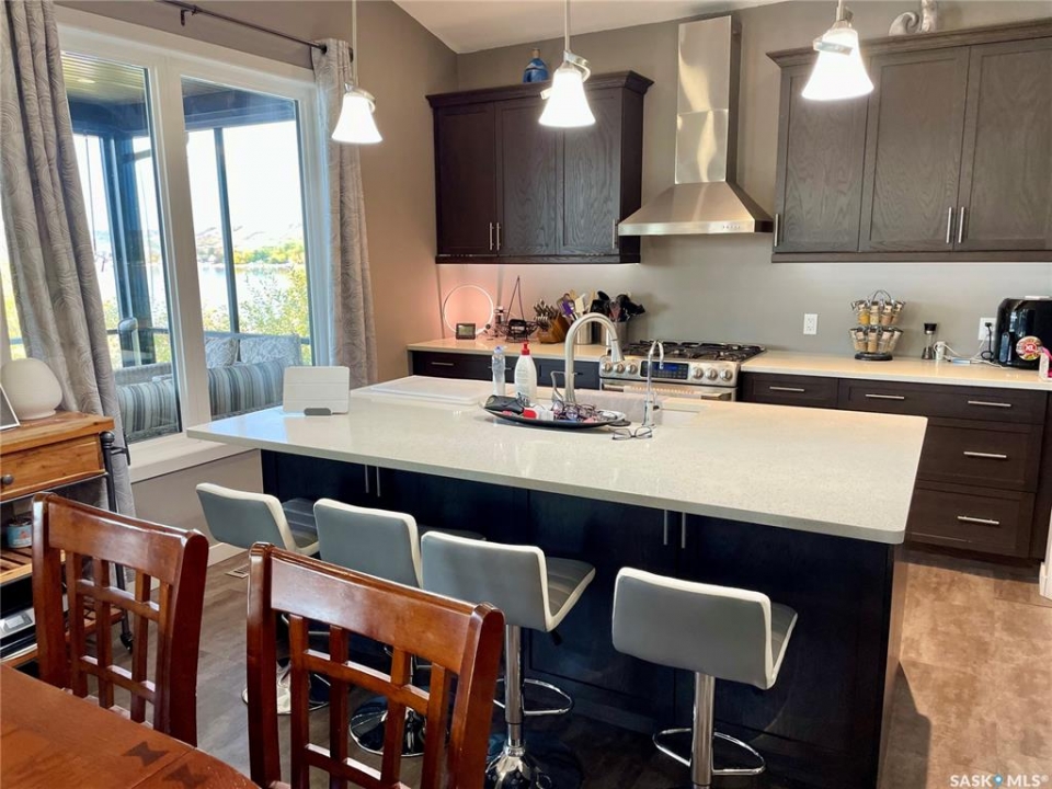 Welcome to 402 Abel Dr. located at Crooked Lake Sk. Don't let this one pass you by, you truly have to view to fully appreciate the layout and pride in ownership. ENJOY lake front living at its best year round with this beautiful walkout bungalow that offers approx. 1,996 sq. f. of total living space, that doesn't even include the huge double attached heated garage that feels more like part of the house then an actual garage (which has a 3 piece bathroom and laundry area). This open concept layout with its large island kitchen has breath taking views of the lake from one end to the other. There is 3 total bedrooms / 3 bathrooms, with the master suite on the walkout level. Outside this home there is numerous places to relax and enjoy the amazing lake views from the screened in sunroom off the main level or the hot tub and sitting area off the walkout level. Seller states the well is approx. 140-150 feet deep and septic tank 1000 gal.