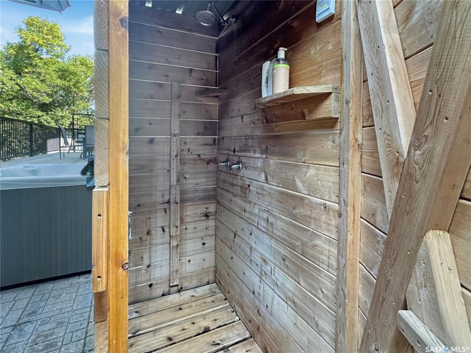 Prime B-Say-Tah Location! Family Home with Huge Heated Garage + Workshop! This beautifully constructed family home is perfectly situated in a prime, private location! With an impressive 24' x 24' heated garage/attached 12' x 24' workshop with 12' ceilings, there's more than enough space for your vehicles, toys, and projects. Add in ample parking and this property is a rare find. Enjoy the outdoors on the wrap-around deck, soak in the hot tub, and rinse off in the outdoor cedar shower—a true oasis of relaxation. Inside, the home was thoughtfully designed with family living in mind. The open-concept main floor features a gorgeous kitchen with plenty of storage and a cozy living room complete with a gas fireplace—perfect for entertaining or quiet nights in. The fully developed basement offers great storage, a utility room, rough-in for a third bathroom, and a fourth bedroom—ideal for guests, teens, or a home office. Upstairs, you'll find three spacious bedrooms, each with generous closets, plus the convenience of upstairs laundry. The family bathroom includes a freestanding tub, walk-in shower, and heated tile floors for that extra touch of luxury. Located just steps from the sport court and main beach, this is the perfect year-round residence or recreational getaway. Call your favorite local agent today—this one won't last!
