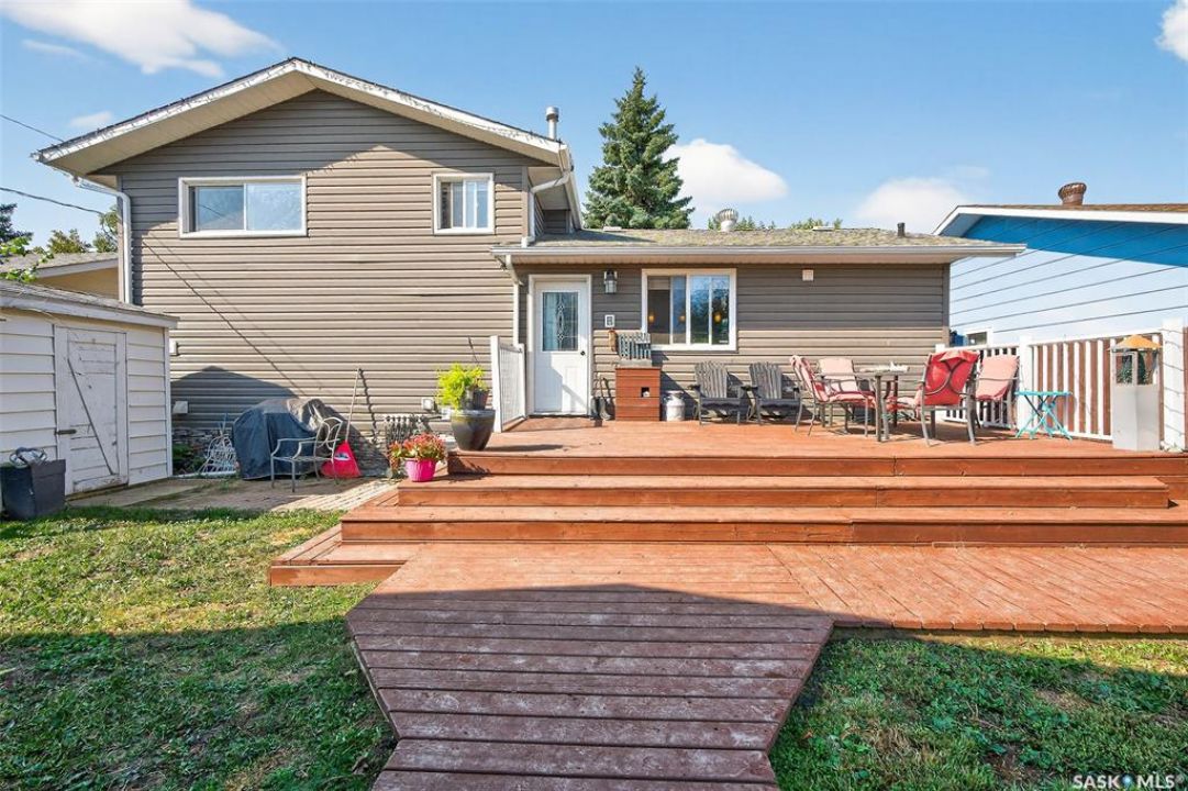 Welcome to this fantastic 4-level split located in one of the desirable Palliser Heights neighborhood! This beautifully upgraded home offers 3 spacious bedrooms, 3 bathrooms, and tons of thoughtful updates throughout. Every level of this home is fully finished, offering functional space for the whole family. The main floor features a stunning kitchen with modern finishes, a warm and inviting living room complete with a cozy gas fireplace, and direct access to the large back deck—perfect for relaxing or entertaining! Upstairs, you'll find three generously sized bedrooms and a huge 4-piece bathroom that includes excellent built-in storage. On the first lower level, large windows allow for tons of natural light in the spacious family room. This level also includes a 3-piece bathroom, a tidy and efficient laundry room, and a cozy office or craft area. The basement level provides even more usable space, including a great storage room, an efficient utility area with access to the crawl space (ideal for all your extra storage needs), and a den with adjoining family room that could easily be converted into a 4th bedroom if needed. This level is completed with a convenient 2-piece bathroom. Outside, enjoy a fully fenced yard with gated trailer parking, a nice-sized storage shed, and a huge deck. The 24'x26' heated double garage and additional off-street parking on the 2-car driveway out front make this home perfect for anyone needing space for vehicles, toys, or a workshop. This is a rare find that truly has it all — space, upgrades, parking, storage, and a great layout in an unbeatable location! Call your REALTOR � today to book a private viewing!