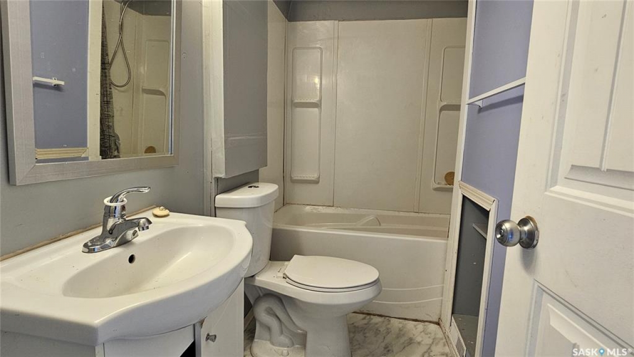 Affordable living in the quiet community of Meacham! This charming 1 � storey home offers 1,080 sq ft with 3 bedrooms plus a den and 3 bathrooms. The main floor features a spacious primary bedroom with hardwood floors, convenient laundry, and two bathrooms for added comfort. Enjoy the bright and open living room complete with a cozy gas fireplace, perfect for family gatherings. The kitchen comes with all appliances included, and upstairs you'll find two additional bedrooms, a den, and another bathroom. Outside, the large partially fenced yard provides plenty of space for kids, pets, or gardening. Meacham is located just south of Highways 5 & 2—only 45 minutes from Saskatoon—offering a safe, family-friendly community with school bus service to Viscount, nearby lakes and potash mines, and the benefit of clean reverse osmosis water.