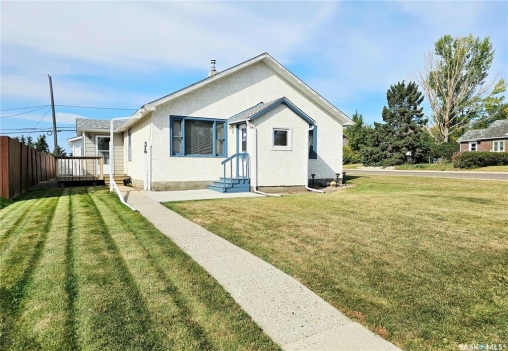 If I were searching for a well maintained starter home OR an investment property with a 384 sq ft garage and main floor laundry for this price, this would be it! Located on a level and mature lot and within steps to Central K-8 School, this 2 bedroom & 1 bathroom bungalow features central air conditioning, a Rain Bird underground sprinkler system and a 16 x 24 insulated garage. The yard is mostly fenced with a huge garden area and is complete with a newer side deck and front patio. Your large, functional kitchen features white cabinetry, a pantry, a built-in dishwasher, along with its fridge & stove. The upright washer & dryer are included as well. The basement is suited for mechanical and storage only. A NEW carbon monoxide detector was installed in August 2025, the shingles were replaced in 2023 and the sewer line was cleaned out in 2021. This property has been family owned for close to 25 years! Please call now and don't miss out on this ideal starter home with affordable property taxes and is available for immediate possession!