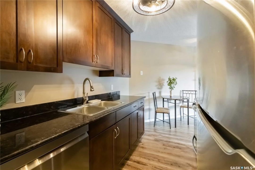 Welcome to Riverstone, located at 2233 St. Henry Ave., a residence where the charm of riverfront living seamlessly blends with everyday convenience. This exceptional two-bedroom, one-bathroom unit, spanning 775 square feet, offers a recently renovated unit that shows pride of ownership throughout. Carpet and kitchen flooring have been upgraded, and appliances all new within the past 2 years. Granite counters, floating wall shelves, and beautifully upgraded light fixtures throughout. Riverstone offers a remarkable view of the South Saskatchewan River from the front entrance and provides unparalleled access to Saskatoon's finest outdoor recreational areas. The new owner will find themselves just a short distance from Diefenbaker Park, disc golf facilities, scenic river trails, Optimist Hill, and Prairieland Park, creating an ideal environment for those who appreciate nature and adventure. If you have a big dog, take them with you as this property allows 2-pets any size, with minimal restrictions. Large dogs welcome which is an extremely rare find. We encourage you not to miss this wonderful opportunity. Quick possession available