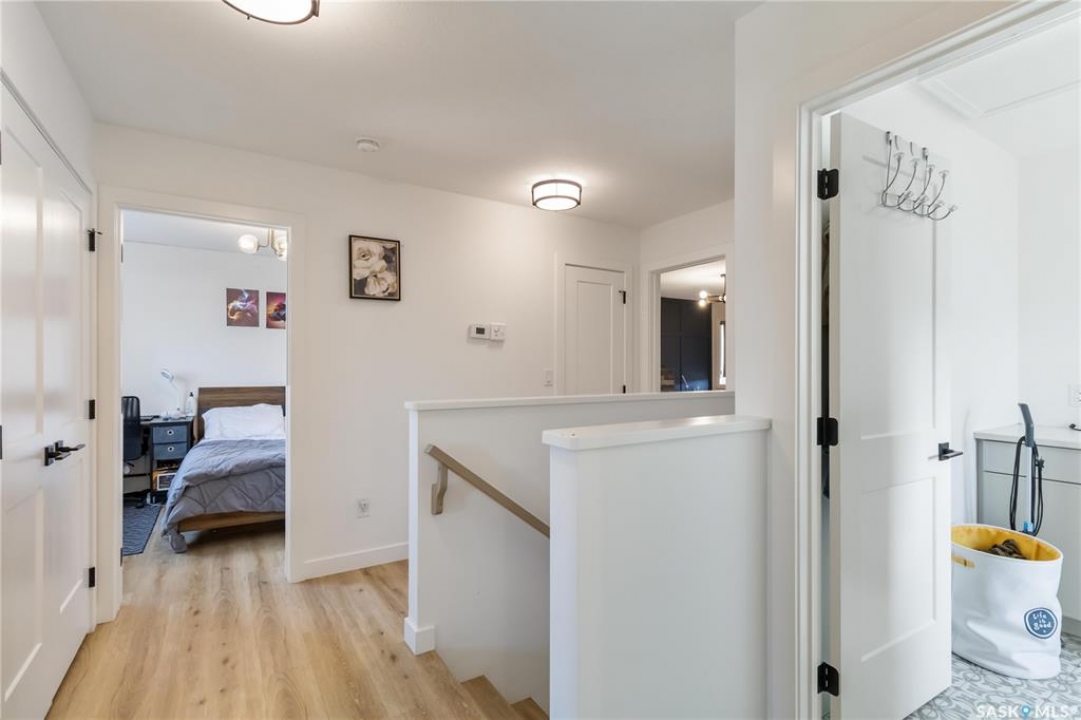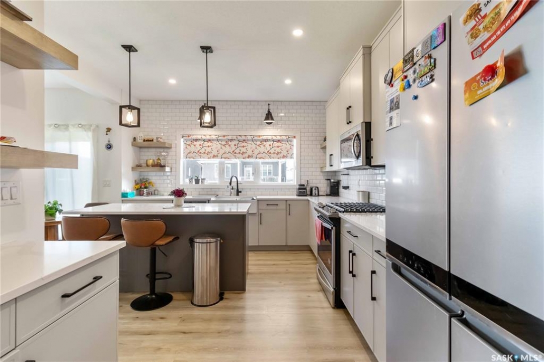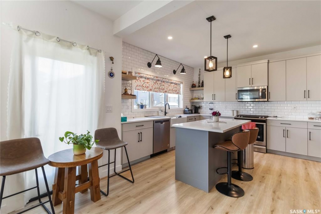 Discover this exceptional move-in-ready two-storey home, offering 1,805 sq. ft. of thoughtfully designed living space in the highly sought-after Aspen Ridge community. Crafted by trusted local builder Marco Developments Ltd., this residence combines modern design with everyday comfort. The main floor boasts a bright open-concept layout, featuring a stylish eat-in kitchen with quartz countertops, a spacious island, and a walk-through pantry with direct access to the heated double attached garage—ideal for a future butler's or spice kitchen. The living and dining areas are filled with natural light and enhanced by elegant, imported window coverings from the UK. Upstairs, the expansive primary suite offers a walk-in closet and a sleek 4-piece en-suite with a tiled standing shower. Two additional bedrooms and a full bathroom complete the upper level, providing ample space for a growing family or guests. The undeveloped basement presents an excellent opportunity to create a space tailored to your needs. Additional features include front yard landscaping, a concrete driveway, and a front sidewalk. Perfectly positioned near the peaceful Northeast Swale, scenic nature trails, and close to St. Nicholas Catholic School, this home delivers the best of both lifestyle and location.
