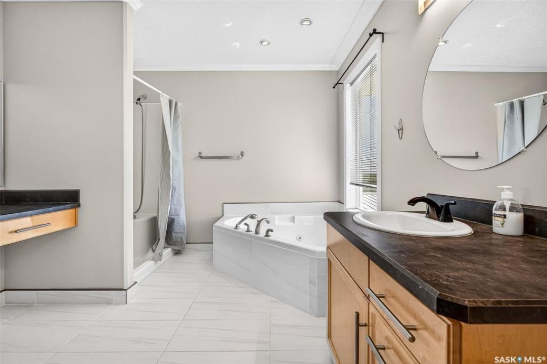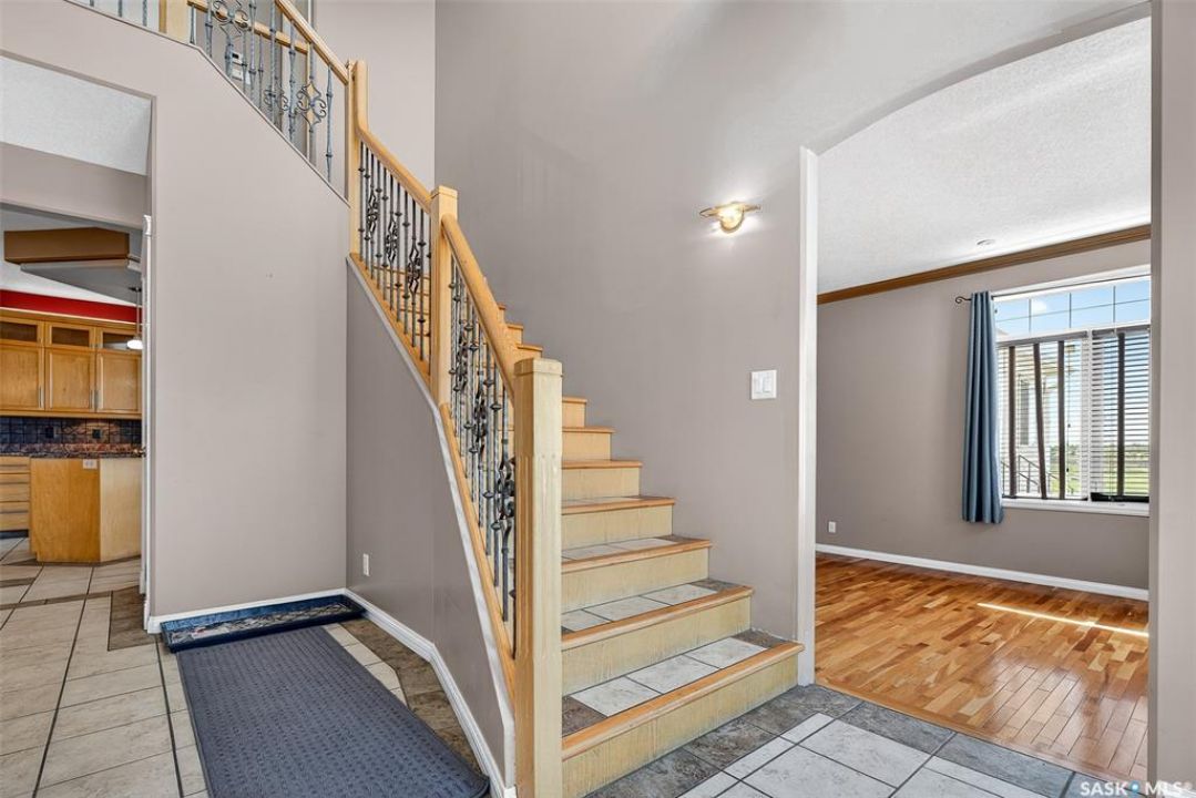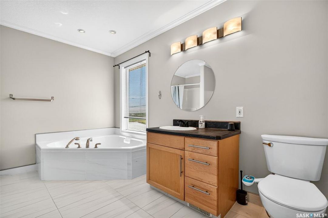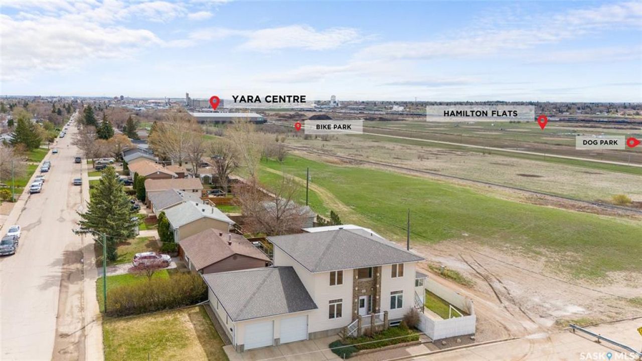 LUXURY CUSTOM 5-BEDROOM TWO-STOREY HOME. BOASTING OVER 2400 SQ/FT (above grade), and situated on the EDGE OF THE CITY, there is no other home remotely like it! With NO NEIGHBORS to the south, soak in captivating views of the expansive GREEN SPACE of Hamilton Flats, w/ nearby amenities inc. Yara Centre (indoor soccer fields), DOG PARK, ball diamonds, bike park & more! Be welcomed by a GRAND FRONT FOYER adorned with an elegant staircase & impressive 2-STOREY CEILINGS! The SUNKEN living room invites cozy evenings w/ hardwood floors & exquisite 3-SIDED GAS FIREPLACE. The SHOW-STOPPER is the custom-designed kitchen, feat. maple cabinets, enormous island, corner pantry, & charming coffee bar/nook. Adjacent, the spacious dining area leads to a serene SOUTH-FACING SUNROOM, offering picturesque views. A 2-PC bath & MAIN FLOOR LAUNDRY ensure ease of living, with quick access to YOUR DREAM GARAGE. No joke - this 24' x 34' double (in-floor) heated attached garage is BUILT FOR A KING, with workshop space, URINAL & SINK, 220 V welding plug & floor drain. Let's get back to the house - with 5 BEDROOMS IN TOTAL, including 3 upstairs, there's ample space for family & guests. The primary bedroom impresses with its SHEER SIZE (20'5 x 12'11) and stunning vistas, complete w/ walk-in closet & luxurious 4-piece ENSUITE featuring jet tub. The upper level also hosts another 4-PC BATH & 2 GENEROUSLY-sized bedrooms. The FULLY FINISHED basement feat. gorgeous LVP FLOORING throughout the large recreation & family room areas. An additional bedroom & 4-pc bath, dedicated storage area, & utility room wrap up this level. Enjoy year-round comfort w/ IN-FLOOR HEATING in GARAGE, BASEMENT, and 2ND LEVEL (partial). Notable upgrades inc. central vac, central air, shingles (2016), TILE FLOORING in all 3 MAIN BATHROOMS (2023), & basement renovation inc. ceiling, lighting, & flooring (2023). Don't miss out on this incredible opportunity to make this extraordinary home YOUR OWN!