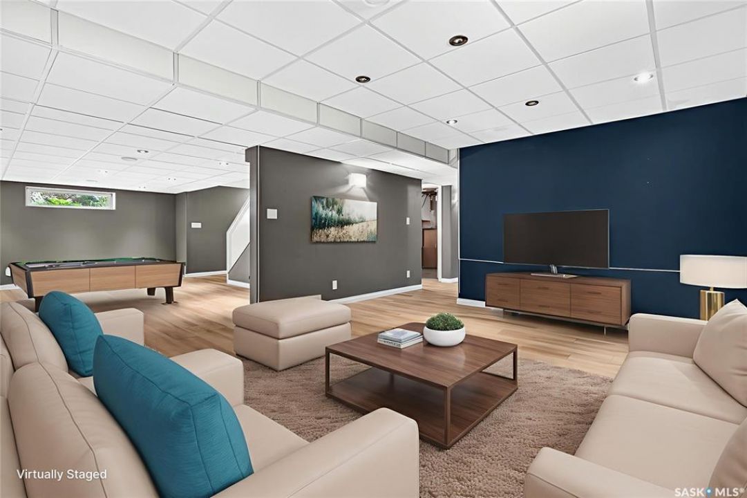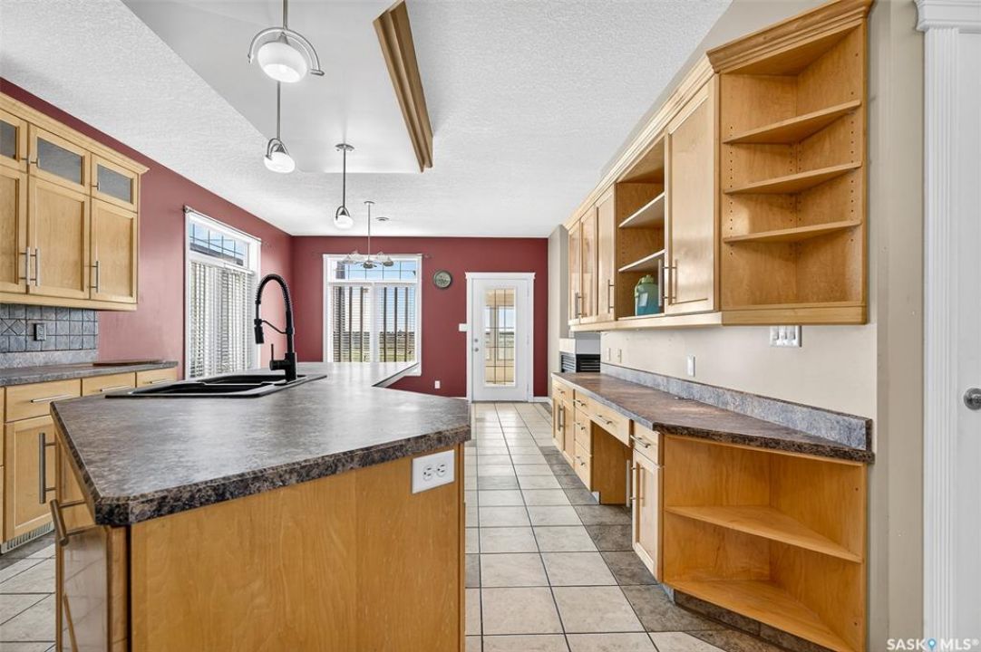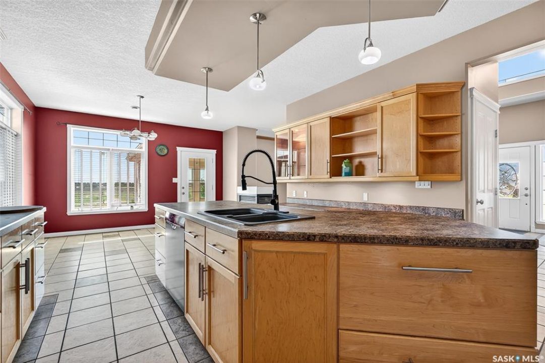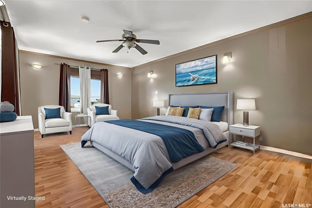 LUXURY CUSTOM 5-BEDROOM TWO-STOREY HOME. BOASTING OVER 2400 SQ/FT (above grade), and situated on the EDGE OF THE CITY, there is no other home remotely like it! With NO NEIGHBORS to the south, soak in captivating views of the expansive GREEN SPACE of Hamilton Flats, w/ nearby amenities inc. Yara Centre (indoor soccer fields), DOG PARK, ball diamonds, bike park & more! Be welcomed by a GRAND FRONT FOYER adorned with an elegant staircase & impressive 2-STOREY CEILINGS! The SUNKEN living room invites cozy evenings w/ hardwood floors & exquisite 3-SIDED GAS FIREPLACE. The SHOW-STOPPER is the custom-designed kitchen, feat. maple cabinets, enormous island, corner pantry, & charming coffee bar/nook. Adjacent, the spacious dining area leads to a serene SOUTH-FACING SUNROOM, offering picturesque views. A 2-PC bath & MAIN FLOOR LAUNDRY ensure ease of living, with quick access to YOUR DREAM GARAGE. No joke - this 24' x 34' double (in-floor) heated attached garage is BUILT FOR A KING, with workshop space, URINAL & SINK, 220 V welding plug & floor drain. Let's get back to the house - with 5 BEDROOMS IN TOTAL, including 3 upstairs, there's ample space for family & guests. The primary bedroom impresses with its SHEER SIZE (20'5 x 12'11) and stunning vistas, complete w/ walk-in closet & luxurious 4-piece ENSUITE featuring jet tub. The upper level also hosts another 4-PC BATH & 2 GENEROUSLY-sized bedrooms. The FULLY FINISHED basement feat. gorgeous LVP FLOORING throughout the large recreation & family room areas. An additional bedroom & 4-pc bath, dedicated storage area, & utility room wrap up this level. Enjoy year-round comfort w/ IN-FLOOR HEATING in GARAGE, BASEMENT, and 2ND LEVEL (partial). Notable upgrades inc. central vac, central air, shingles (2016), TILE FLOORING in all 3 MAIN BATHROOMS (2023), & basement renovation inc. ceiling, lighting, & flooring (2023). Don't miss out on this incredible opportunity to make this extraordinary home YOUR OWN!