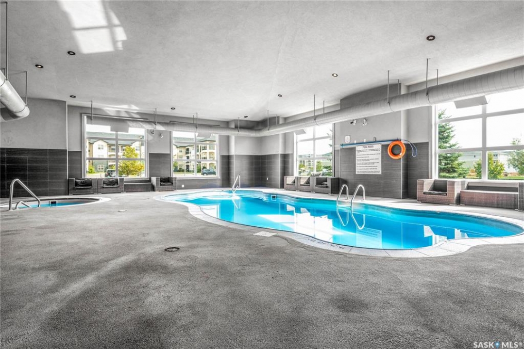 Welcome to Tuscana Condominiums in East Pointe Estates, Regina. Conveniently located near all of East Regina's shopping, dining, and amenities. This immaculate main-floor unit offers modern, open-concept living with a stylish kitchen featuring quartz countertops, tiled backsplash, and stainless steel appliances. Enjoy two spacious bedrooms, a 4-piece bath, in-suite laundry, and a private patio, plus two electrified parking stalls. Owners have access to a private clubhouse with an indoor pool, hot tub, gym, and lounge area. Condo fees cover heat, water, sewer, building insurance, maintenance, and more.