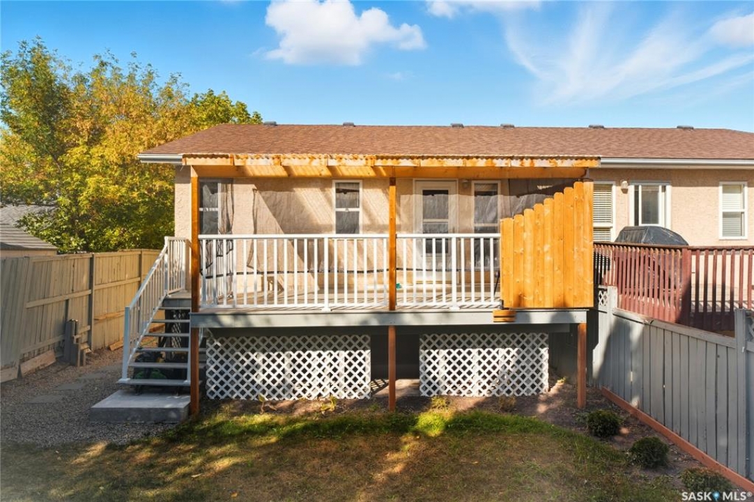 ***Open House Thursday September 25th 4-6pm*** Welcome to 173 Wedge Road, a beautifully maintained bi-level home in the desirable Dundonald neighbourhood. Situated directly across from a park which includes Ecole Dundonald School and Ecole St. Peter School. This property offers an unbeatable location for families and anyone seeking a vibrant community atmosphere. Built in 1996, the home has been lovingly cared for by its owners and is truly in mint condition. The interior has been freshly repainted and the basement features new flooring, giving the space a modern and updated feel. This semi-detached home offers 4 bedrooms and 2 bathrooms, along with an open and functional layout. The main floor includes a spacious living room, dining area, and well-sized kitchen, while the fully finished basement provides additional living space with a large family room, extra bedrooms, and laundry area. Central air conditioning ensures year-round comfort. Outside, you'll find a fully fenced backyard with a deck, perfect for enjoying time outdoors, and a two-car attached garage with a concrete driveway. With its prime location, excellent upkeep, and thoughtful updates, this home is move-in ready and an exceptional opportunity in Saskatoon's Dundonald community.