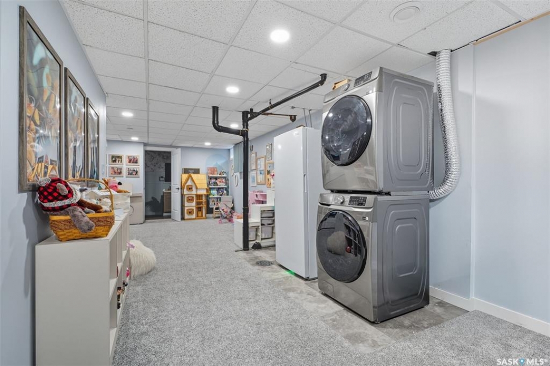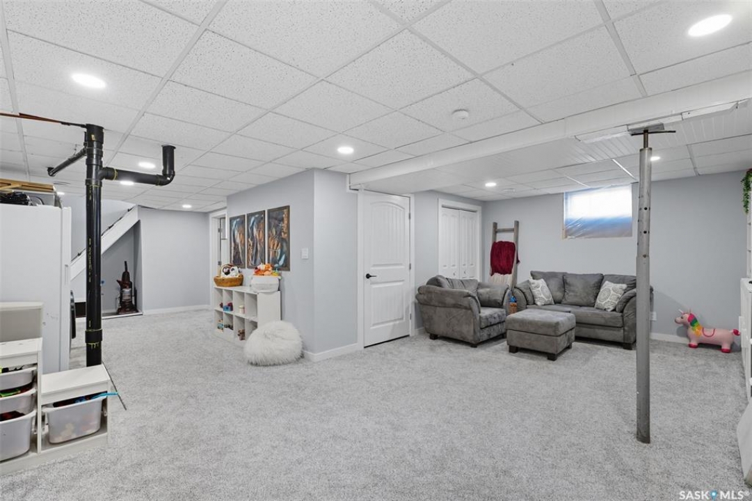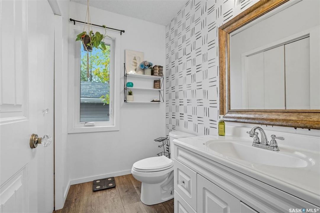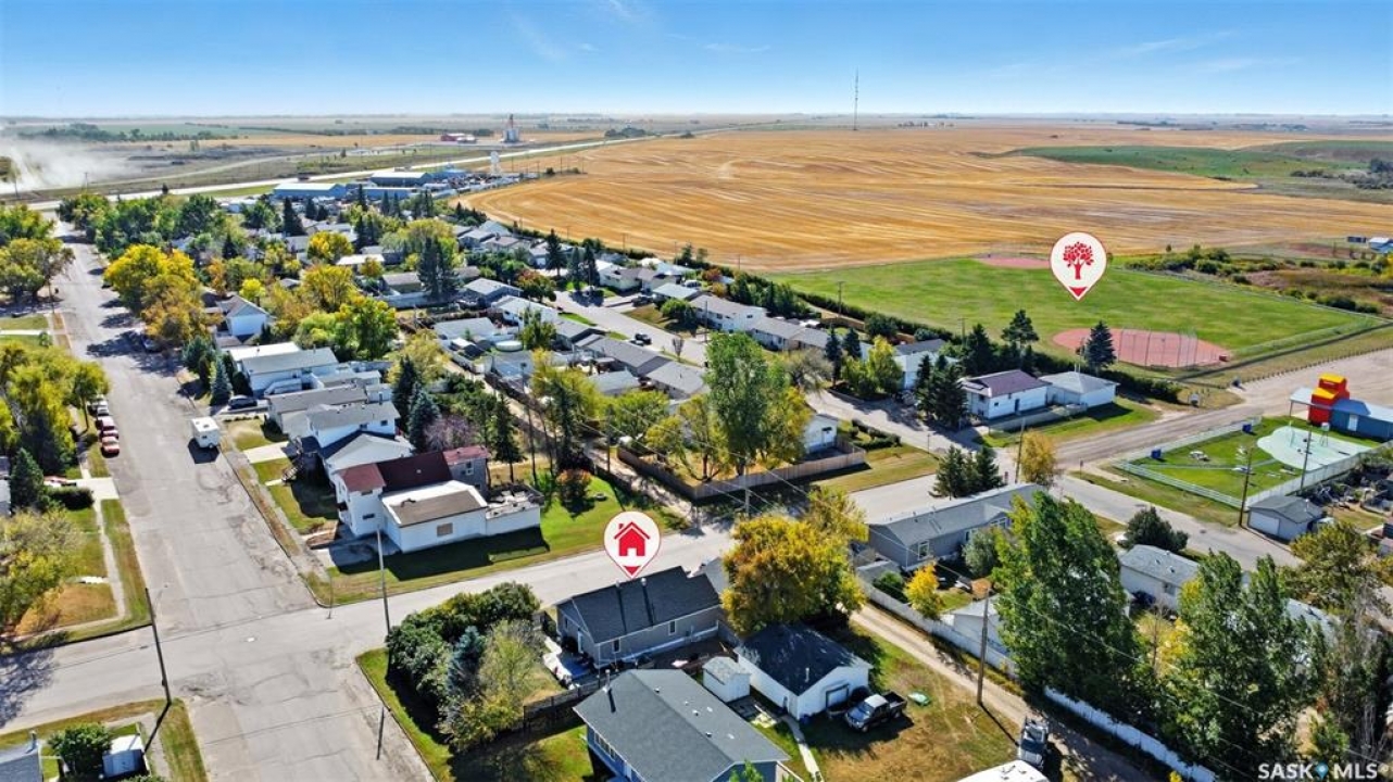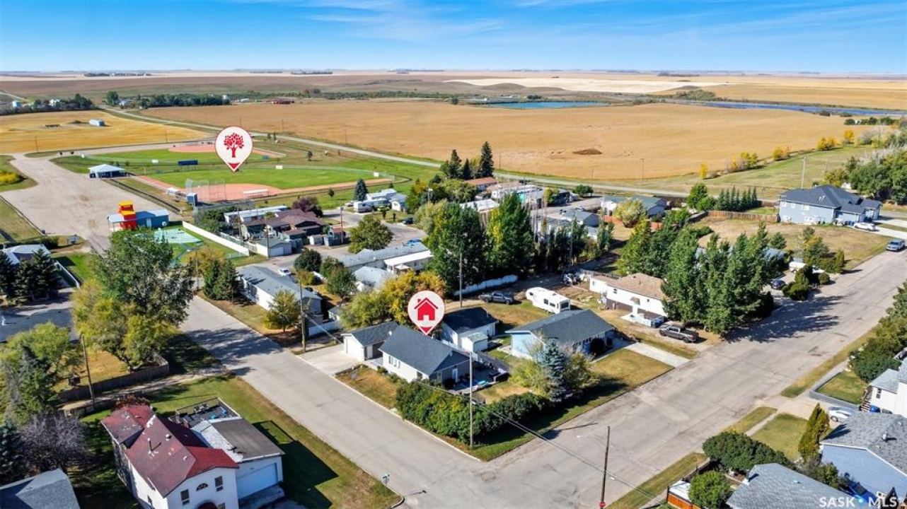 Situated on a large corner lot in Delisle, this 934 square foot home blends comfort, updates, and small-town charm. The front entry offers a practical drop zone and plenty of closet space, setting the tone for an organized and welcoming home. The main floor features an open-concept layout that connects the living room, dining area, and kitchen. Bright white cabinetry, a brand-new stove and dishwasher, and a refreshed sink and backsplash (2025) make the kitchen both cheerful and functional. The primary bedroom includes its own two-piece ensuite, while a second bedroom and a full four-piece bathroom complete the main level. The fully finished basement, completed in 2024, adds valuable living space and includes a new bathroom finished in 2025. Modern comforts like central air conditioning and a heated detached garage ensure year-round convenience. Outdoors, a large back deck with privacy fencing overlooks established perennial gardens, making it an ideal spot for both relaxing and entertaining. With the splash park, ball diamonds, and the golf course all just a short walk away, this property offers the perfect balance of quiet living and community connection. Contact your realtor today to arrange a private viewing