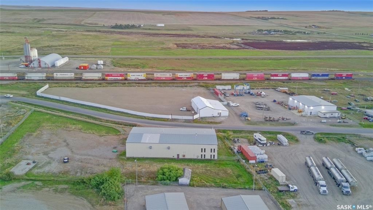 Welcome to 1951 N. Railway St. E., where you'll find an exceptional opportunity for both work and equipment facilitation, thanks to the large fenced compound and extensive office area. The property features a welcoming oversized front reception room with windows across the front, allowing abundant natural light. This area includes two spacious main floor offices, a two-piece bathroom, and a storage room, offering secondary access to the shop space and utility room. Upstairs, there's ample potential for boardrooms, with an oversized office at the top of the stairs and a large, open landing space suitable for a bright boardroom, with a window overlooking the shop. Additionally, there are two more offices on the opposite side, one with access from the landing and a staircase leading into the shop space. The shop operates on a well system, septic tank and a 2019 hot water heater located in the utility space. The expansive shop space measures 60 x 100 feet and features two automatic insulated overhead doors, one 22 feet wide by 20 feet high and the other 24 feet wide by 20 feet high. The concrete floor is in excellent condition, and the walls and ceilings are lined with tin. A second two-piece bathroom can be found here. The shop is equipped with three-phase power, a drain running along the south edge of the interior, an alarm system and three overhead gas heating units. Exterior features include an oversized fenced compound and ample parking space in the front. This prime location is unbeatable, 1.63 acres situated directly on N. Railway St. E., across from the train tracks, and offering direct access to both Highway 4 and Highway 1 in the highly desirable West Industrial area. The exterior and roof are lined with corrugated metal, enhancing the property's professional appearance. Call today for more information or to book your personal viewing.