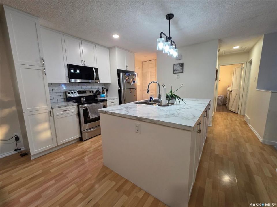142 - 1st Avenue SW, Swift Current, SK. This isn't just a house—it's your launchpad for living life to the fullest. Inside, the vibe is modern, airy, and fresh thanks to a newly-opened layout that lets the sunlight stream through every corner. The kitchen is the crown jewel— updated in March 2025 with a huge island that gives you extra prep space, plugins and seating. The flow between kitchen, dining, and living spaces makes this the kind of home where friends stay late, game nights go long, and Netflix marathons have the perfect backdrop. The 4-piece bathroom was given a glo up in 2021 with tiled floors and tub surround. The basement also enjoys natural light thanks to the bi-level design. It has a huge rec room for those times when friends or kids need their play space, a third bedroom, and a convenient 2-piece bathroom. When it's time to shift gears, the covered back deck is your go-to spot—coffee in the morning, BBQs in the evening, or just a place to watch the prairie sky put on its nightly show. The view? Wide-open fields that stretch out instead of closing in—ideal if you're more into sunsets and freedom than fence lines. This place is practically an outdoor enthusiast's dream: snowmobiles, dirt bikes, quads—you name it, there's room to ride. The updates are done, the space is move-in ready, and the lifestyle? Well, that part is all yours to fill in.