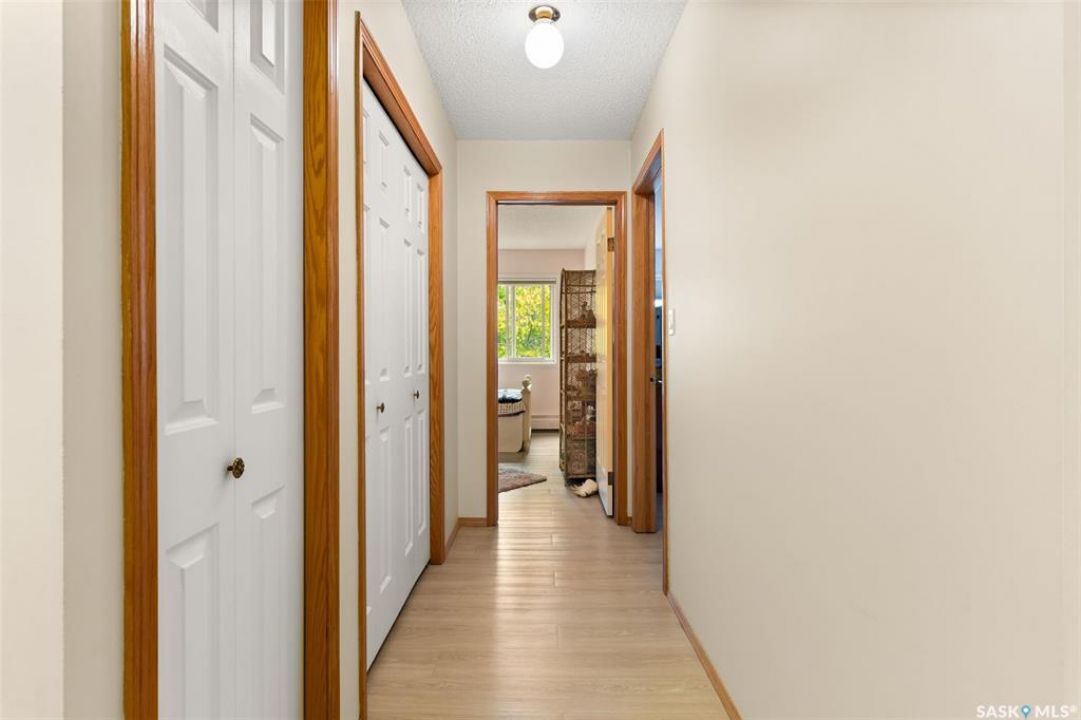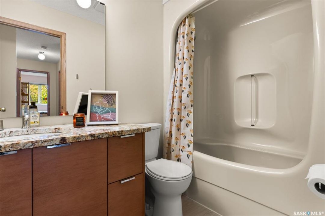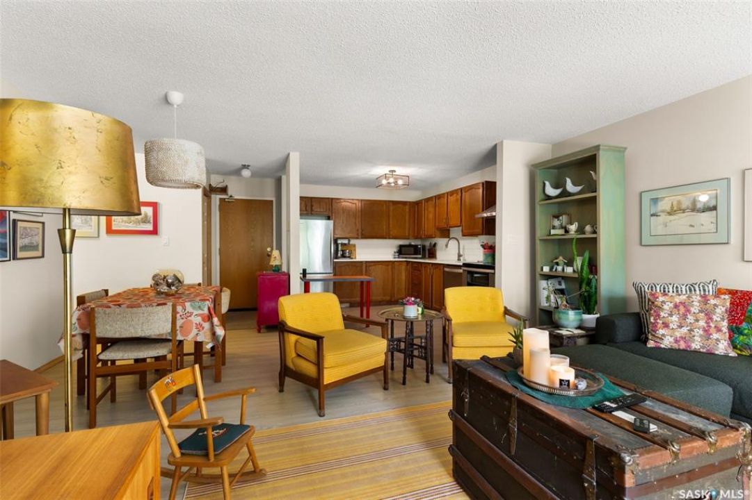 Welcome to this beautifully updated top-floor condo in the Royal Court Complex, ideally situated in the heart of downtown. Facing the front of the building, this spacious two-bedroom, two-bathroom unit offers an open-concept layout with modern finishes throughout. The renovated kitchen features quartz countertops, a tile backsplash, upgraded LED lighting, a touchless under-mount sink, and high-end stainless steel appliances including a fridge, stove, built-in dishwasher, and hood fan. It flows seamlessly into a generous dining area with a large window and a bright living room with patio doors leading to an expansive balcony. Both bedrooms are generously sized, with the primary suite offering a walk-in closet and a private two-piece ensuite. The main four-piece bathroom is equally spacious and has been tastefully updated with granite vanities and new fixtures. Additional highlights include luxury vinyl plank flooring, fresh paint, roll-out shelves, a lazy Susan, and in-suite laundry with washer and dryer included. This well-maintained building features a recently upgraded boiler and elevator, heated underground parking, an amenities room complete with a lounge and bar area. Condo fees cover heat, water, garbage removal, common area maintenance, building insurance, and reserve fund contributions. Visitor parking is available at the rear of the building, and while pets are not permitted, the location offers unbeatable access to all downtown amenities just a short walk away. contact your Realtor today to book your showing.