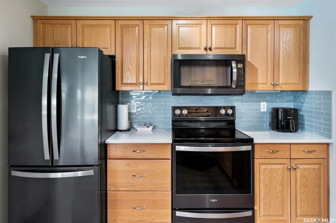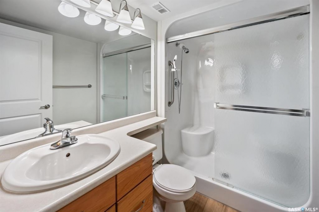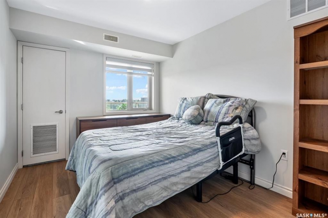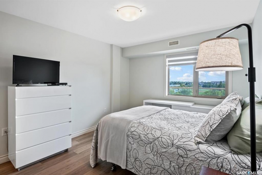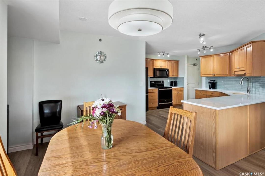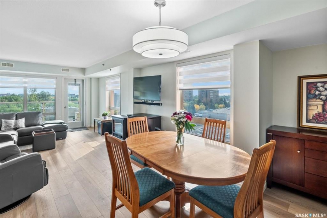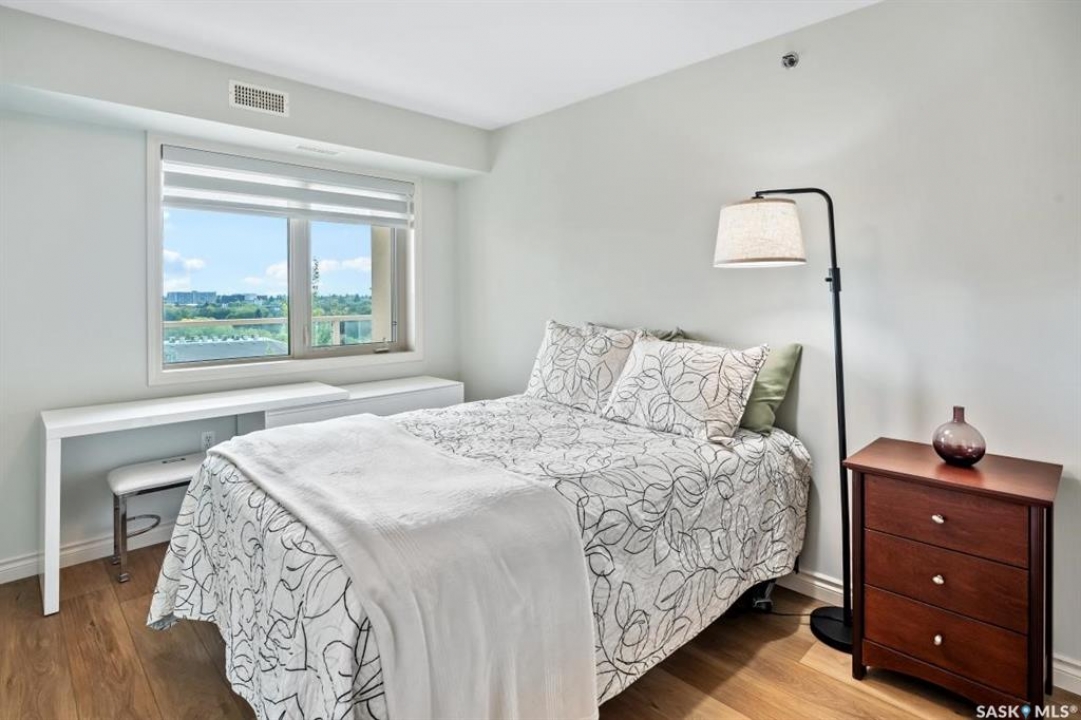 Well-Sought After Fremai Tower Corner Unit – 8th Floor, Southeast Exposure This beautifully renovated 2 bedroom, 2 bathroom corner unit offers stunning southeast views from the 8th floor. Recent updates include new vinyl plank flooring throughout, lots of new lighting, quartz countertops, and a stylish glass tile backsplash. The spacious kitchen features light oak cabinetry, sleek black stainless steel appliances, and an open design flowing seamlessly into the dining and living areas. Natural light fills the space through four large windows, showcasing the park views and creating a bright, welcoming atmosphere. Step through the French door onto the large east-facing deck—perfect for enjoying your morning coffee, or a cool, shady summer evening. The primary suite boasts a generous walk-in closet and a private 3-piece ensuite. The unit also includes one underground parking stall and a large storage room. Fremai Tower offers outstanding amenities: � � � �• � � � �Multi-purpose room � � � �• � � � �Two guest suites � � � �• � � � �Fully equipped exercise room � � � �• � � � �Scooter parking All of this is just steps away from the shopping and dining at Market Mall. ?? As per the Seller's direction, all offers will be presented on September 29, 2025, at 2:00 PM. This unit is truly a must-see!